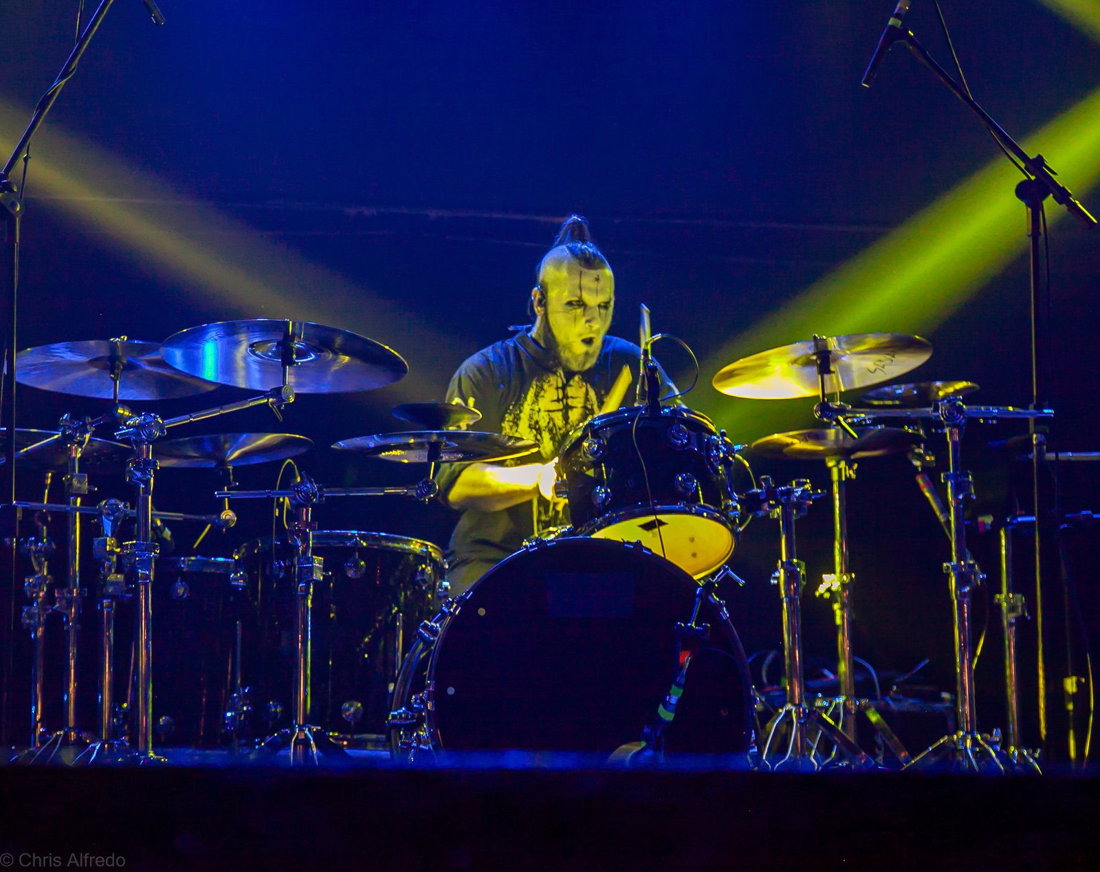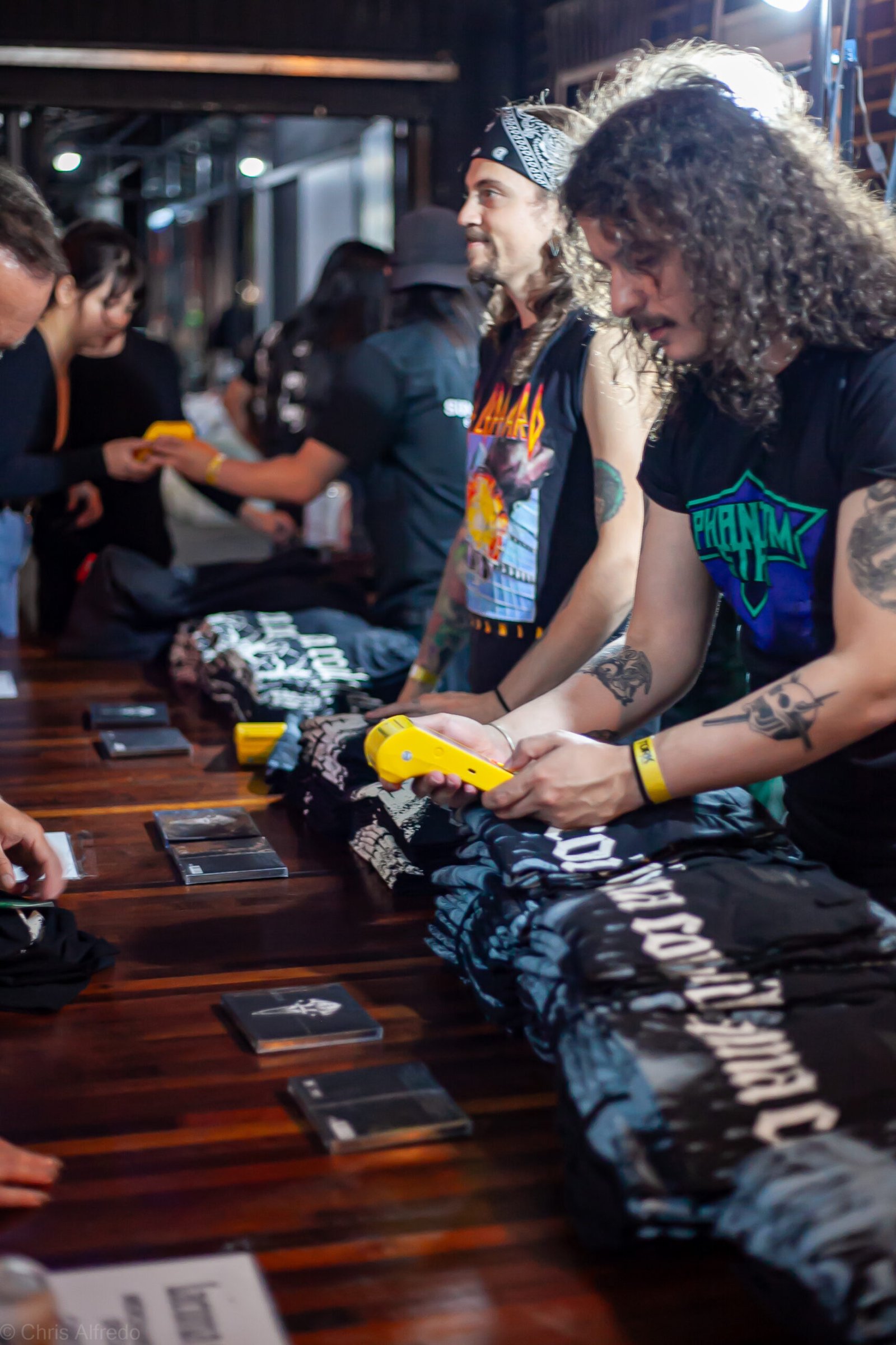 Ao entrar no ambiente da casa, tive outra surpresa: a área da pista em frente ao palco estava isolada por cortinas pretas, fazendo com que novas filas se formassem até que o acesso à plateia ou aos camarotes fosse liberado. Nada disso diminuiu o ânimo do público, já que foi uma oportunidade para experimentar as diversas opções que a casa oferece na praça de alimentação. As cortinas serviam para bloquear a visão do palco, que ainda estava sendo montado devido ao atraso mencionado no transporte dos equipamentos. Cada teste da bateria era prontamente respondido pela galera que aguardava entusiasticamente.