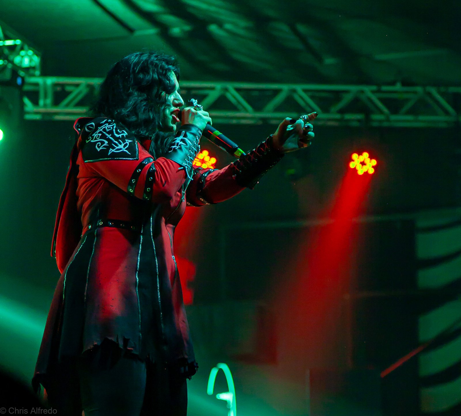 Também destaquei o visual da banda, com maquiagens trabalhadas e combinações em preto e branco. O baixista Marco Coti Zelati, o baterista Richard Meiz e o guitarrista Daniele Salomone fizeram muito bem seu papel, trazendo atenção ao vermelho carmesim usado por Cristina e em alguns detalhes do figurino de Andrea. As luzes do palco, na maior parte do show, também seguiram esses tons. Senti falta do “bandeirão” de fundo de palco da banda, mas a ausência é compreensível devido aos problemas técnicos já citados.