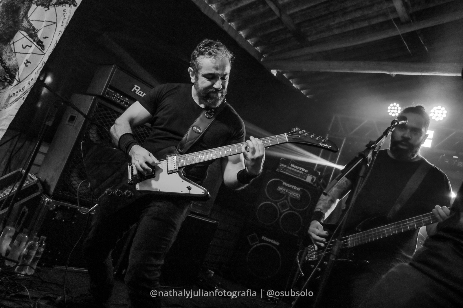 A linha de frente guitarras, vocal e baixo, se complementam de forma totalmente orgânica, performando de maneira imponente e técnica. Não podemos deixar de destacar o baterista, que chama atenção com sua linha veloz e bruta, trazendo também toda a potência pra sonoridade da banda. O vocalista que também é guitarrista, é uma figura muita carismática e bem humorada, onde sempre procura falar com o público entre uma música e outra. Em uma dessas trocas, ele soltou: “tem algum terraplanista aqui, hoje?”. O silêncio permaneceu entre as pessoas (ainda bem) e logo depois as gargalhadas predominaram. O show no geral foi muito divertido, além de toda a qualidade sonora que o Orthostat sempre entrega, com técnica, brutalidade, irreverência e qualidade.