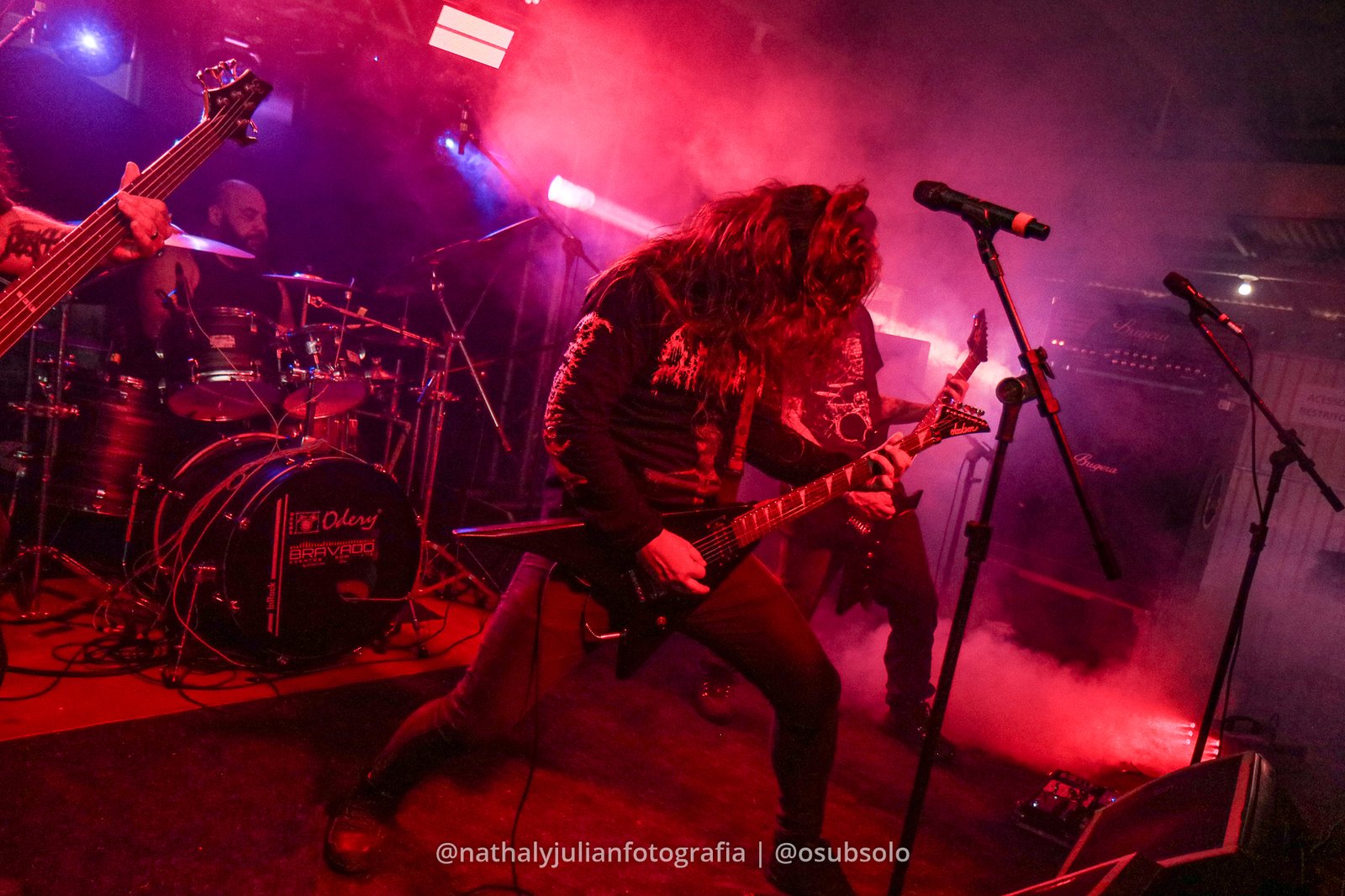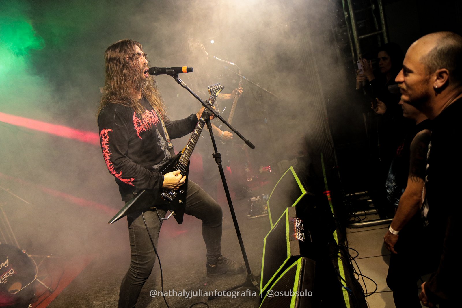 Os vocais eram intensos e o baixo era massacrante, tudo perfeitamente conectado e entrosado. Não por menos estávamos naquele momento a frente de um dos maiores nomes do Metal Extremo do sul do Brasil, foi uma exibição de como o Death Metal deve ser na sua pura essência.