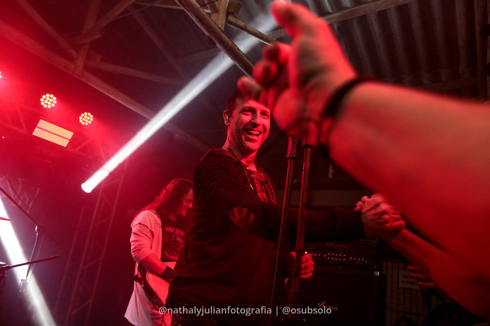 O vocalista Thiago teve bastante troca de energia com o público, sempre agradecendo pelo apoio de todos e demonstrando gratidão por estar tocando em SC, de forma genuína.