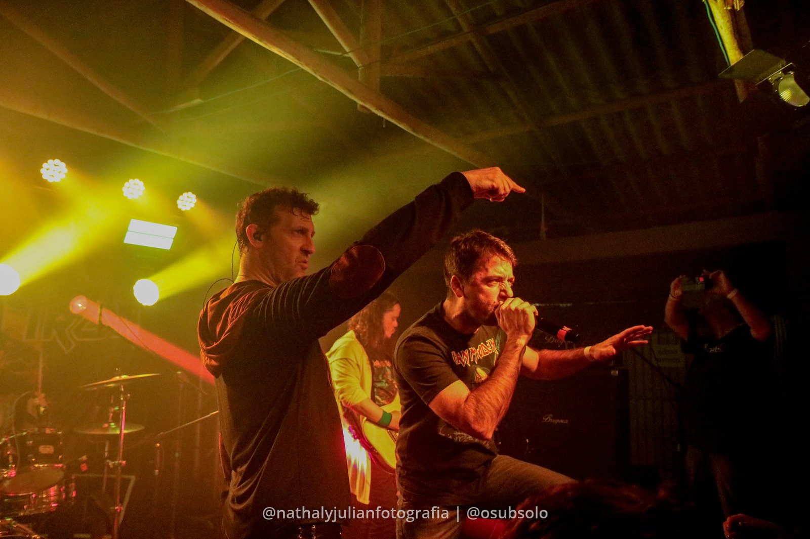 O setlist foi bem equilibrado, misturando músicas para os fãs mais dedicados com clássicos que até quem não acompanha o estilo conhece bem, como The Trooper. Durante o show, Bruno dividiu o microfone com Daniel Locatelli, vocalista original da Made in Iron. Em determinado momento, Bruno foi para a bateria e mostrou que não canta só bem, mas também manda bem nas baquetas. Um fator que me impressionou foi saber que eles não ensaiaram juntos antes do show, tudo rolou ali na sintonia natural da banda e no talento do Bruno, que é versátil pra caramba. Isso deu uma vibe mais espontânea, como se fosse uma grande jam.