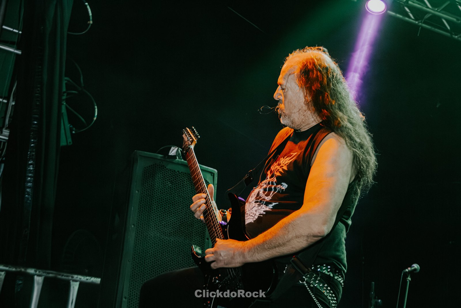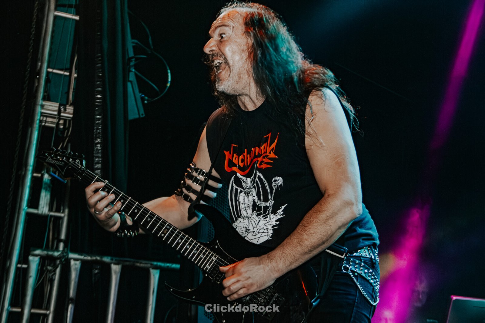A brutalidade do Desaster fez o Mister Rock tremer. Se o evento já estava pegando fogo, os alemães jogaram ainda mais gasolina. Com Sataniac (vocais), Infernal (guitarra), Odin (baixo) e Tormentor (bateria), despejaram seu Black/Thrash Metal sem piedade, fazendo um dos shows mais empolgantes da noite. Satan’s Soldiers Syndicate abriu o set de forma explosiva, e a banda não deu trégua com Devil’s Sword e Learn to Love the Void. O público, já completamente entregue, respondeu com rodas insanas durante Teutonic Steel, Nekropolis Karthago, Hellbangers, que antecederam a clássica Metalized Blood, fechando o show com maestria.