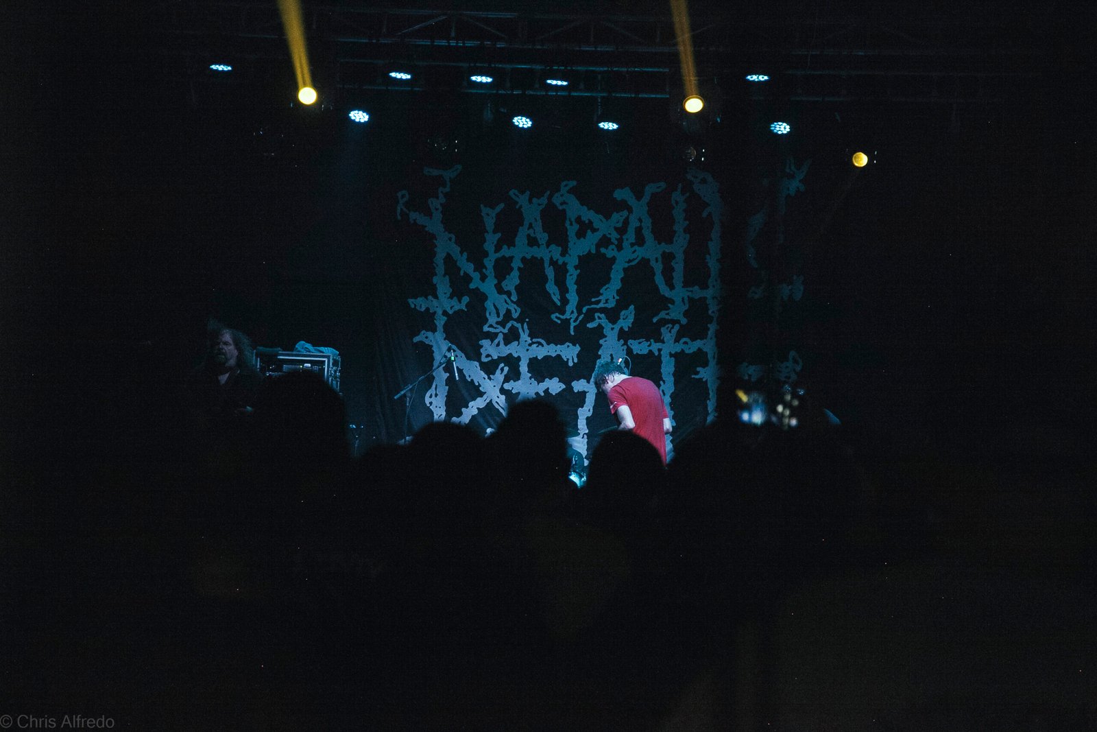 E finalmente após mais alguns giros da bola de neve de atrasos, com passada mais de uma hora do horário previsto, foi a vez dos pioneiros do Grind fazerem o que sabem de melhor, o pessoal que procurou se refrescar do lado de fora tece que voltar correndo ao ouvir as primeiras batidas do bumbo do baterista Danny Herrera. O vocalista Barney Greenway, demonstrou uma disposição incrível de um lado a outro do palco, se movimentando com fúria enquanto não despejava sua voz brutal em nossos tímpanos, diferente de sua voz nos intervalos entre as musicas, O guitarrista John Cooke foi bastante elogiado pelos fãns mais ferrenhos da banda, demonstrando muita habilidade e precisão, Assim como o baixista Shane Embury e seu estilo particular de conduzir seu instrumento.
