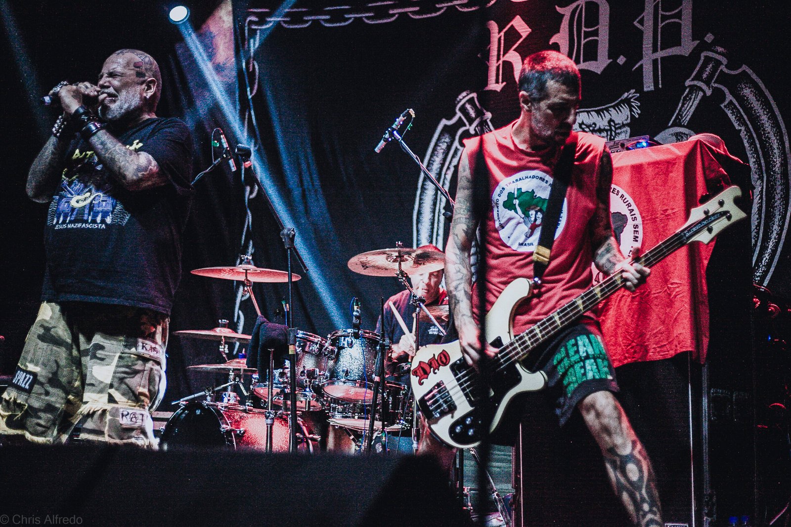 Ratos de Porão veio ao palco com mais um pouco de atraso, mas nada que fizesse o publico que esperava para se quebrar ao som de uma das bandas mais politicamente importantes do nosso país desanimar. João Gordo mesmo alegando estar com um problema na voz e perder a paciência após o seu microfone falhar lá pela metade do show, entregou um vocal raivoso, o que já clássico da banda, Jão e Juninho, ambos com muita presença de palco, completaram a apresentação com um “cara a cara” entre a guitarra e o baixo, enquanto João Gordo fechava o quadro com suas caretas. O baterista Boka também demonstrou muita força e técnica fazendo o coração de quem estava na grade tremer com suas batidas.