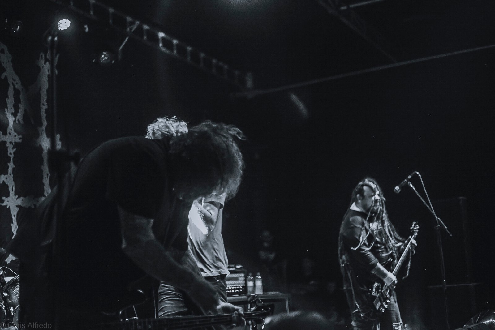 Seguindo agora com a casa já cheia subiu ao palco a Manger Cadavre?. A origem da banda se deu no Hardcore, e isso é claramente percebido em sua bateria, que deu o tom para que a quebradeira se iniciasse na pista, destaque para a faixa Retórica do silêncio sendo executada pela primeira vez em solo curitibano, e que muito provavelmente estará presente no próximo álbum da banda, prometido para 2025. Infelizmente por conta de uma confusão na organização das bandas, o grupo de São Bernardo do Campo – SP também teve que reduzir o seu setlist. Atualmente tocam na Manger Cadavre? Nata (vocalista), Marcelo Kruszynski (baterista), Bruno Henrique (baixista) Paulo Alexandre (guitarrista).
