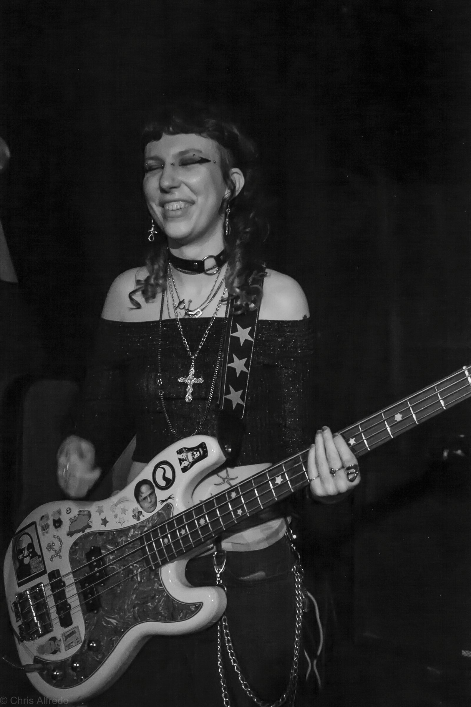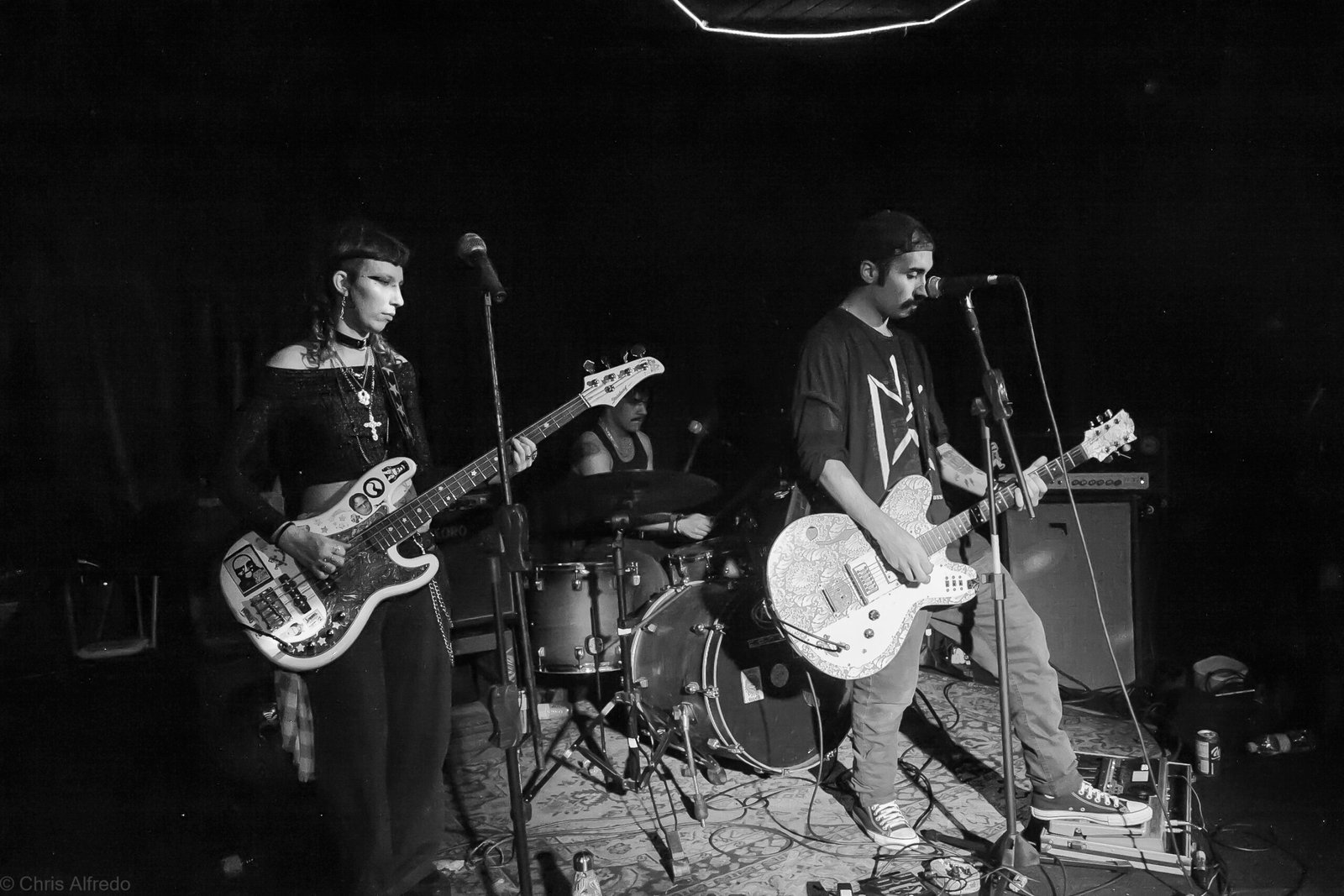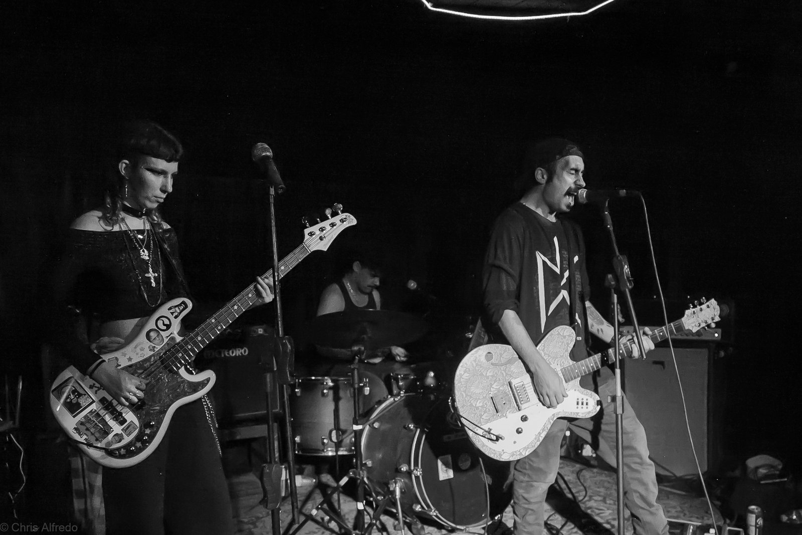 A She Is Dead é, como se autodefine, uma banda especializada em pesadelos, e foi exatamente essa atmosfera de caos controlado e intensidade visceral que dominou o espaço. Desde os primeiros acordes, o público foi tomado por um impacto direto: guitarras afiadas, baixo pulsante e vocais cheios de raiva e emoção, que mais pareciam exorcizar o tédio e a mesmice do cotidiano. Cada música era um soco, cada refrão, um grito coletivo.