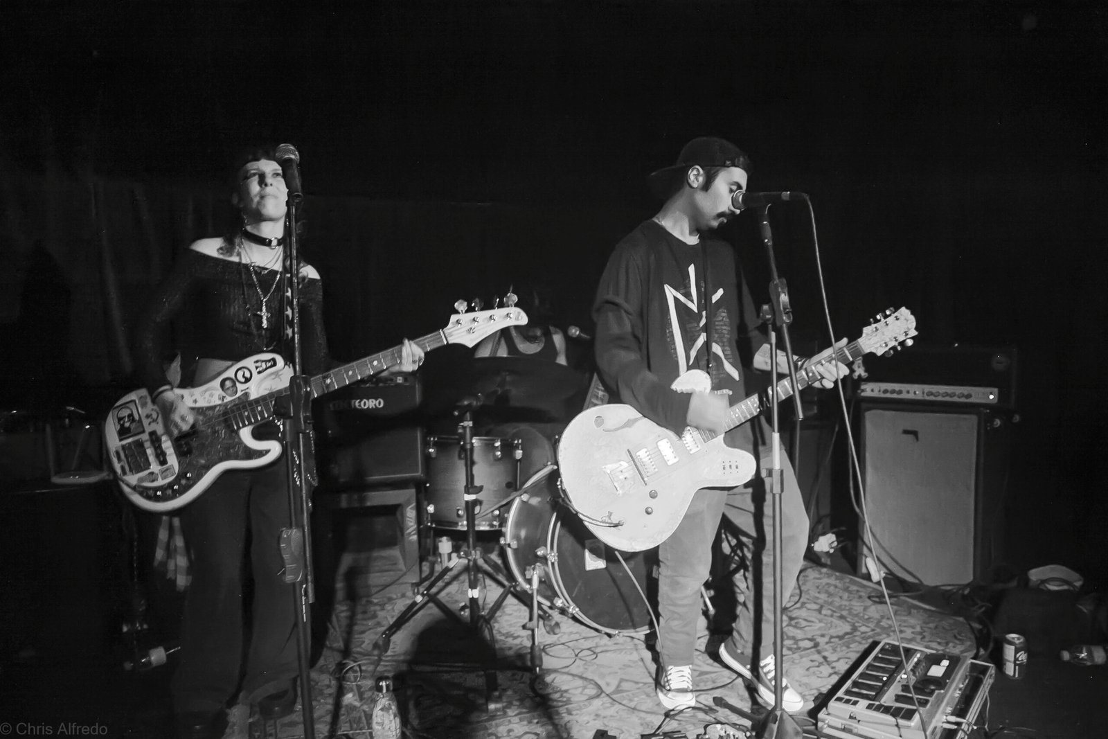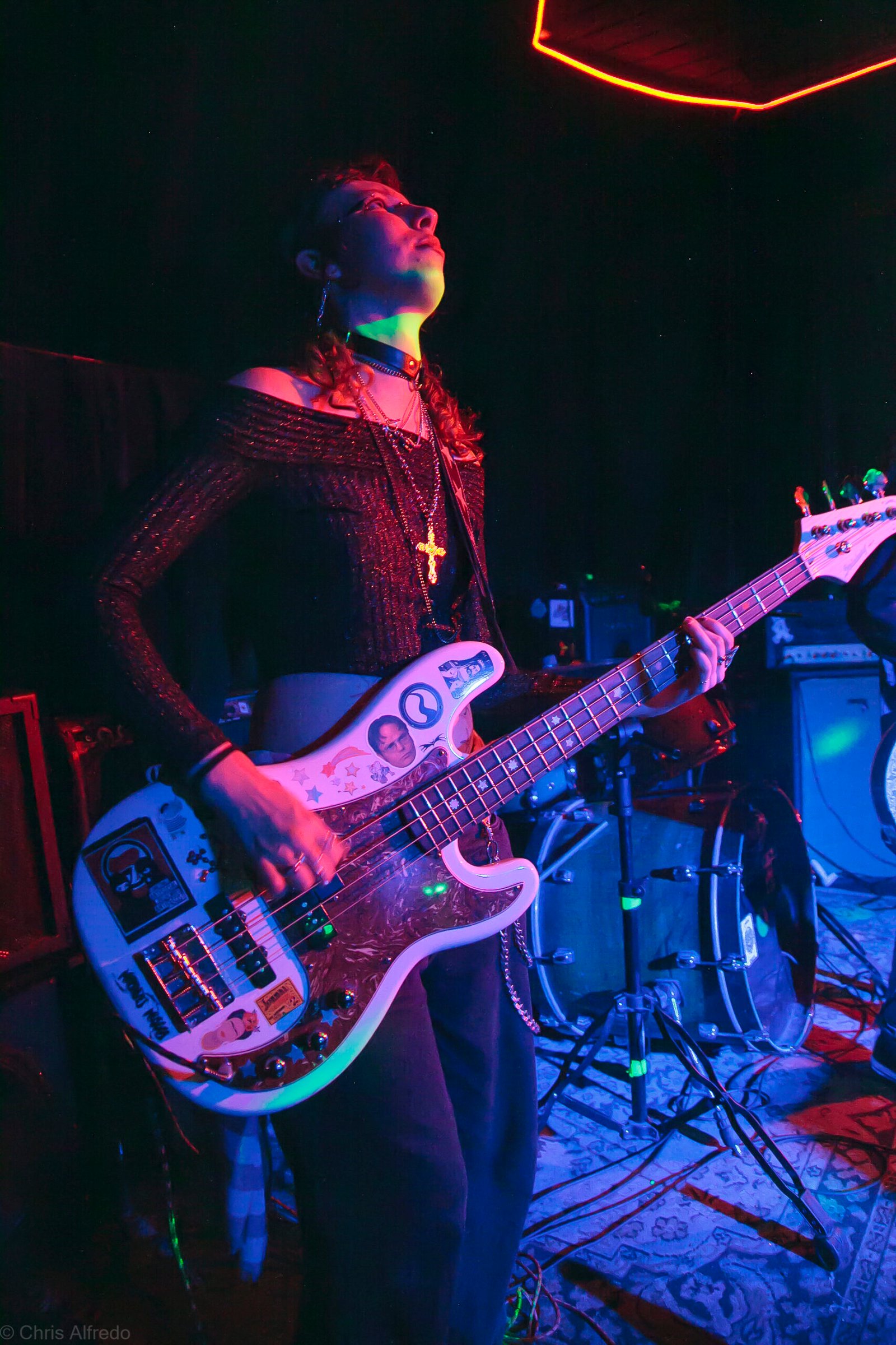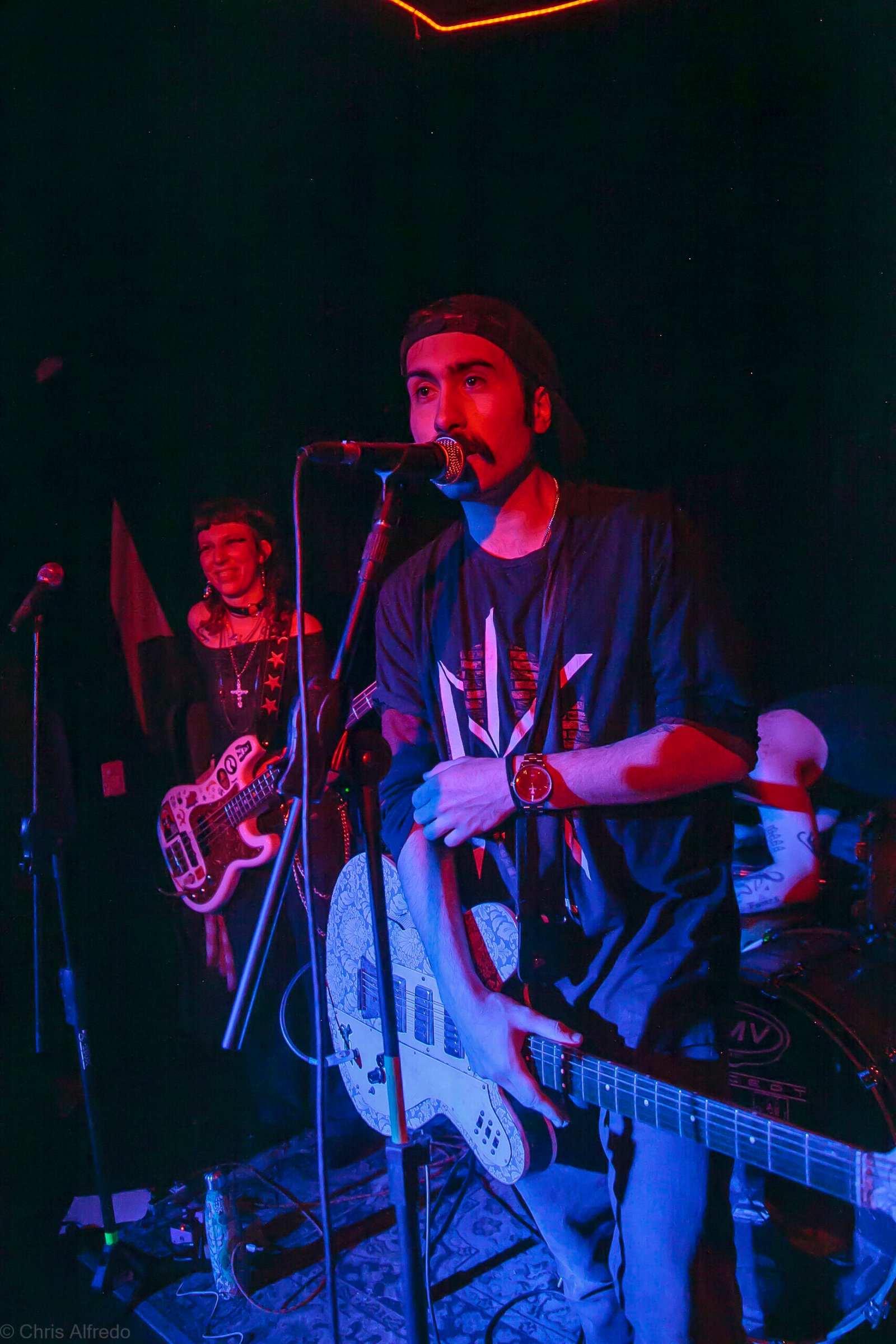 A She Is Dead é, como se autodefine, uma banda especializada em pesadelos, e foi exatamente essa atmosfera de caos controlado e intensidade visceral que dominou o espaço. Desde os primeiros acordes, o público foi tomado por um impacto direto: guitarras afiadas, baixo pulsante e vocais cheios de raiva e emoção, que mais pareciam exorcizar o tédio e a mesmice do cotidiano. Cada música era um soco, cada refrão, um grito coletivo.