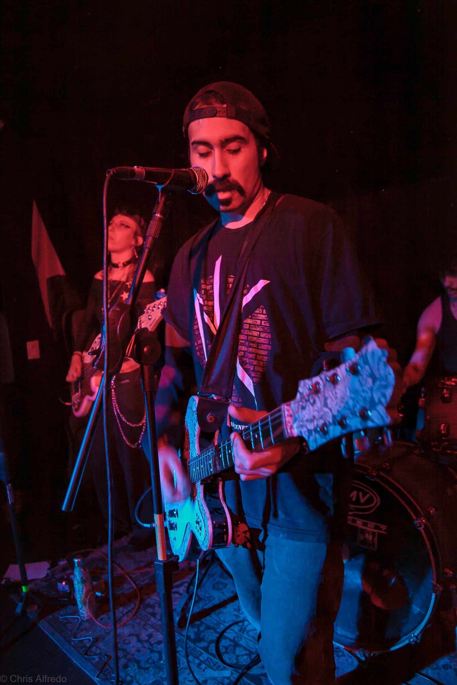 Encerrando a intensa sequência de apresentações no Camaleão Cultural, a banda She Is Dead tomou o palco com a mesma energia devastadora que a consagrou como uma das grandes representantes do Punk Rock curitibano. Formada nas ruas da capital paranaense em 2019, a banda é uma verdadeira força bruta do underground, que converge na sua essência pitadas de Punk, Hardcore e Garage Rock em uma mistura autêntica, um som que carrega o DNA das calçadas frias e dos porões fervilhantes de Curitiba.