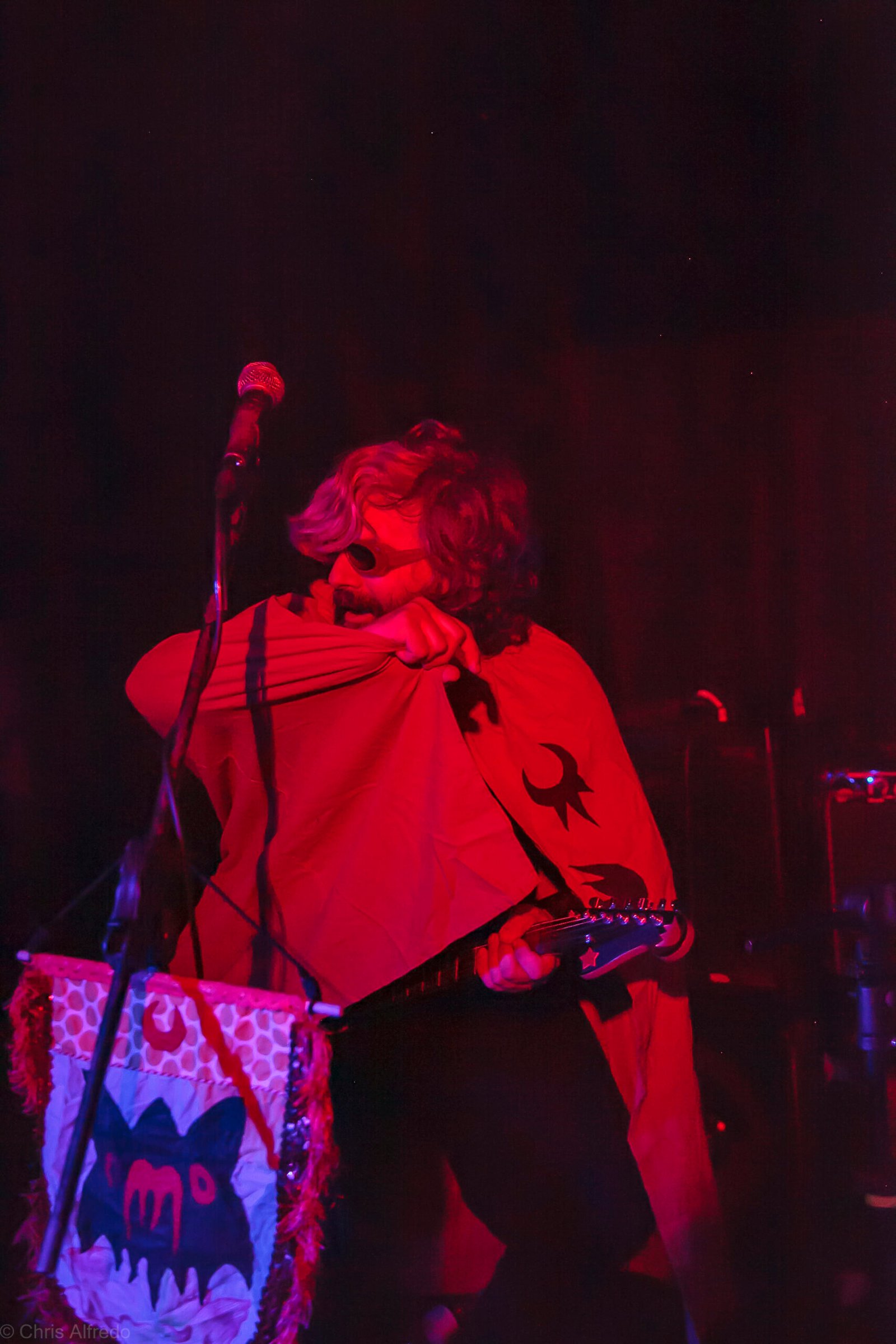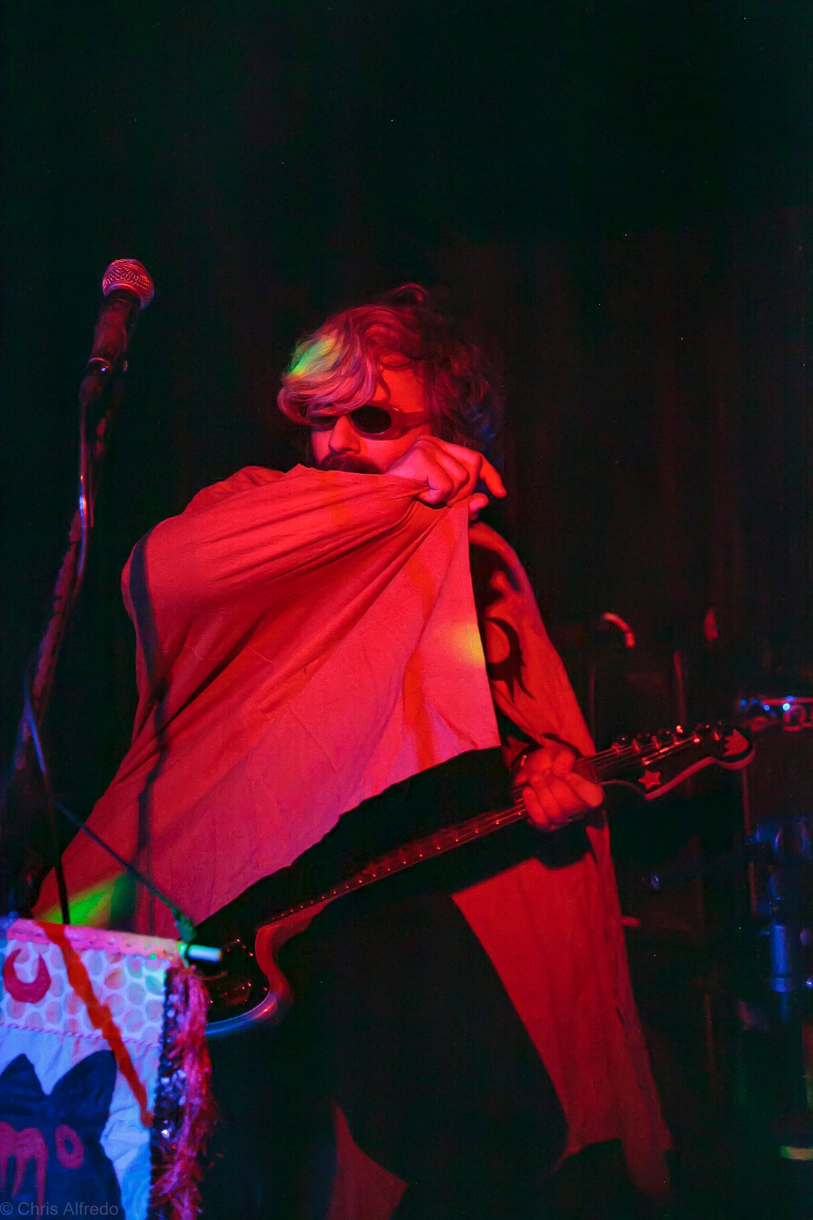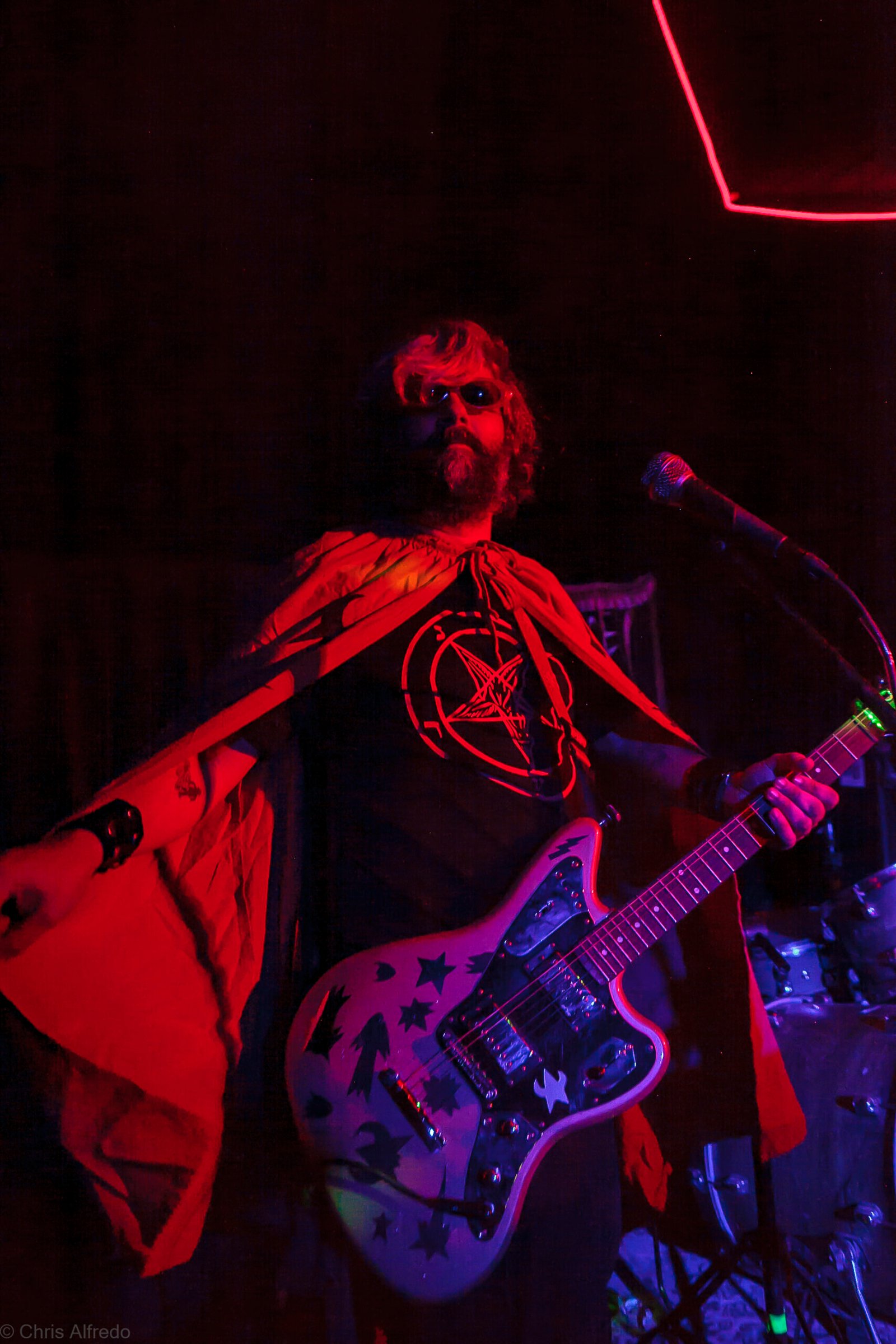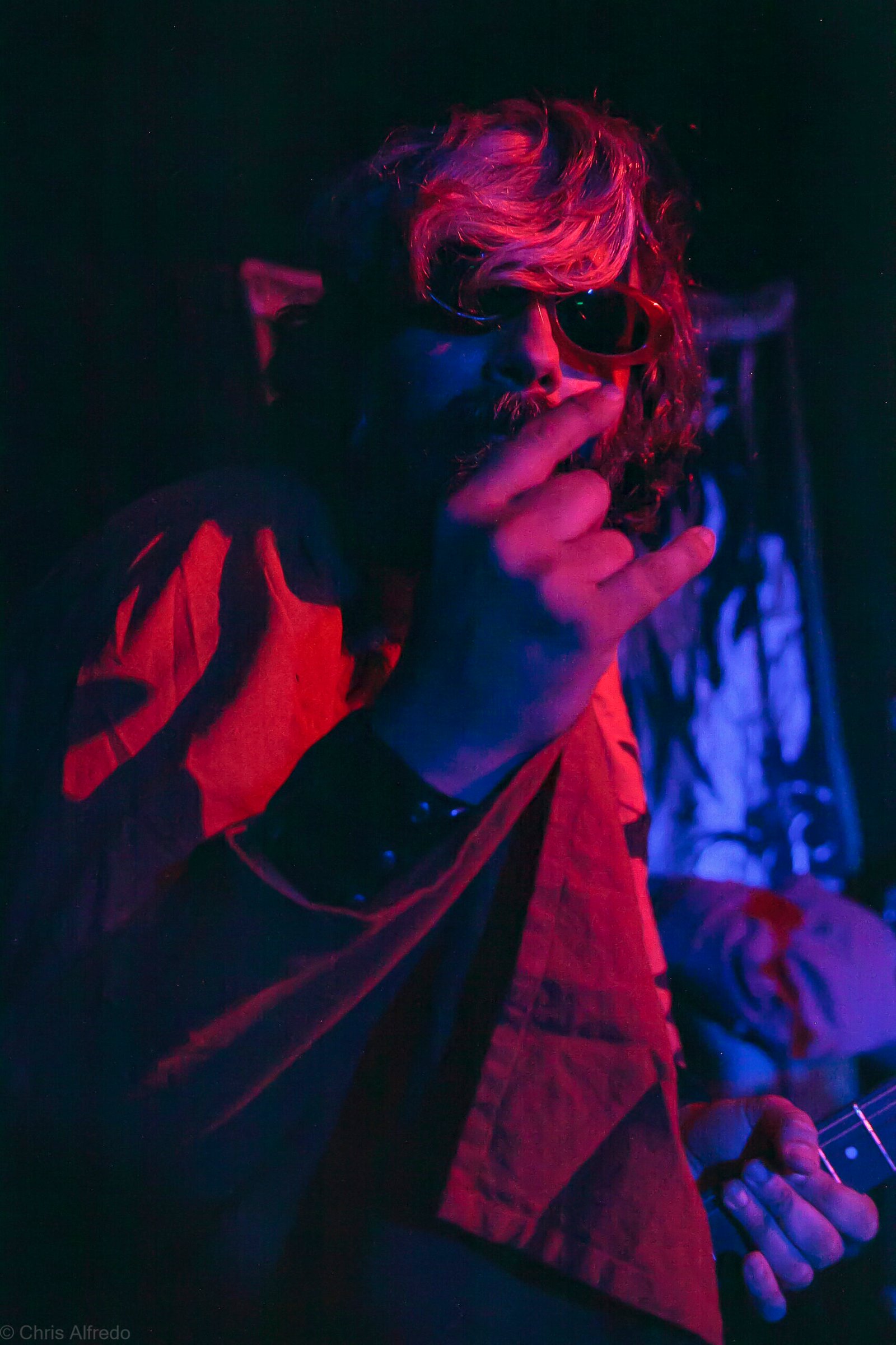 Mais tarde a noite ganhou um tom denso e enigmático quando o palco foi tomado pela presença hipnótica da Retromorcego, projeto suíço-brasileiro de Tropical Dead Grunge, criado em 2020 nos subterrâneos industriais da Basiléia. Formada por Koostella (voz e guitarra) e Noé Sébastien (bateria), a dupla é conhecida por seu estilo peculiar, autodefinido como “Grunge Satanisto-Comunista”, uma fusão provocadora de estética obscura, crítica social e experimentação sonora.