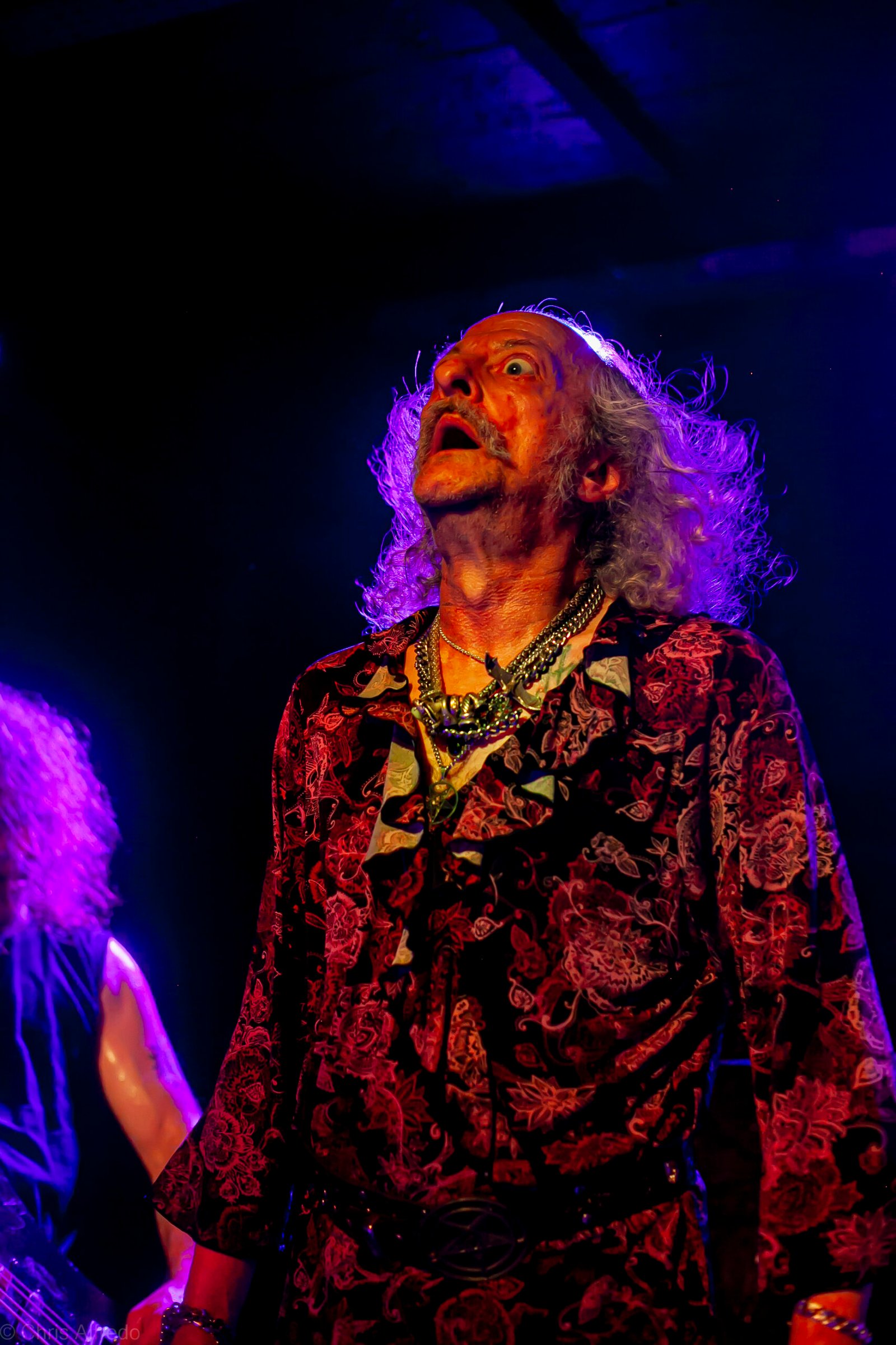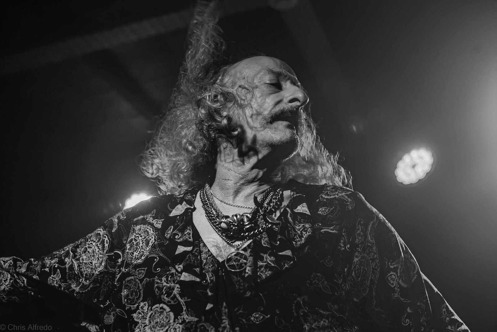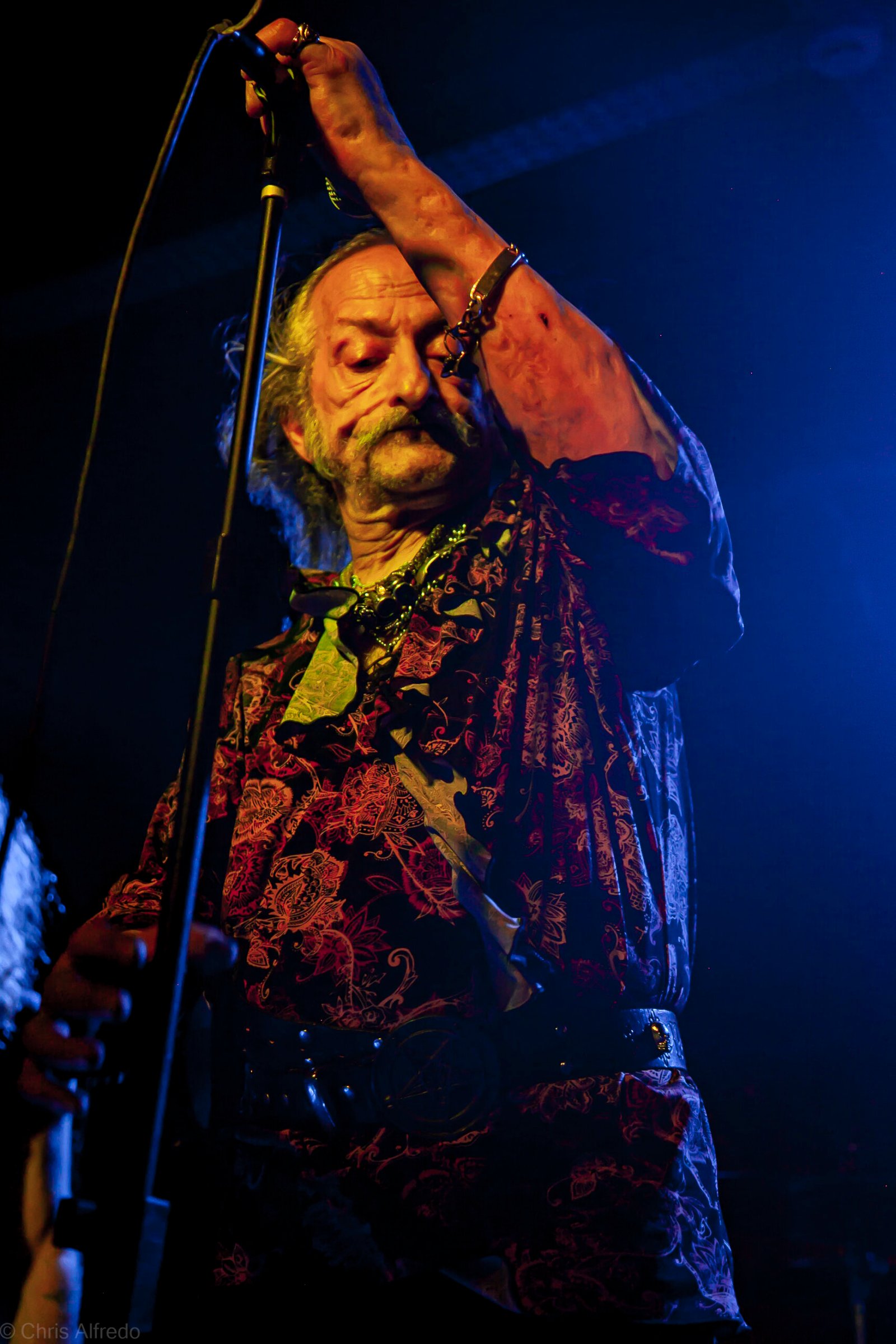 Bobby Liebling fez sua entrada triunfal com Live Again, faixa de abertura do último disco da banda, Lightning in a Bottle, seu décimo álbum de estúdio. Em seguida veio Starlady, e então o momento mais esperado da noite para os fãs mais recentes da banda: The Ghoul, música que embala o vídeo responsável pela recente explosão de popularidade do Pentagram. No registro, Bobby aparece com os cabelos esvoaçantes e olhar vidrado, gerando uma enxurrada de memes nas redes sociais. E sim, a icônica cena foi repetida no palco, embora eu tenha notado uma certa indiferença do vocalista com esse momento, o que considero compreensível, já que uma piada repetida muitas vezes perde a graça. Mas Bobby não é um artista de uma jogada só. Durante todo o show, ele demonstrou uma vasta sorte de caretas, trejeitos, olhares e até reboladas.