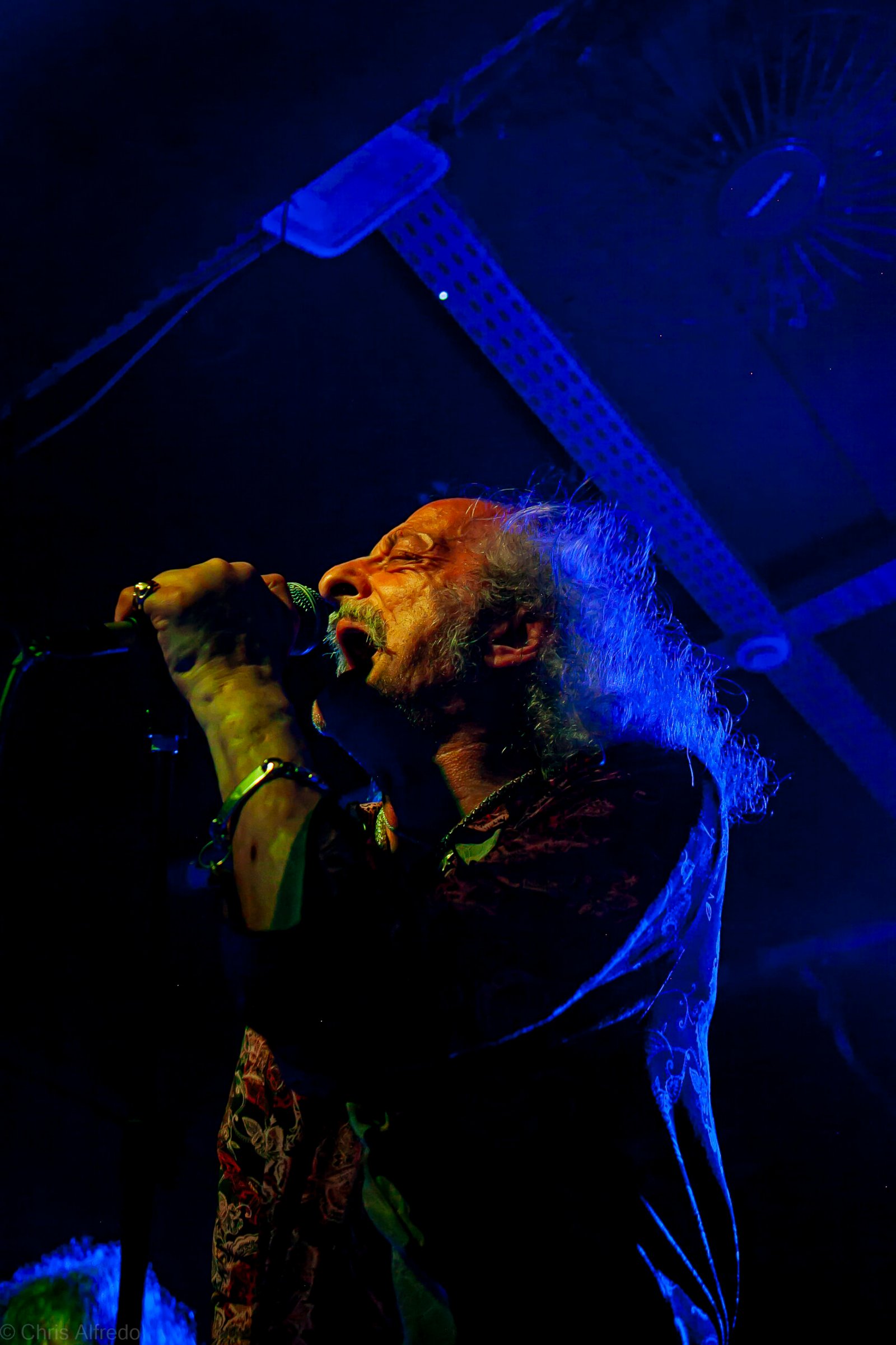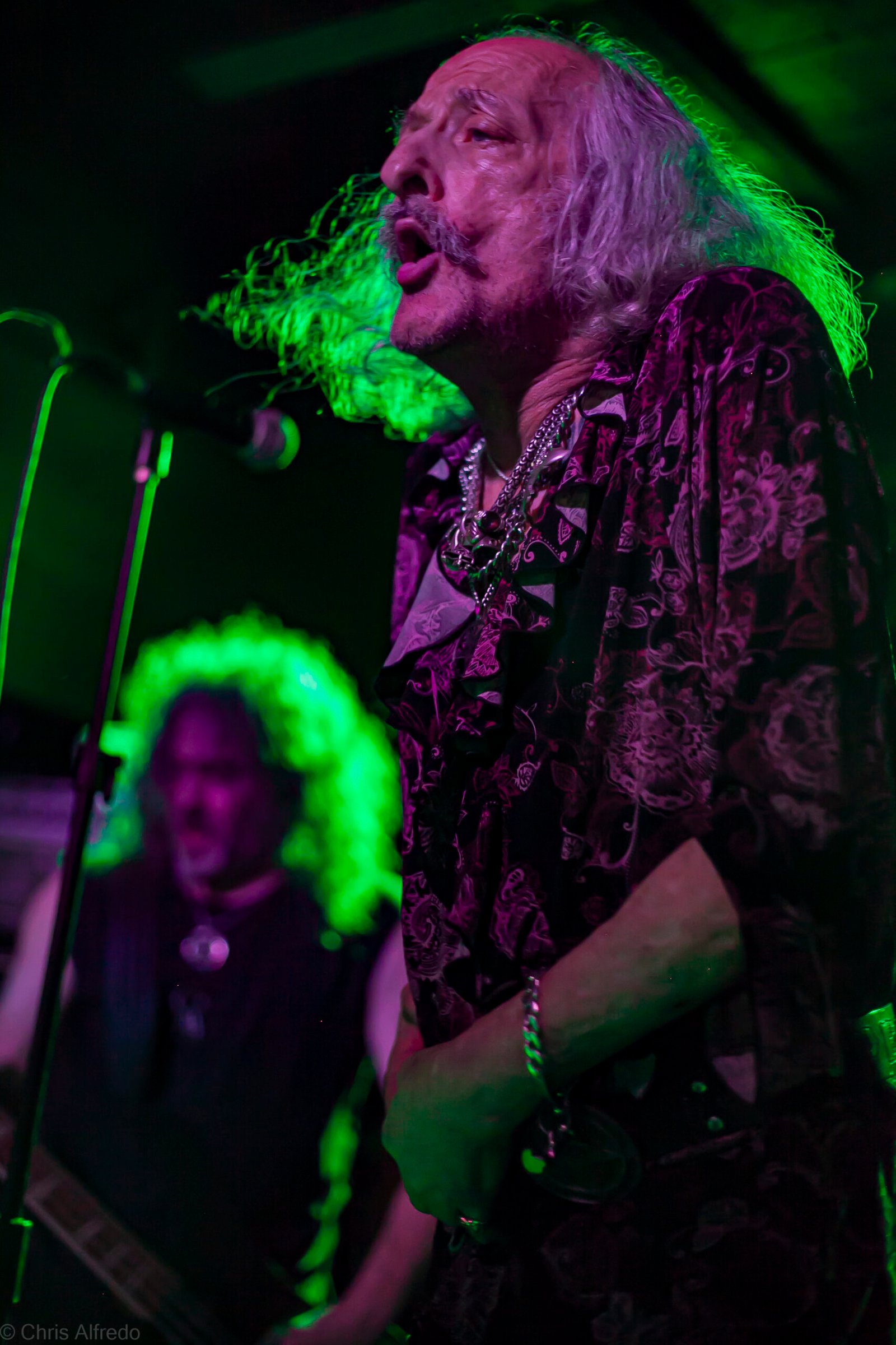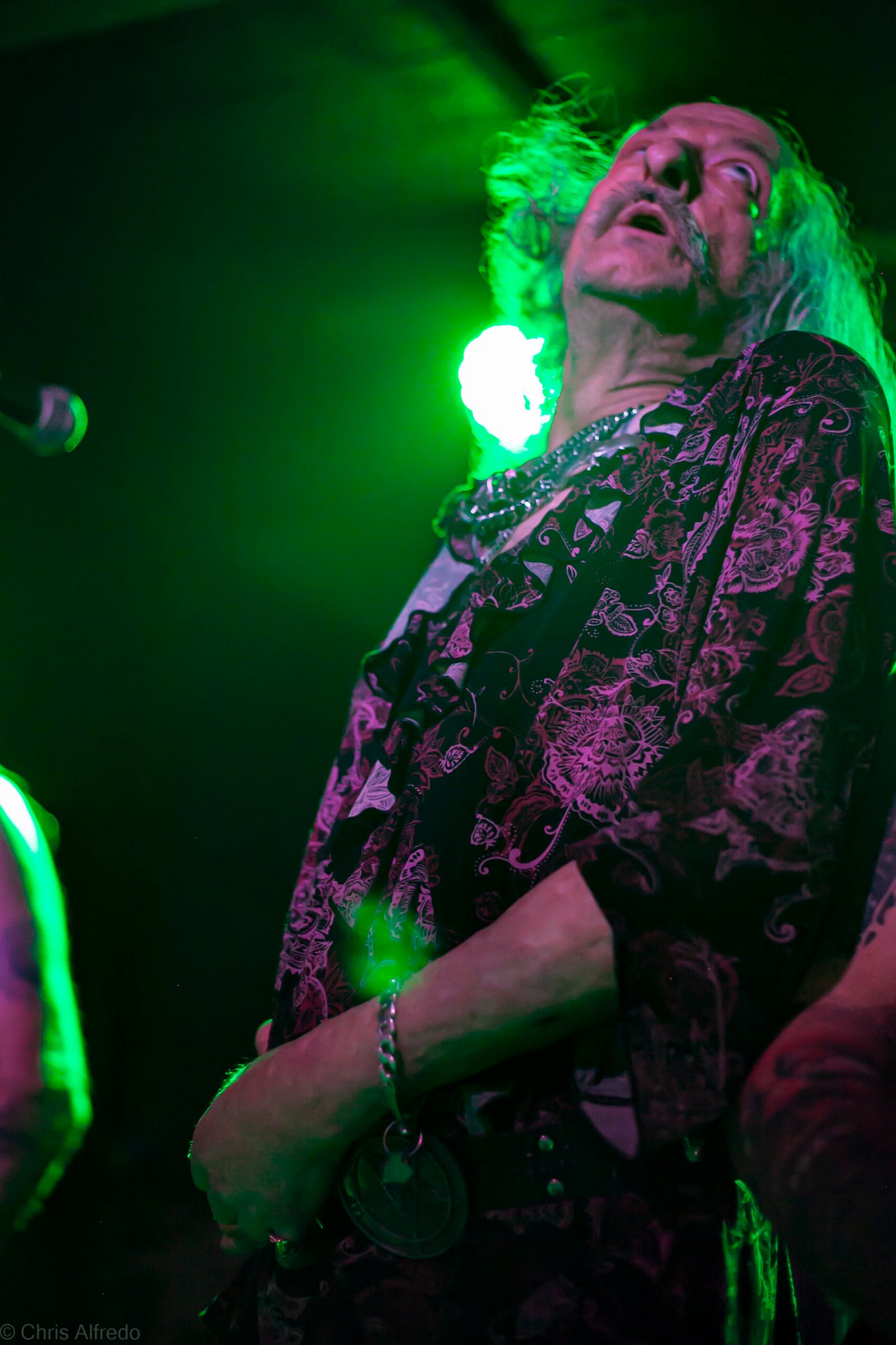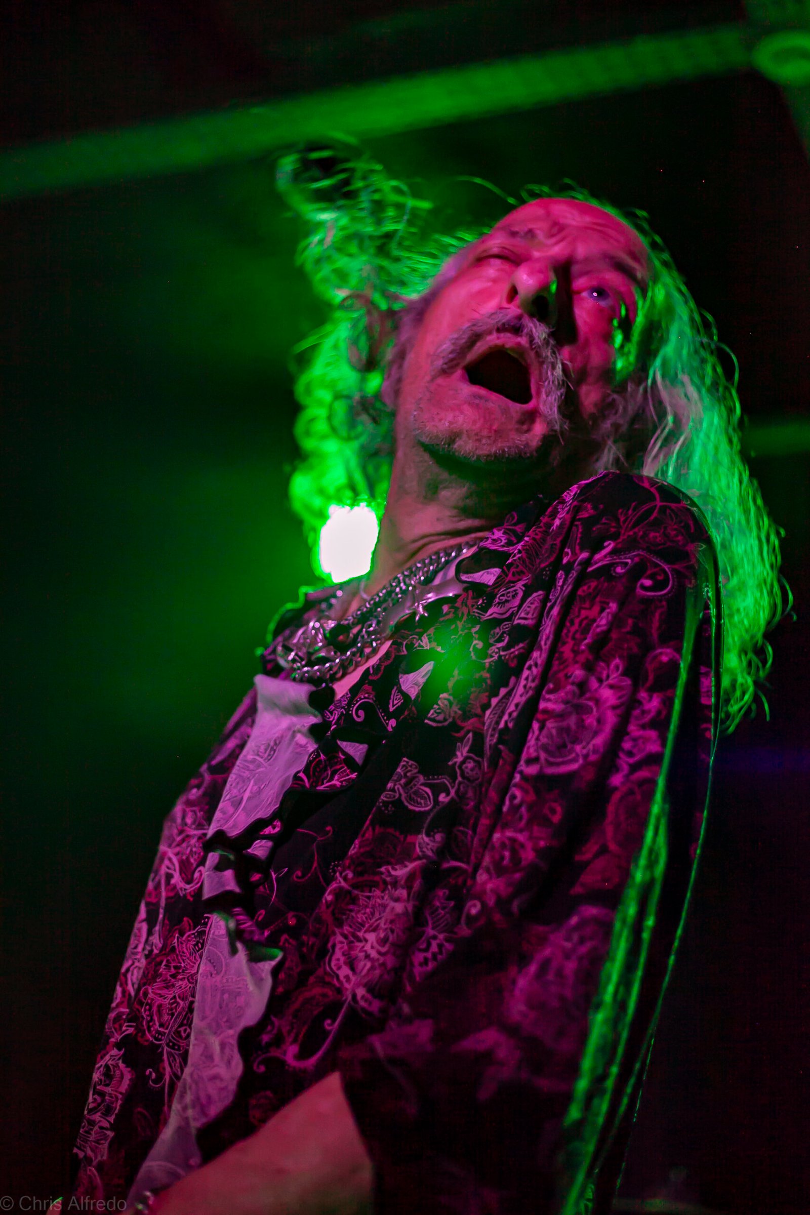 Bobby Liebling fez sua entrada triunfal com Live Again, faixa de abertura do último disco da banda, Lightning in a Bottle, seu décimo álbum de estúdio. Em seguida veio Starlady, e então o momento mais esperado da noite para os fãs mais recentes da banda: The Ghoul, música que embala o vídeo responsável pela recente explosão de popularidade do Pentagram. No registro, Bobby aparece com os cabelos esvoaçantes e olhar vidrado, gerando uma enxurrada de memes nas redes sociais. E sim, a icônica cena foi repetida no palco, embora eu tenha notado uma certa indiferença do vocalista com esse momento, o que considero compreensível, já que uma piada repetida muitas vezes perde a graça. Mas Bobby não é um artista de uma jogada só. Durante todo o show, ele demonstrou uma vasta sorte de caretas, trejeitos, olhares e até reboladas.
