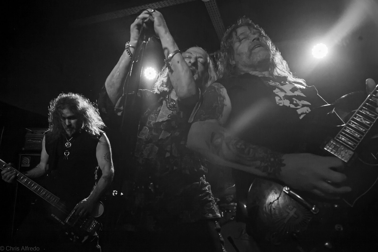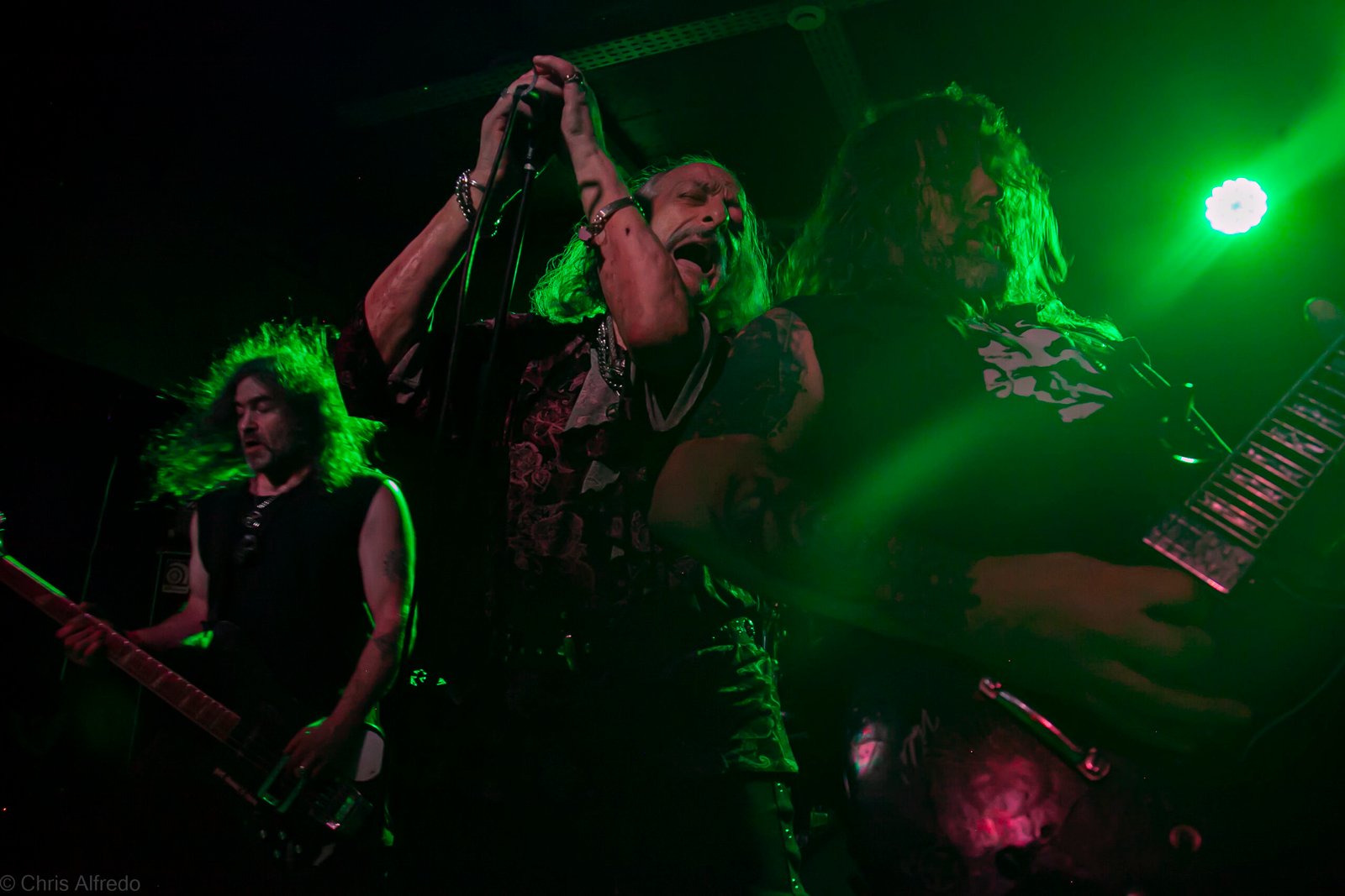 Os primeiros a se apresentar foram os curitibanos da Espectro, banda que faz um Stoner/Doom de muito respeito desde 2017. Com um álbum autointitulado Espectro de 2022, o grupo anunciou um EP saindo do forno em maio de 2025. O espaço de palco estava apertado devido ao aparato das bandas que viriam a seguir, resultando em um show mais estático, mas de muita qualidade. Infelizmente, a maior prejudicada foi a visibilidade do público em relação à baterista Karina D’alesandre, que ficou praticamente escondida. Ela foi uma das recentes adições à banda, junto com o baixista Felipe Leite. Completam o quinteto os guitarristas Luan Bremer e João Wegher, além do vocalista Reinaldo Zonta, que, além da ótima apresentação, arrancou boas risadas dos presentes ao citar as peculiaridades da Rua Trajano Reis, famosa em Curitiba por sua “vida noturna”.