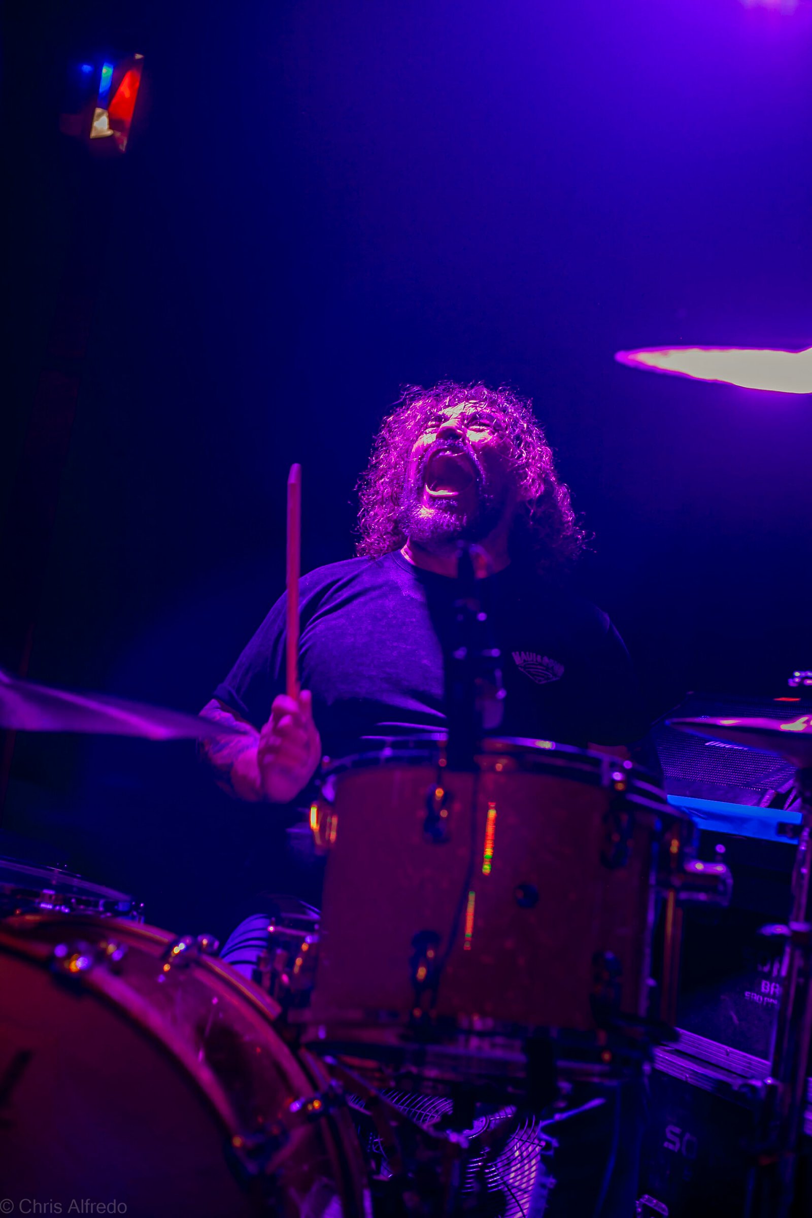 Finalmente, a principal banda da noite começou a subir ao palco. Primeiro veio o guitarrista Tony Reed, aquecendo não só sua guitarra, mas também sua garganta com uma garrafa de Jägermeister, que mais tarde virou um souvenir para um fã. Em seguida, vieram o baixista Scooter Haslip e o baterista Henry Vasquez, que, enquanto checavam o som de seus instrumentos, fizeram um acompanhamento musical para o coro da plateia, que gritava o nome da presença mais esperada: