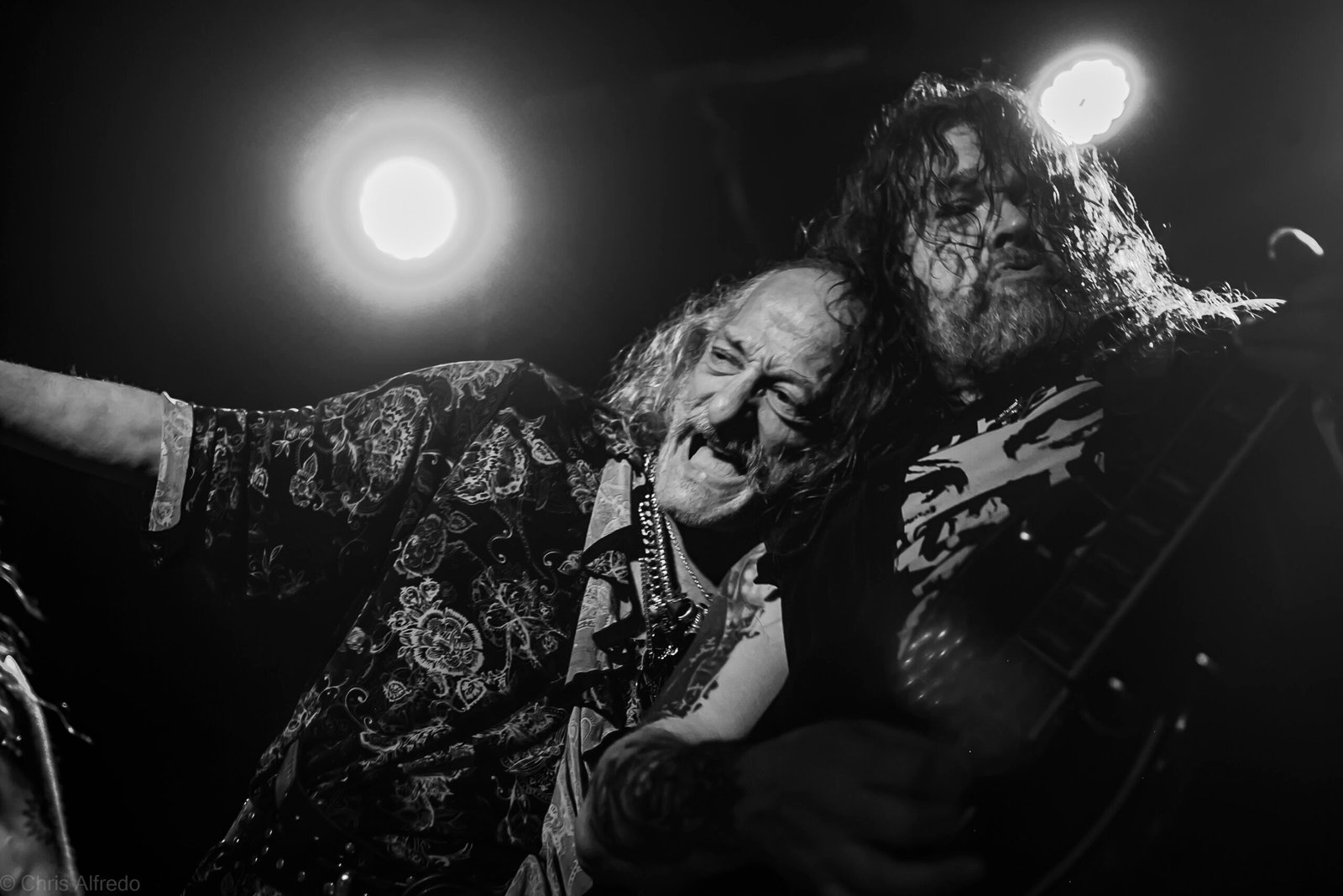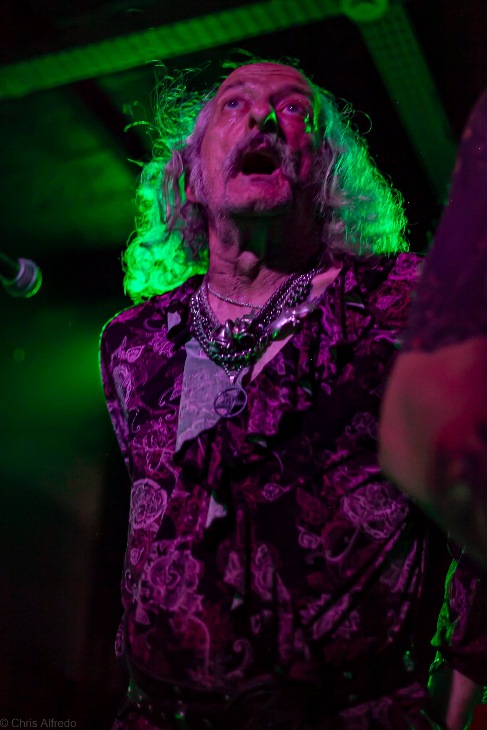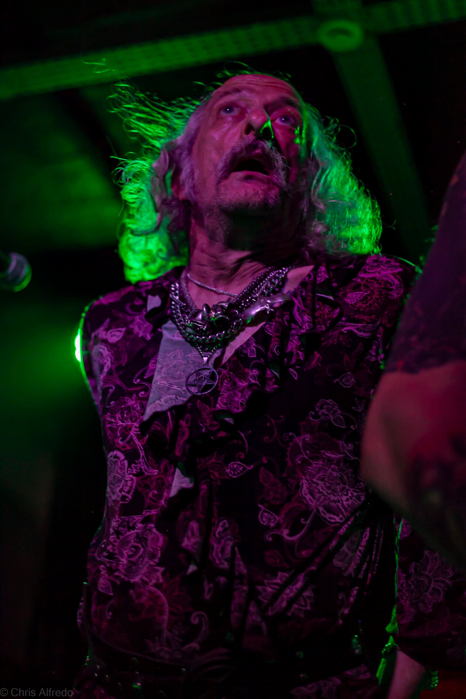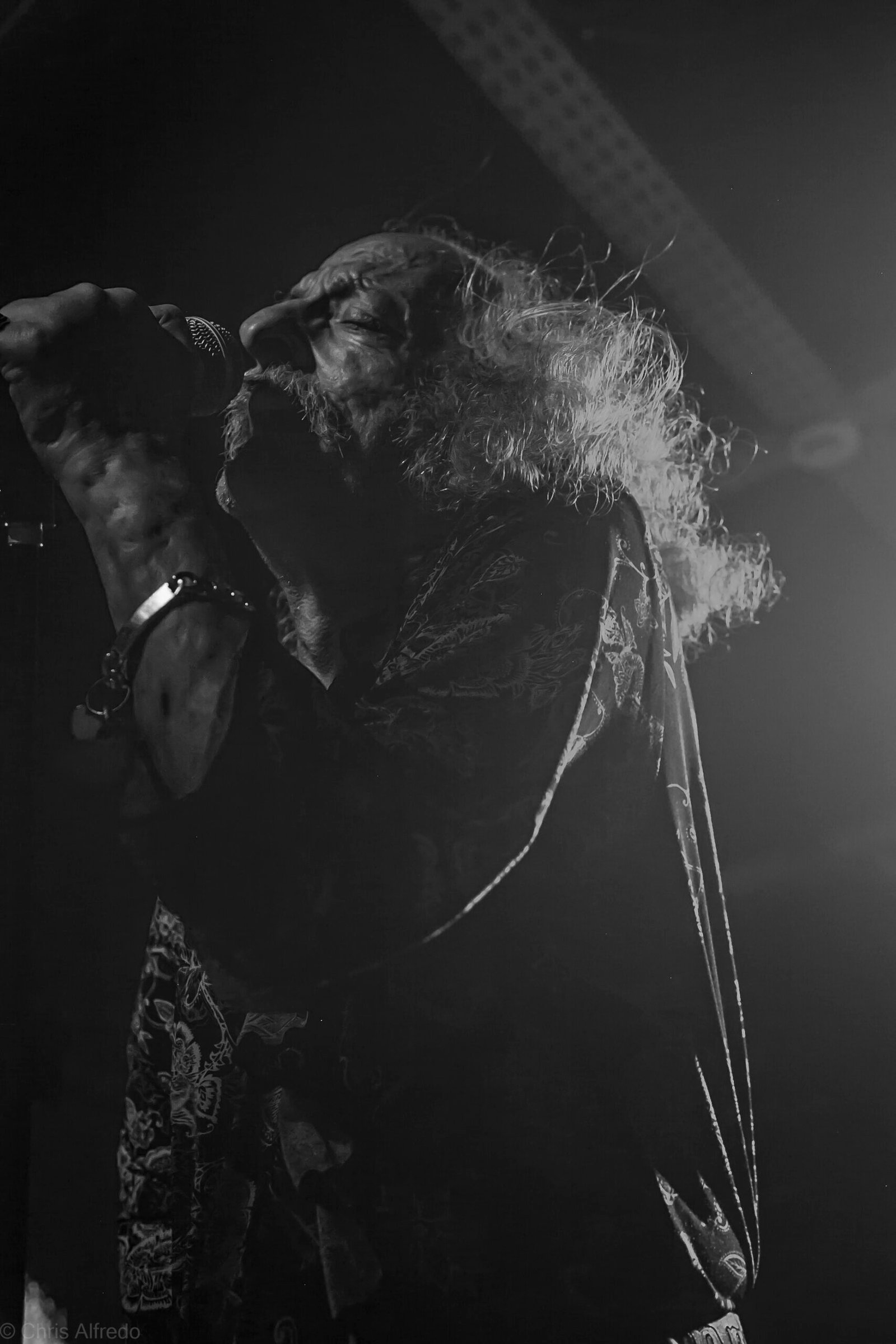 Bobby Liebling fez sua entrada triunfal com Live Again, faixa de abertura do último disco da banda, Lightning in a Bottle, seu décimo álbum de estúdio. Em seguida veio Starlady, e então o momento mais esperado da noite para os fãs mais recentes da banda: The Ghoul, música que embala o vídeo responsável pela recente explosão de popularidade do Pentagram. No registro, Bobby aparece com os cabelos esvoaçantes e olhar vidrado, gerando uma enxurrada de memes nas redes sociais. E sim, a icônica cena foi repetida no palco, embora eu tenha notado uma certa indiferença do vocalista com esse momento, o que considero compreensível, já que uma piada repetida muitas vezes perde a graça. Mas Bobby não é um artista de uma jogada só. Durante todo o show, ele demonstrou uma vasta sorte de caretas, trejeitos, olhares e até reboladas.