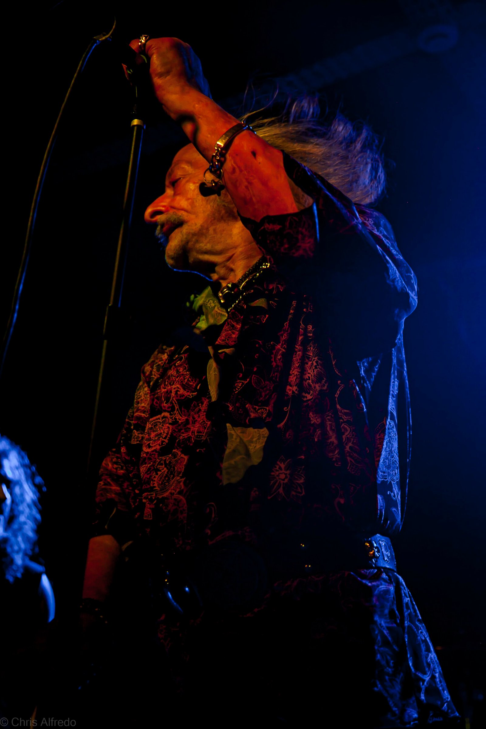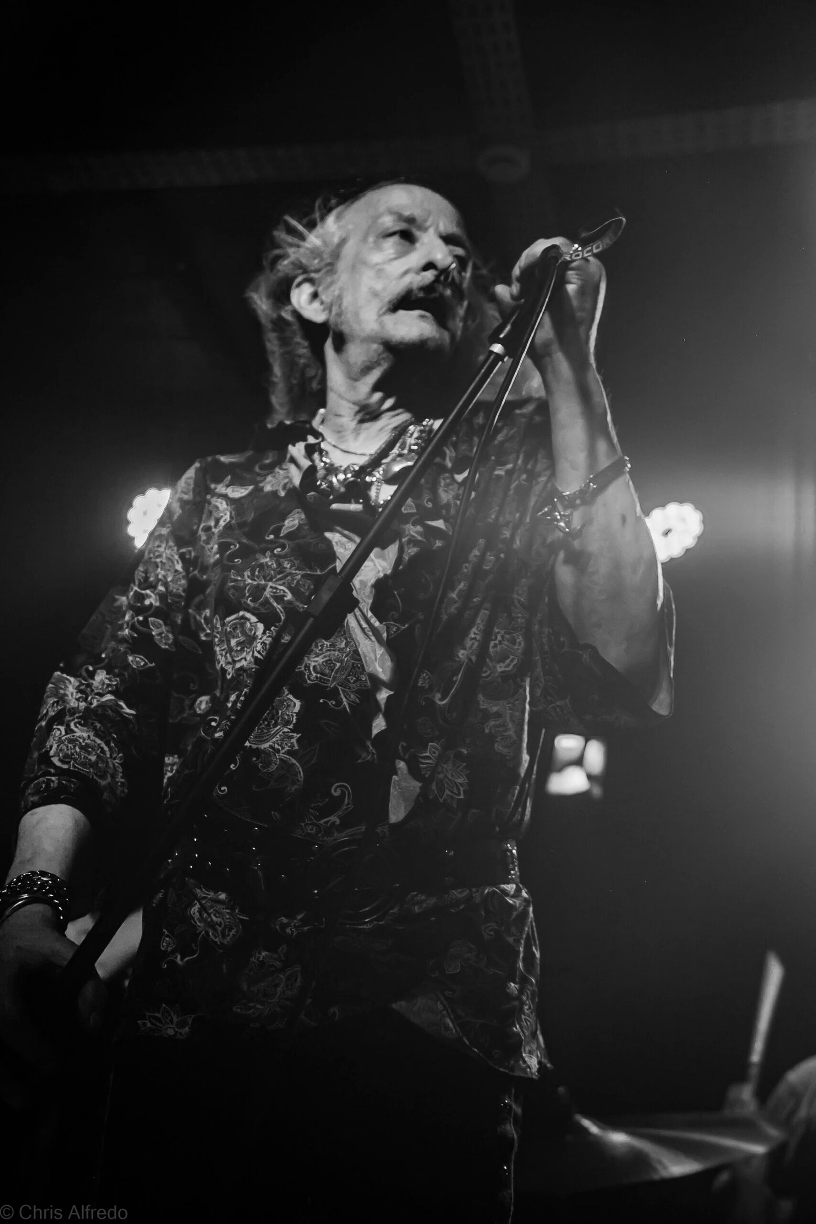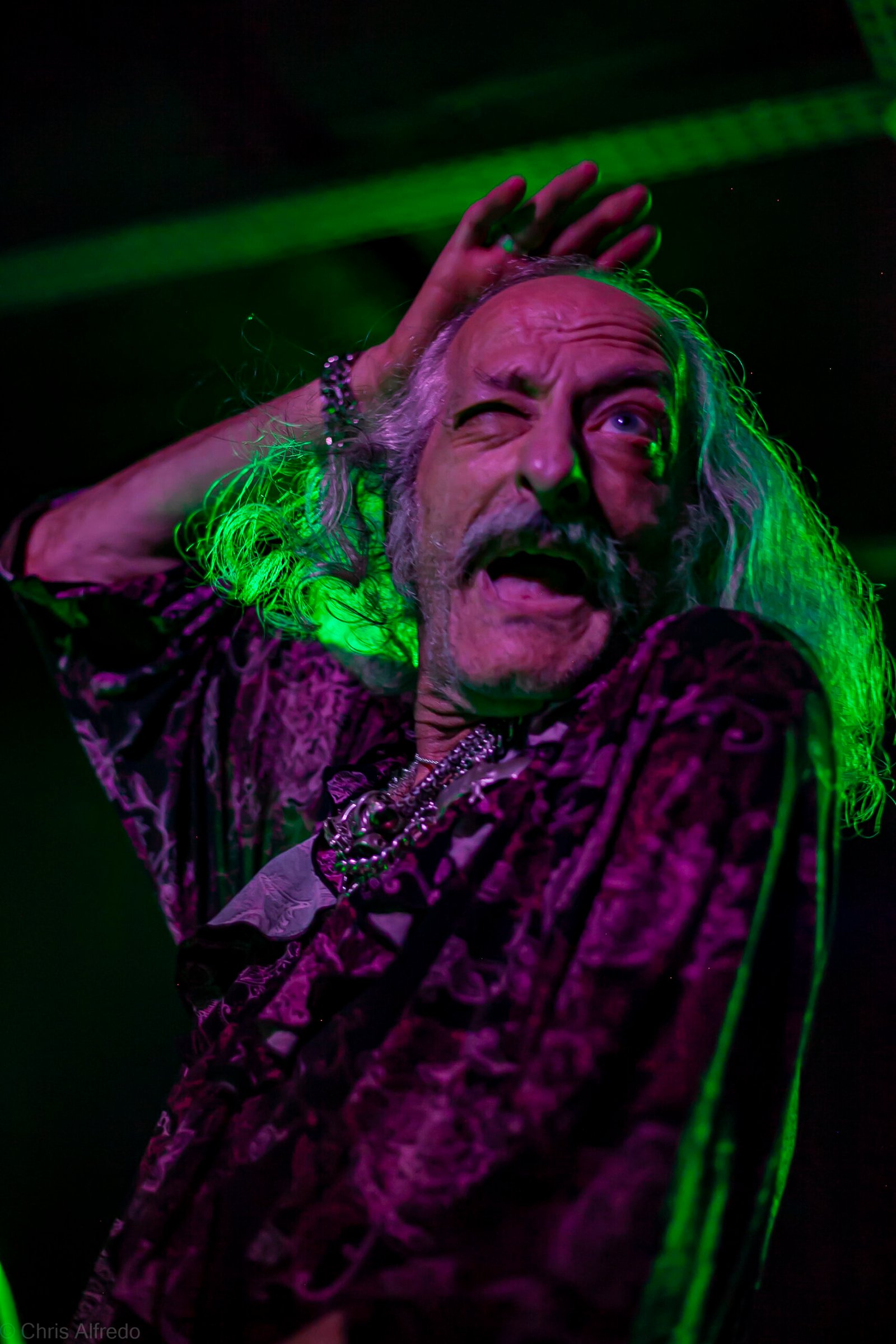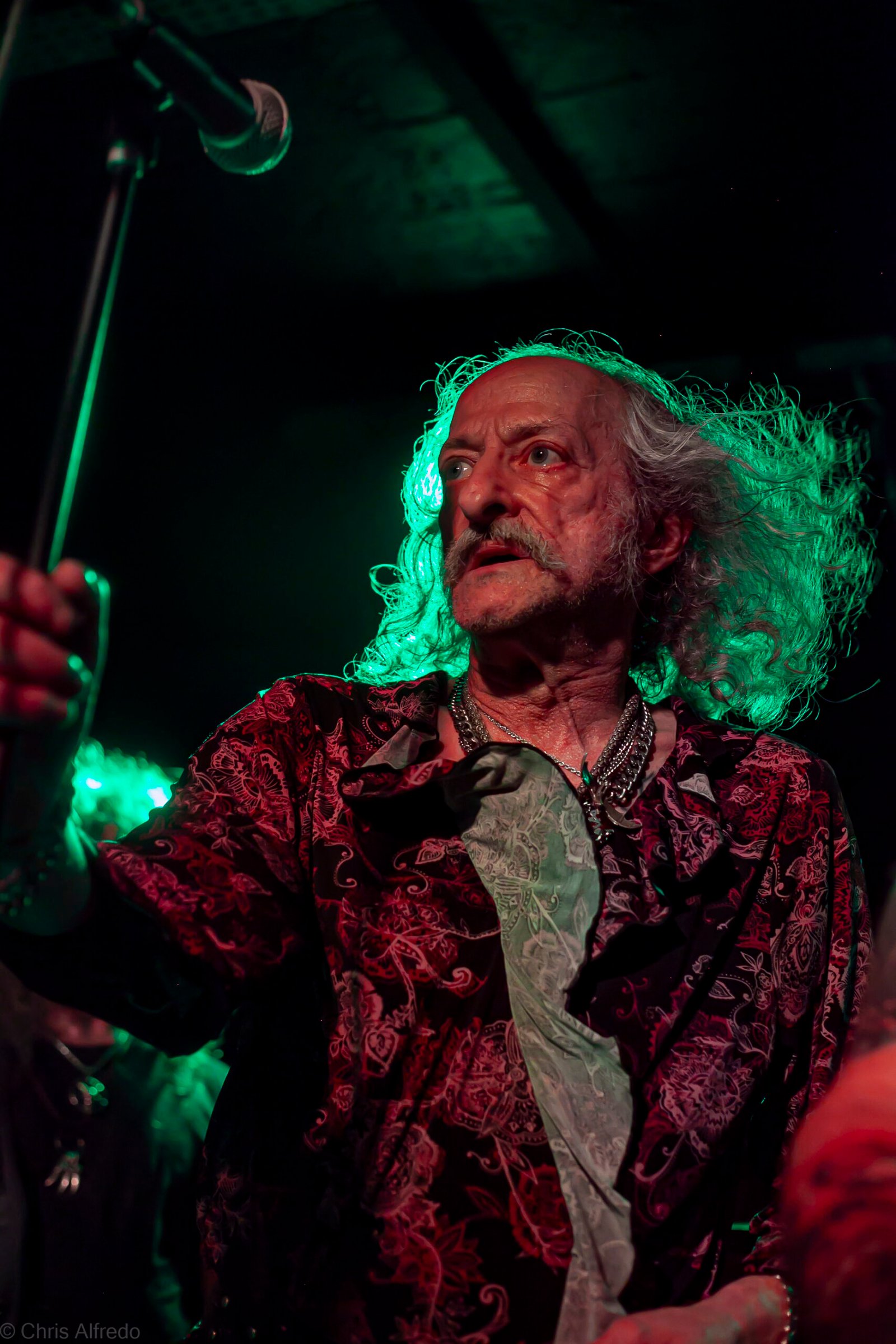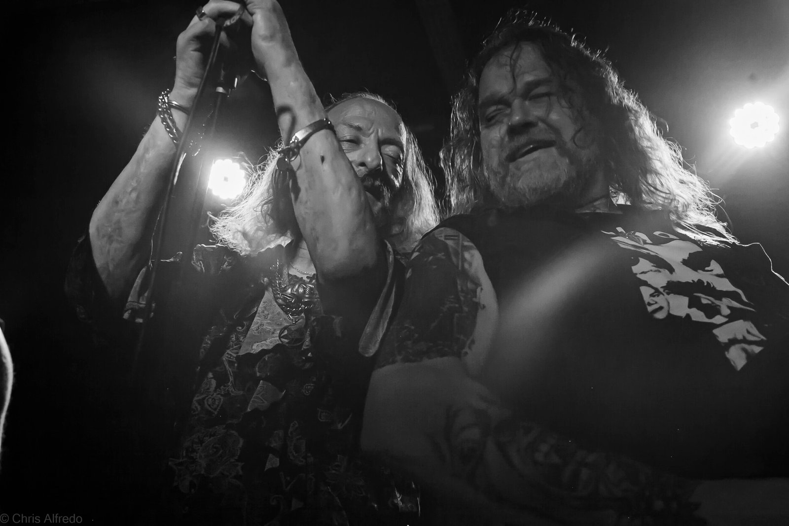 Bobby Liebling fez sua entrada triunfal com Live Again, faixa de abertura do último disco da banda, Lightning in a Bottle, seu décimo álbum de estúdio. Em seguida veio Starlady, e então o momento mais esperado da noite para os fãs mais recentes da banda: The Ghoul, música que embala o vídeo responsável pela recente explosão de popularidade do Pentagram. No registro, Bobby aparece com os cabelos esvoaçantes e olhar vidrado, gerando uma enxurrada de memes nas redes sociais. E sim, a icônica cena foi repetida no palco, embora eu tenha notado uma certa indiferença do vocalista com esse momento, o que considero compreensível, já que uma piada repetida muitas vezes perde a graça. Mas Bobby não é um artista de uma jogada só. Durante todo o show, ele demonstrou uma vasta sorte de caretas, trejeitos, olhares e até reboladas.