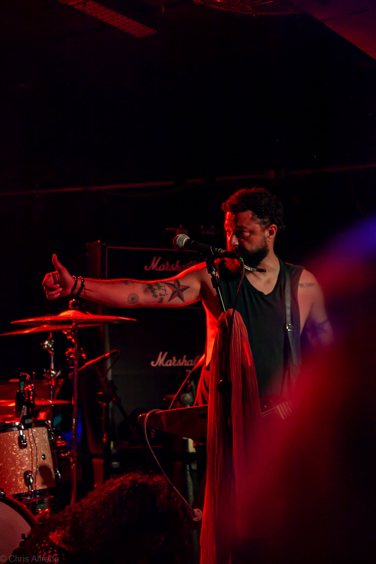 Em seguida, foi a vez dos mineiros da Pesta, banda também de Stoner/Doom, que vinha sendo muito aguardada nos palcos curitibanos. A expectativa era mútua, conforme mencionado pelo vocalista Thiago Cruz, já que a fama de Curitiba como à cidade mais Rock’n’Roll tem furado a bolha regional e se espalhado pelo Brasil. No palco, todos os integrantes tiveram presença marcante, seja pela psicodelia de Thiago com seu lenço esvoaçante, pela inegável tranquilidade nos olhos do guitarrista Marcos Resende, pelas caretas do baterista Flavio Freitas, ou pelo fato curioso do baixista Anderson Vaca tocar com o baixo de ponta-cabeça. Ao final do show, perguntei a ele o motivo disso e, como eu já imaginava, no início de seus estudos, os modelos adaptados para canhotos eram caros e de difícil acesso. Assim, aprender a tocar com o instrumento invertido foi a solução mais viável, uma grande demonstração de talento na minha opinião. A Pesta nos presenteou com uma belíssima amostra de seu potencial, e tenho certeza de que eles deixam Curitiba com muitos fãs ansiosos para vê-los novamente na cidade.
