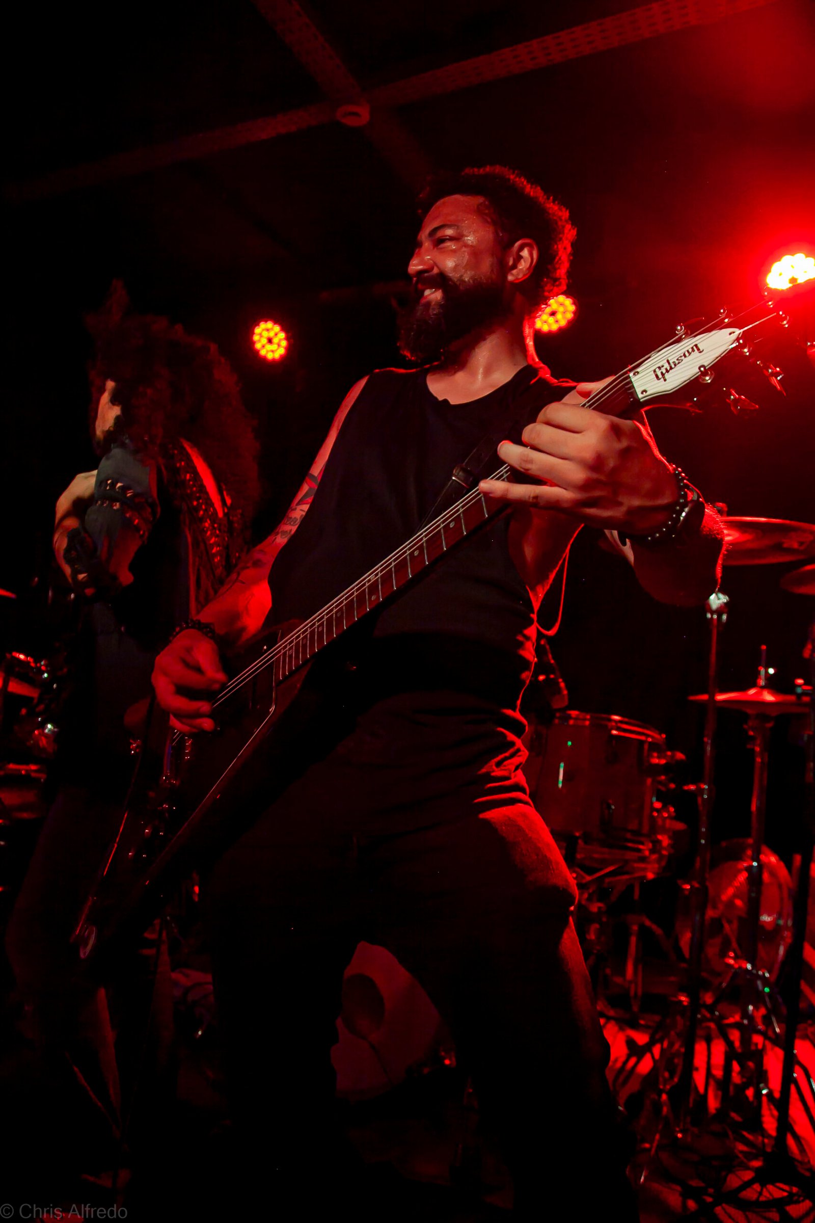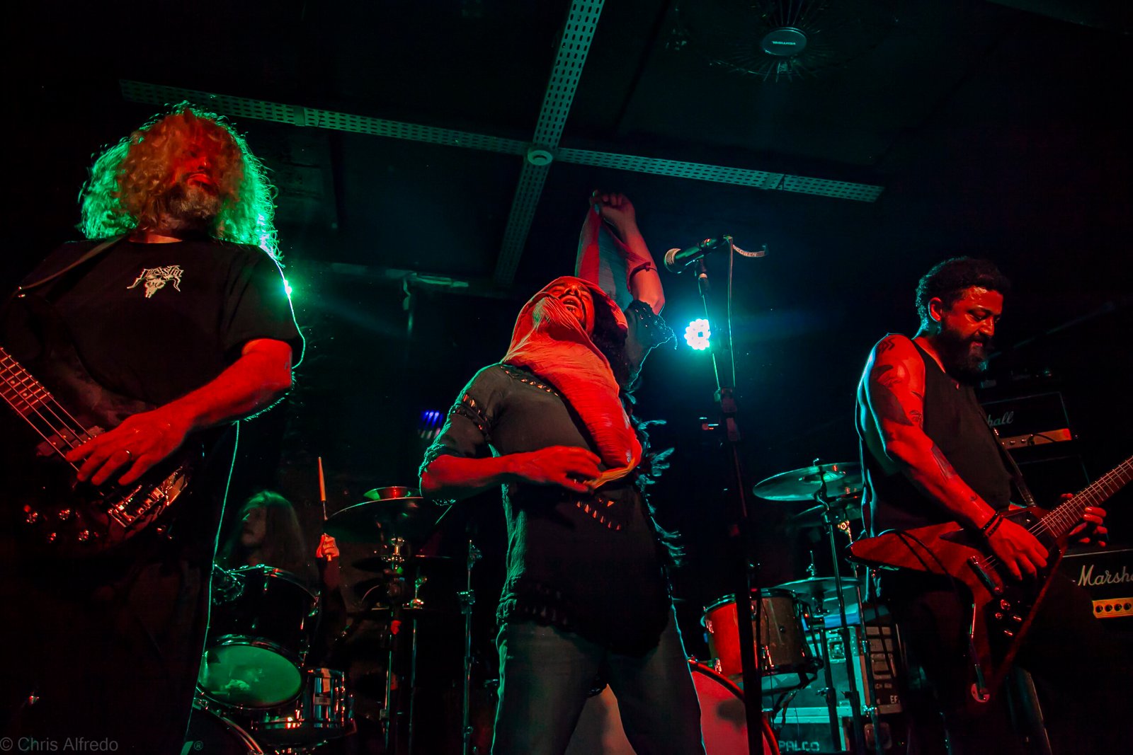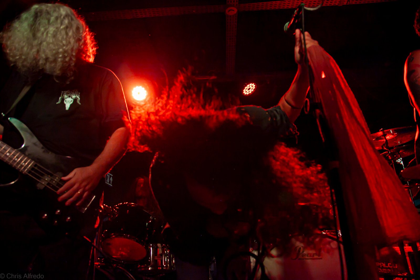 Os primeiros a se apresentar foram os curitibanos da Espectro, banda que faz um Stoner/Doom de muito respeito desde 2017. Com um álbum autointitulado Espectro de 2022, o grupo anunciou um EP saindo do forno em maio de 2025. O espaço de palco estava apertado devido ao aparato das bandas que viriam a seguir, resultando em um show mais estático, mas de muita qualidade. Infelizmente, a maior prejudicada foi a visibilidade do público em relação à baterista Karina D’alesandre, que ficou praticamente escondida. Ela foi uma das recentes adições à banda, junto com o baixista Felipe Leite. Completam o quinteto os guitarristas Luan Bremer e João Wegher, além do vocalista Reinaldo Zonta, que, além da ótima apresentação, arrancou boas risadas dos presentes ao citar as peculiaridades da Rua Trajano Reis, famosa em Curitiba por sua “vida noturna”.