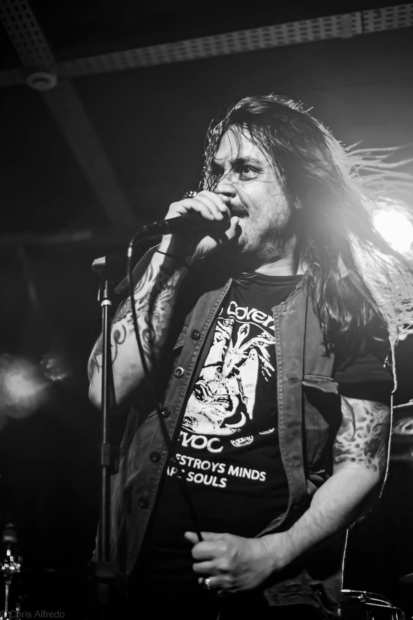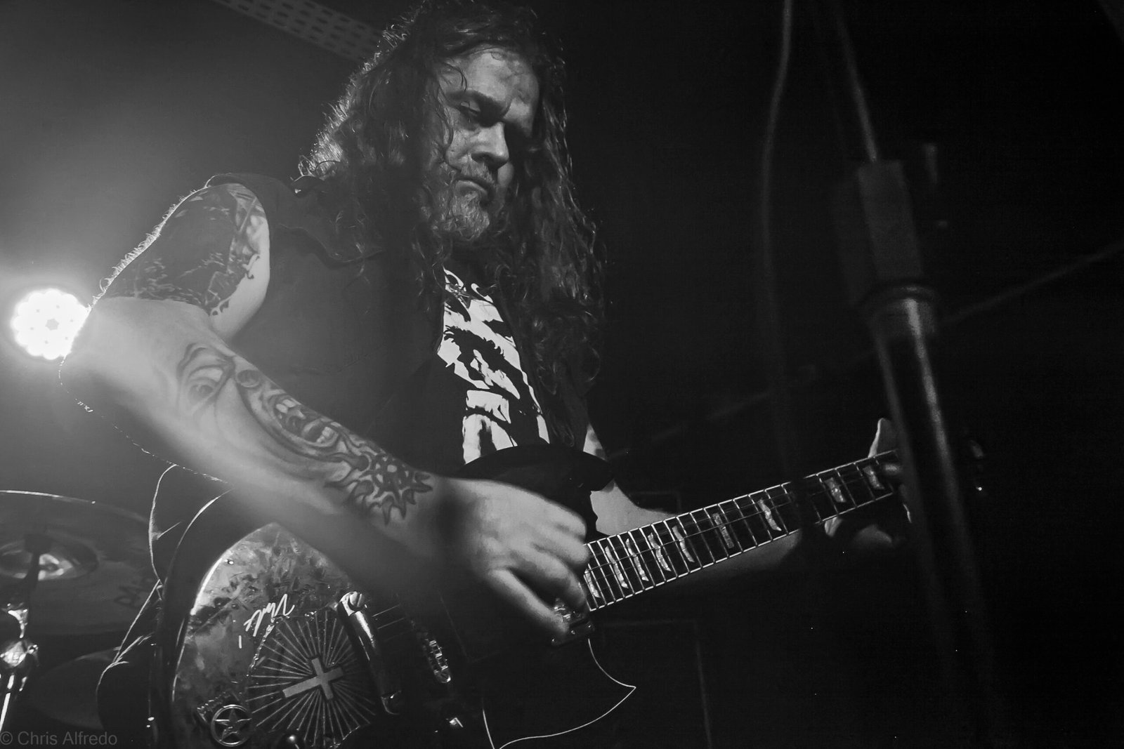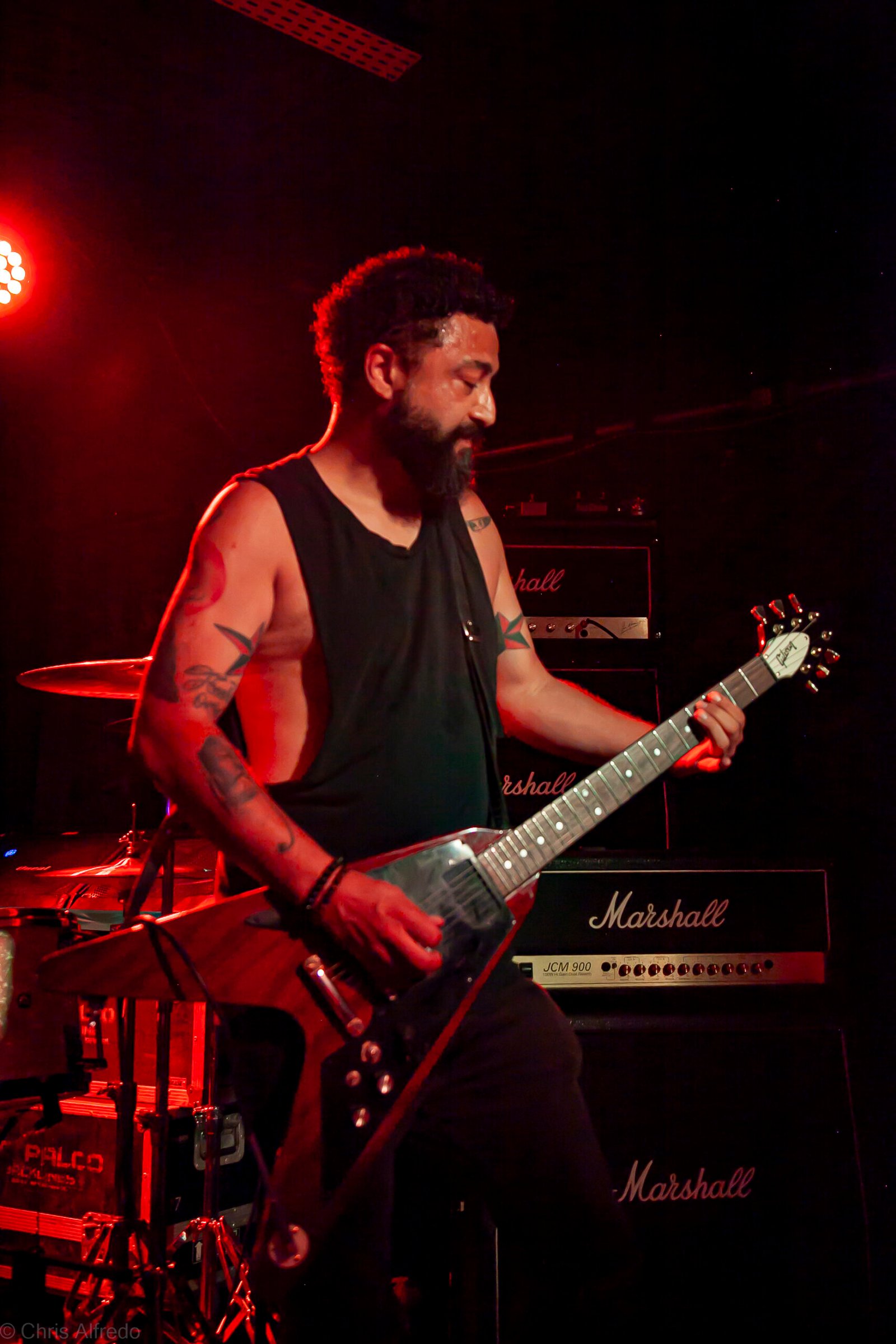 Os primeiros a se apresentar foram os curitibanos da Espectro, banda que faz um Stoner/Doom de muito respeito desde 2017. Com um álbum autointitulado Espectro de 2022, o grupo anunciou um EP saindo do forno em maio de 2025. O espaço de palco estava apertado devido ao aparato das bandas que viriam a seguir, resultando em um show mais estático, mas de muita qualidade. Infelizmente, a maior prejudicada foi a visibilidade do público em relação à baterista Karina D’alesandre, que ficou praticamente escondida. Ela foi uma das recentes adições à banda, junto com o baixista Felipe Leite. Completam o quinteto os guitarristas Luan Bremer e João Wegher, além do vocalista Reinaldo Zonta, que, além da ótima apresentação, arrancou boas risadas dos presentes ao citar as peculiaridades da Rua Trajano Reis, famosa em Curitiba por sua “vida noturna”.