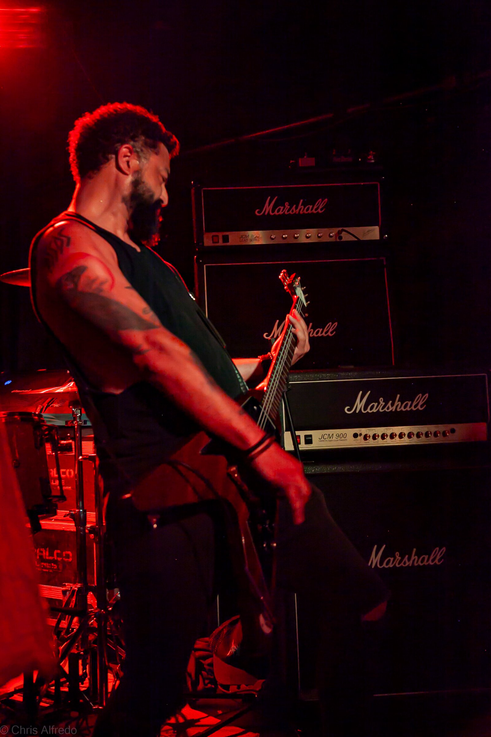 Finalmente, a principal banda da noite começou a subir ao palco. Primeiro veio o guitarrista Tony Reed, aquecendo não só sua guitarra, mas também sua garganta com uma garrafa de Jägermeister, que mais tarde virou um souvenir para um fã. Em seguida, vieram o baixista Scooter Haslip e o baterista Henry Vasquez, que, enquanto checavam o som de seus instrumentos, fizeram um acompanhamento musical para o coro da plateia, que gritava o nome da presença mais esperada: