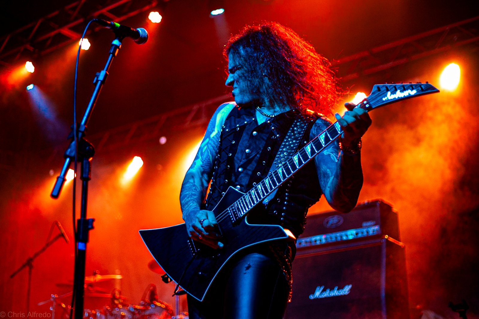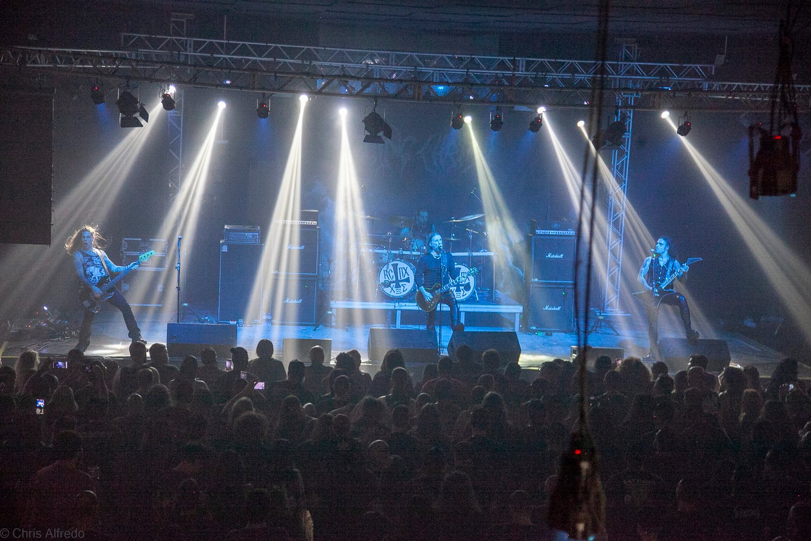 Com o horário da abertura dos portões marcado para as 19h, o público foi chegando aos poucos, adentrando o recinto com calma e sem filas ou tumultos, o que ocasionou também uma grande chance para quem é fã de ficar na grade, uma boa oportunidade para escolher o lugar que mais lhe agrada, uma vez que o destino da maioria que entrava era o grande balcão circular do bar que separa a pista e a espaçosa praça de alimentação da casa. Com a refrigeração em sua potência máxima e cerveja extremamente gelada, foi fácil esquecer o calor infernal que estava lá fora, pelo menos por uns minutos… No palco, viam-se púlpitos com livros que pareciam bíblias e bandeiras com símbolos associados a cultos pagãos, visão que anunciava que a noite seria exatamente isso, uma noite de grande blasfêmia.