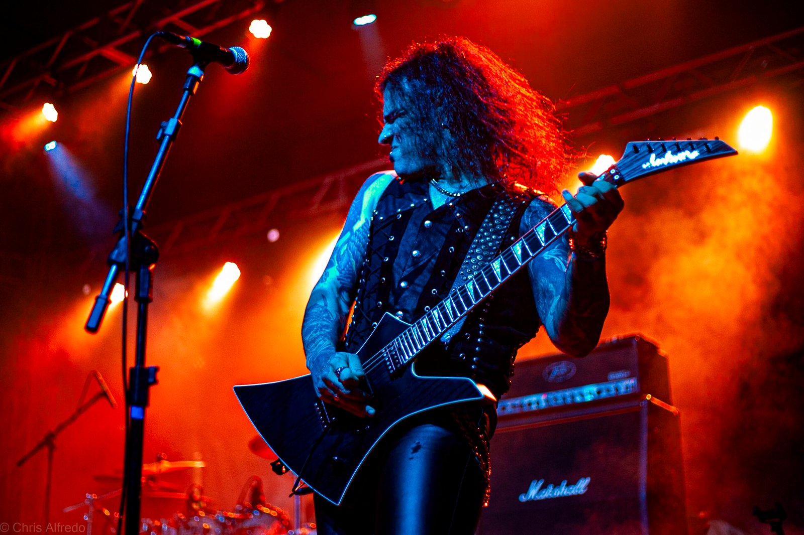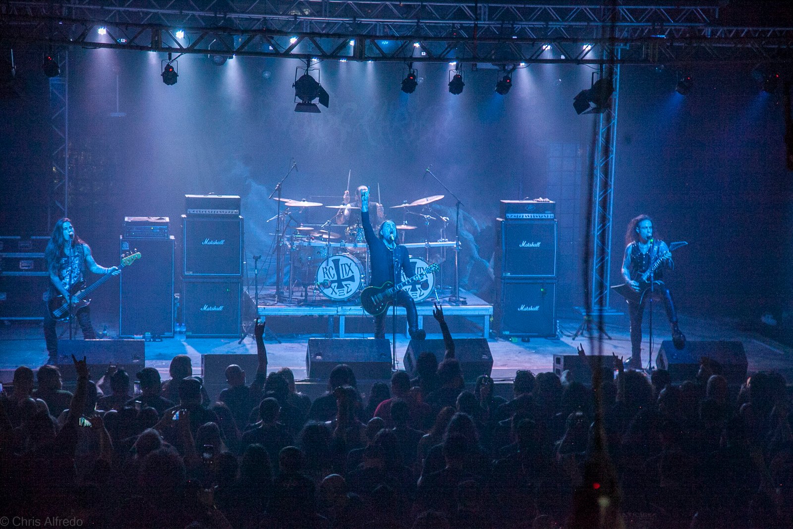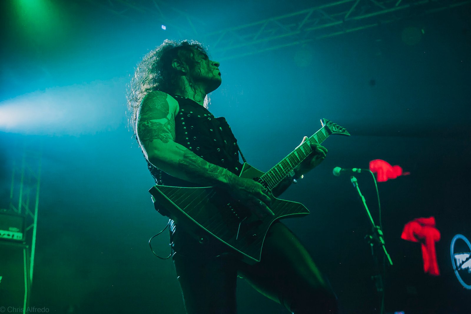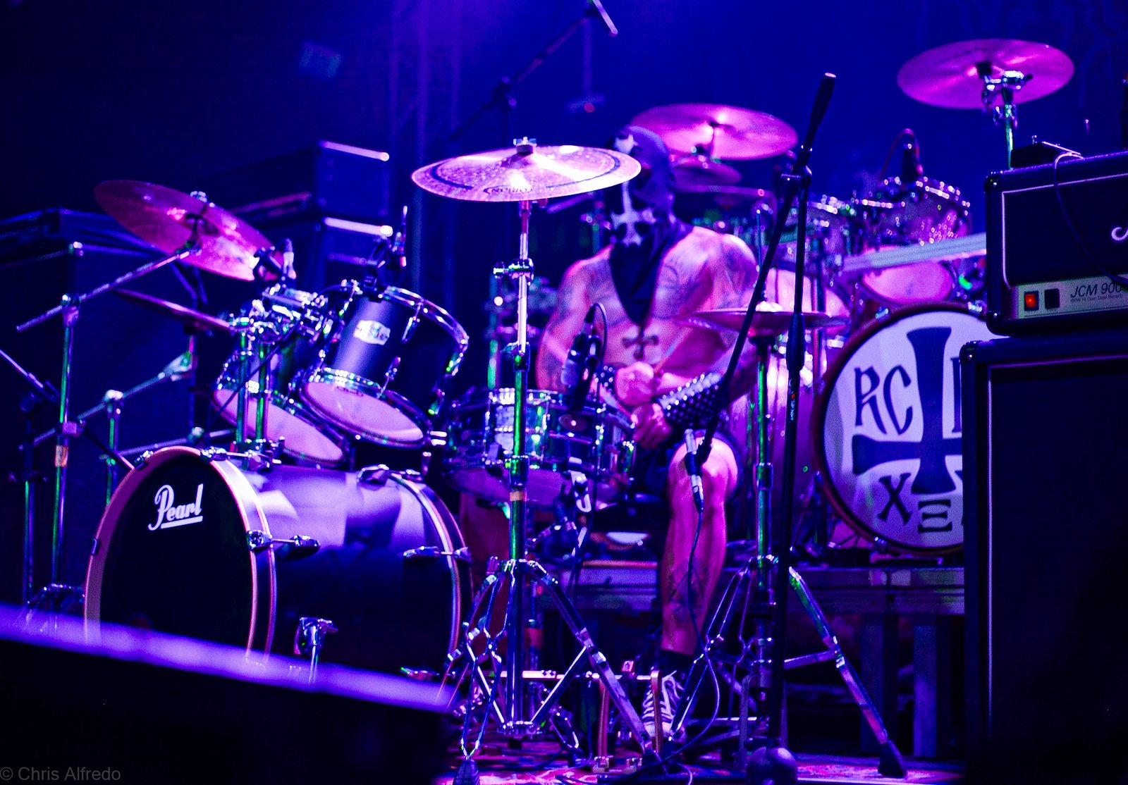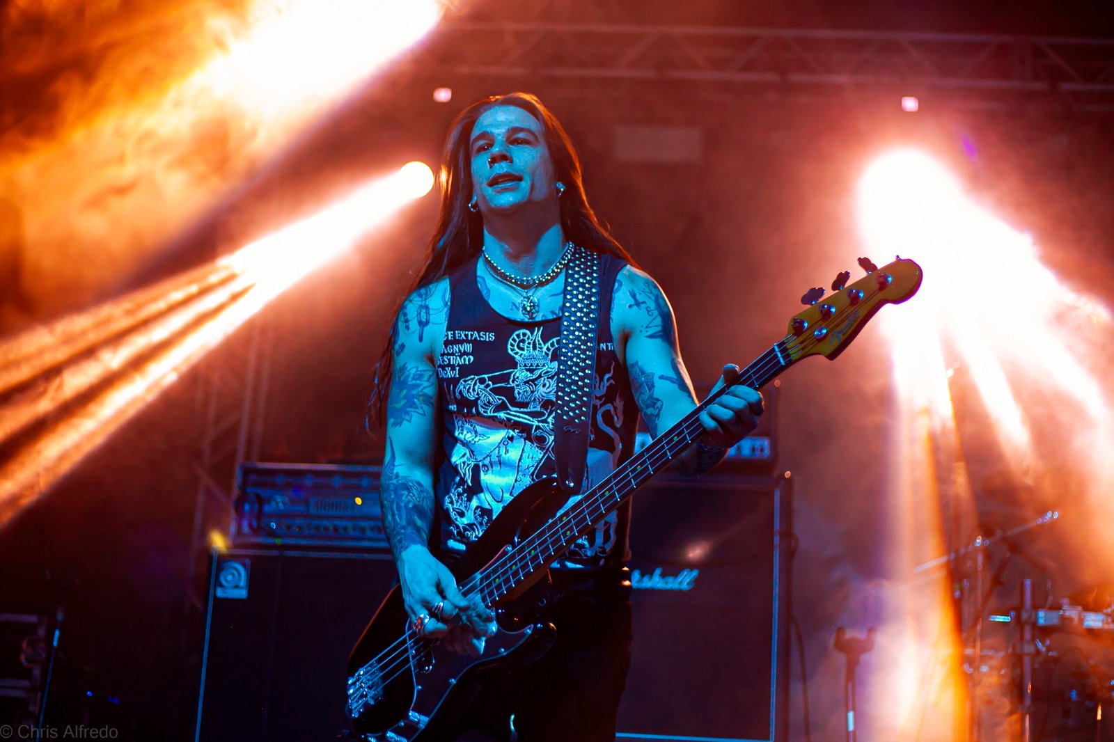 Com o horário da abertura dos portões marcado para as 19h, o público foi chegando aos poucos, adentrando o recinto com calma e sem filas ou tumultos, o que ocasionou também uma grande chance para quem é fã de ficar na grade, uma boa oportunidade para escolher o lugar que mais lhe agrada, uma vez que o destino da maioria que entrava era o grande balcão circular do bar que separa a pista e a espaçosa praça de alimentação da casa. Com a refrigeração em sua potência máxima e cerveja extremamente gelada, foi fácil esquecer o calor infernal que estava lá fora, pelo menos por uns minutos… No palco, viam-se púlpitos com livros que pareciam bíblias e bandeiras com símbolos associados a cultos pagãos, visão que anunciava que a noite seria exatamente isso, uma noite de grande blasfêmia.
