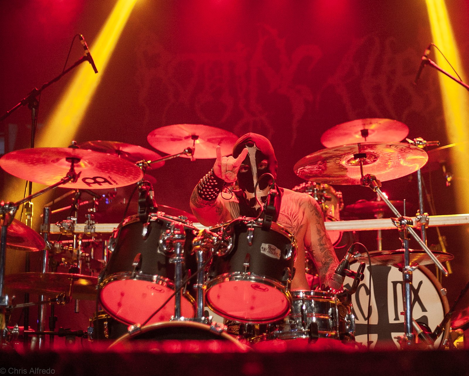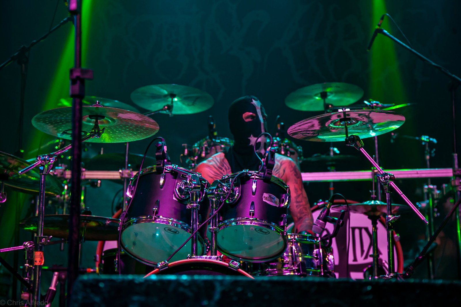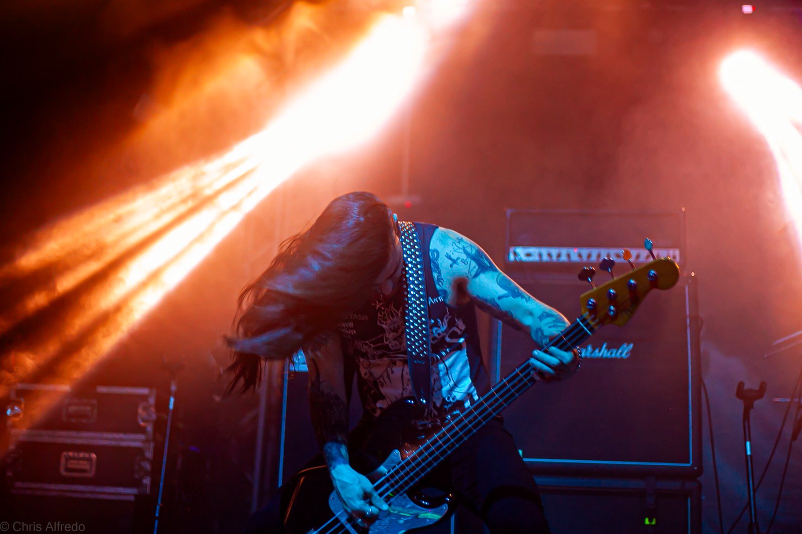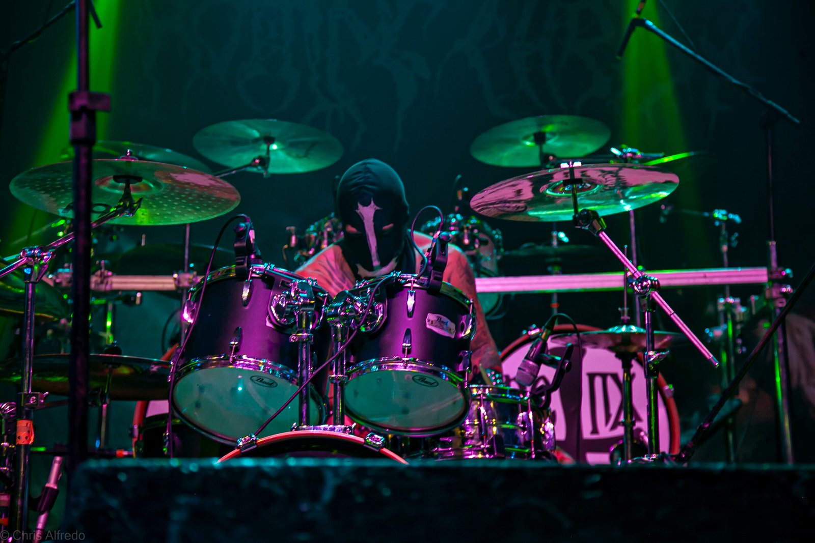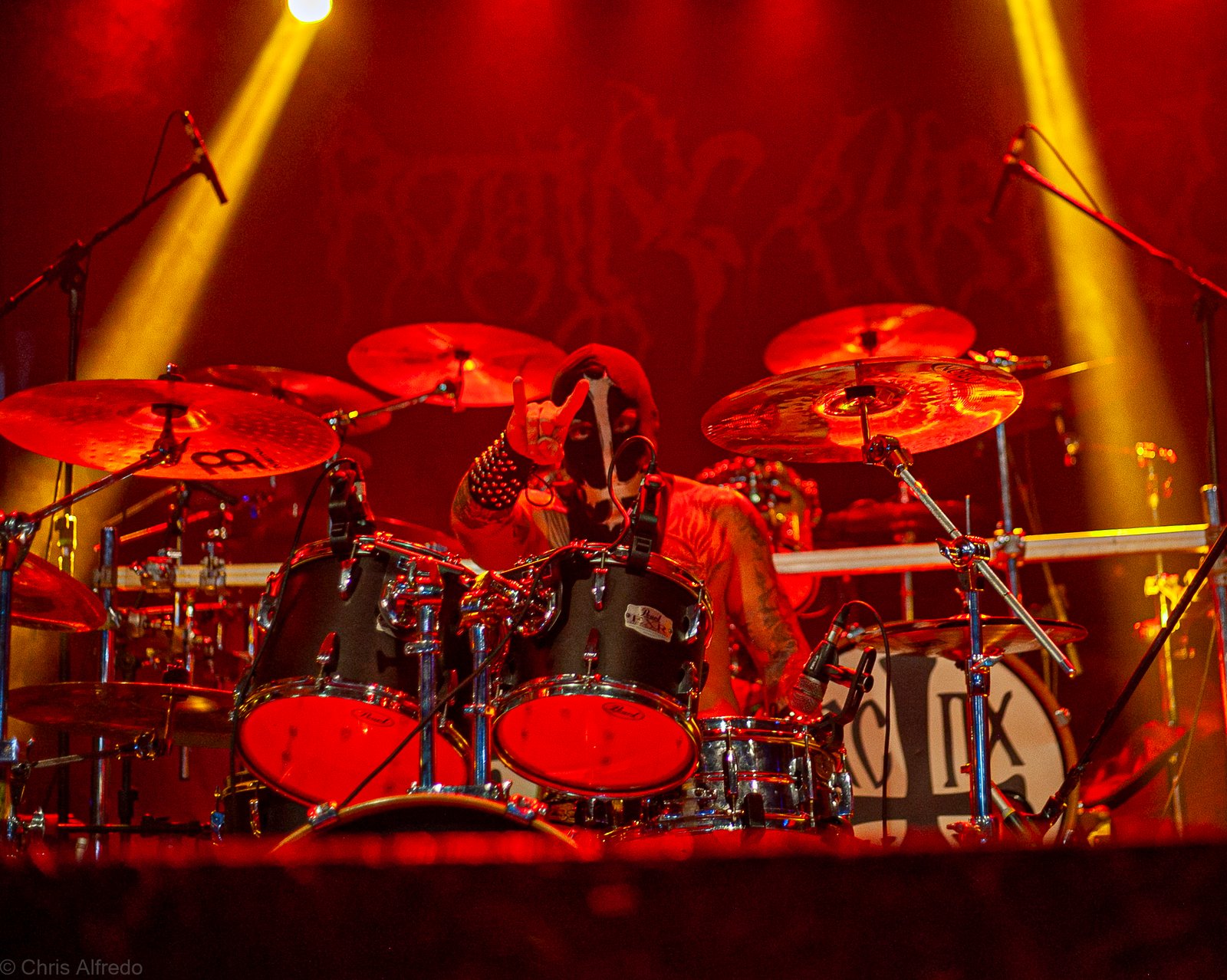 Com o horário da abertura dos portões marcado para as 19h, o público foi chegando aos poucos, adentrando o recinto com calma e sem filas ou tumultos, o que ocasionou também uma grande chance para quem é fã de ficar na grade, uma boa oportunidade para escolher o lugar que mais lhe agrada, uma vez que o destino da maioria que entrava era o grande balcão circular do bar que separa a pista e a espaçosa praça de alimentação da casa. Com a refrigeração em sua potência máxima e cerveja extremamente gelada, foi fácil esquecer o calor infernal que estava lá fora, pelo menos por uns minutos… No palco, viam-se púlpitos com livros que pareciam bíblias e bandeiras com símbolos associados a cultos pagãos, visão que anunciava que a noite seria exatamente isso, uma noite de grande blasfêmia.