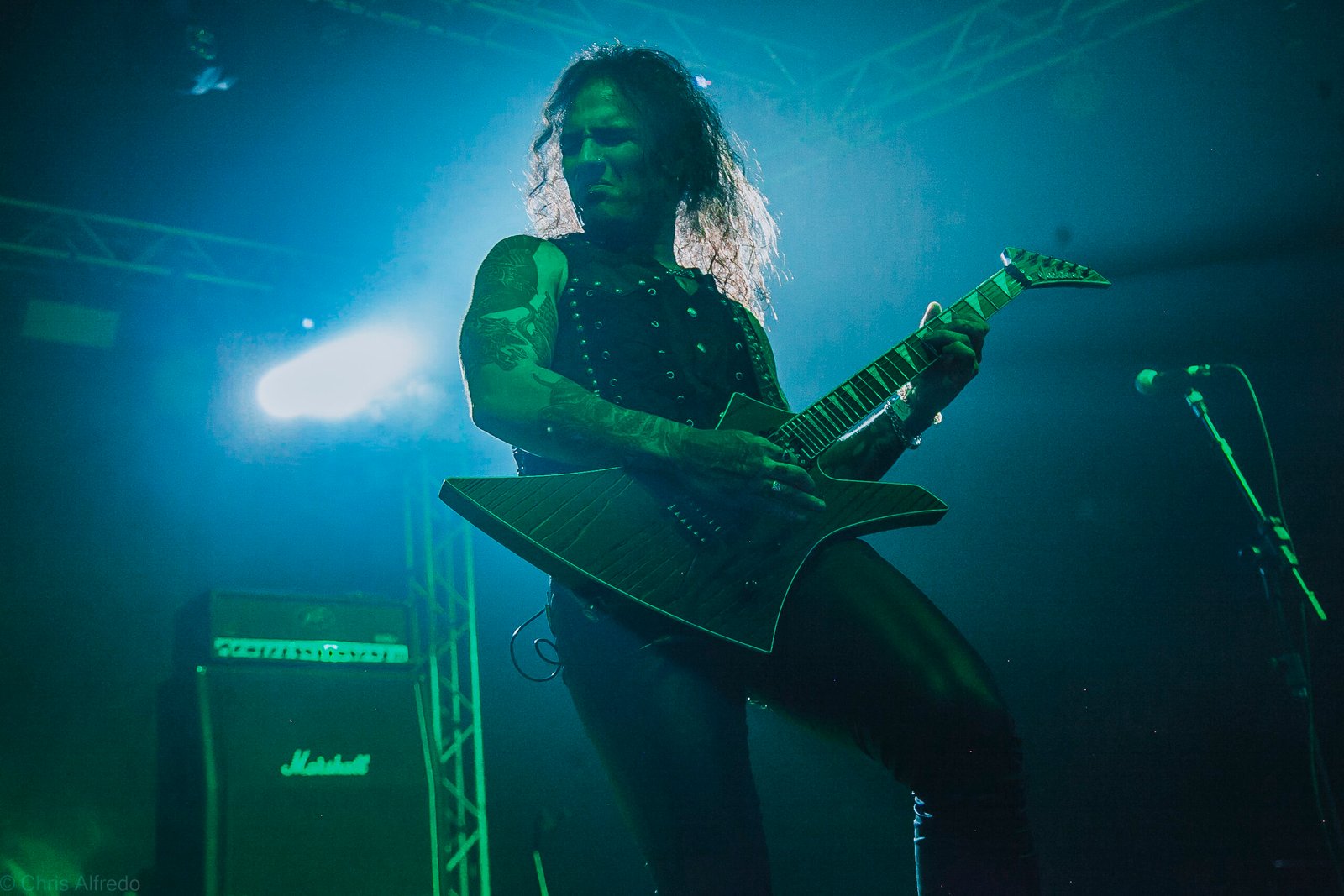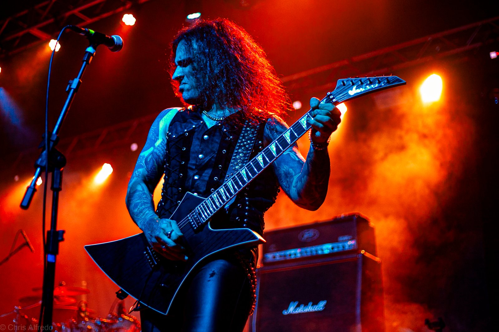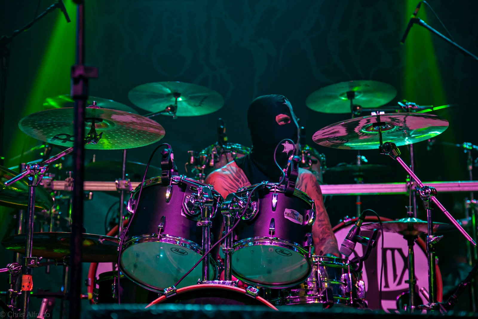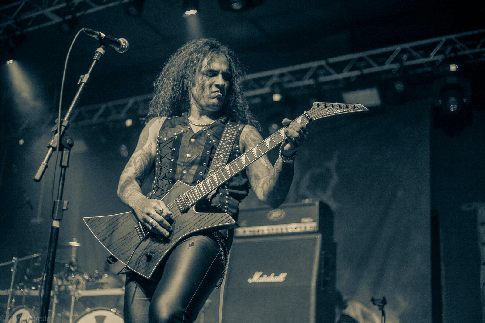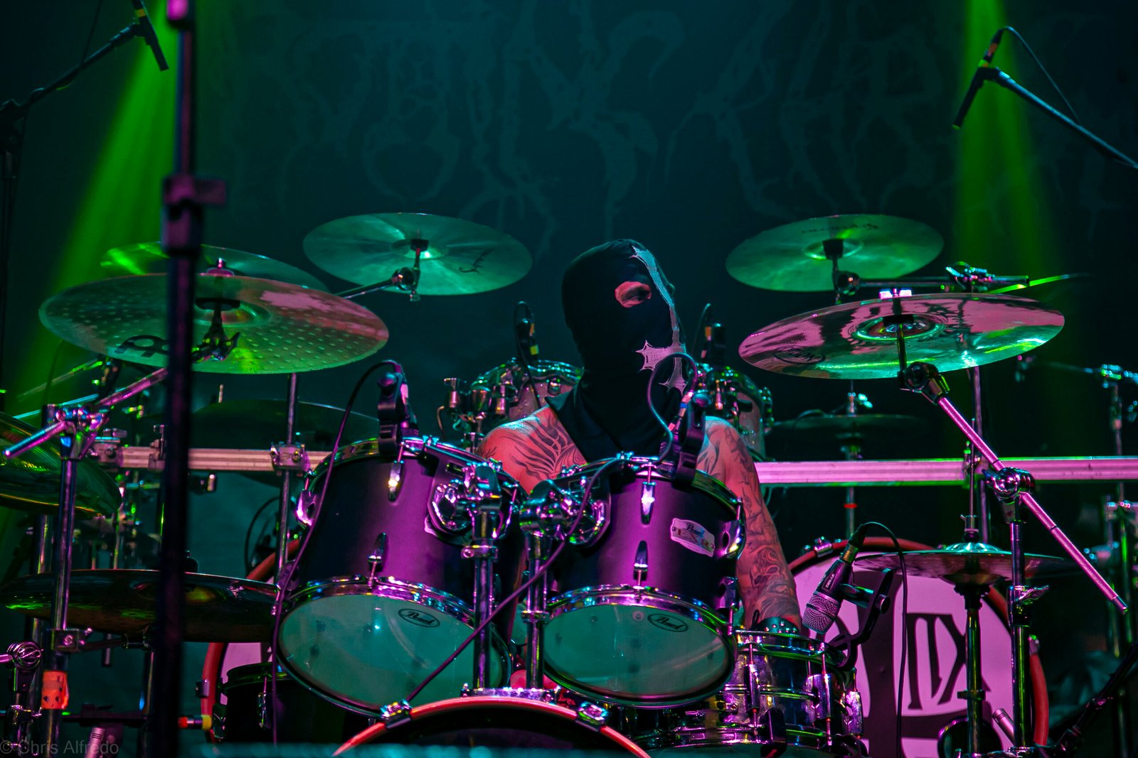 Com o horário da abertura dos portões marcado para as 19h, o público foi chegando aos poucos, adentrando o recinto com calma e sem filas ou tumultos, o que ocasionou também uma grande chance para quem é fã de ficar na grade, uma boa oportunidade para escolher o lugar que mais lhe agrada, uma vez que o destino da maioria que entrava era o grande balcão circular do bar que separa a pista e a espaçosa praça de alimentação da casa. Com a refrigeração em sua potência máxima e cerveja extremamente gelada, foi fácil esquecer o calor infernal que estava lá fora, pelo menos por uns minutos… No palco, viam-se púlpitos com livros que pareciam bíblias e bandeiras com símbolos associados a cultos pagãos, visão que anunciava que a noite seria exatamente isso, uma noite de grande blasfêmia.