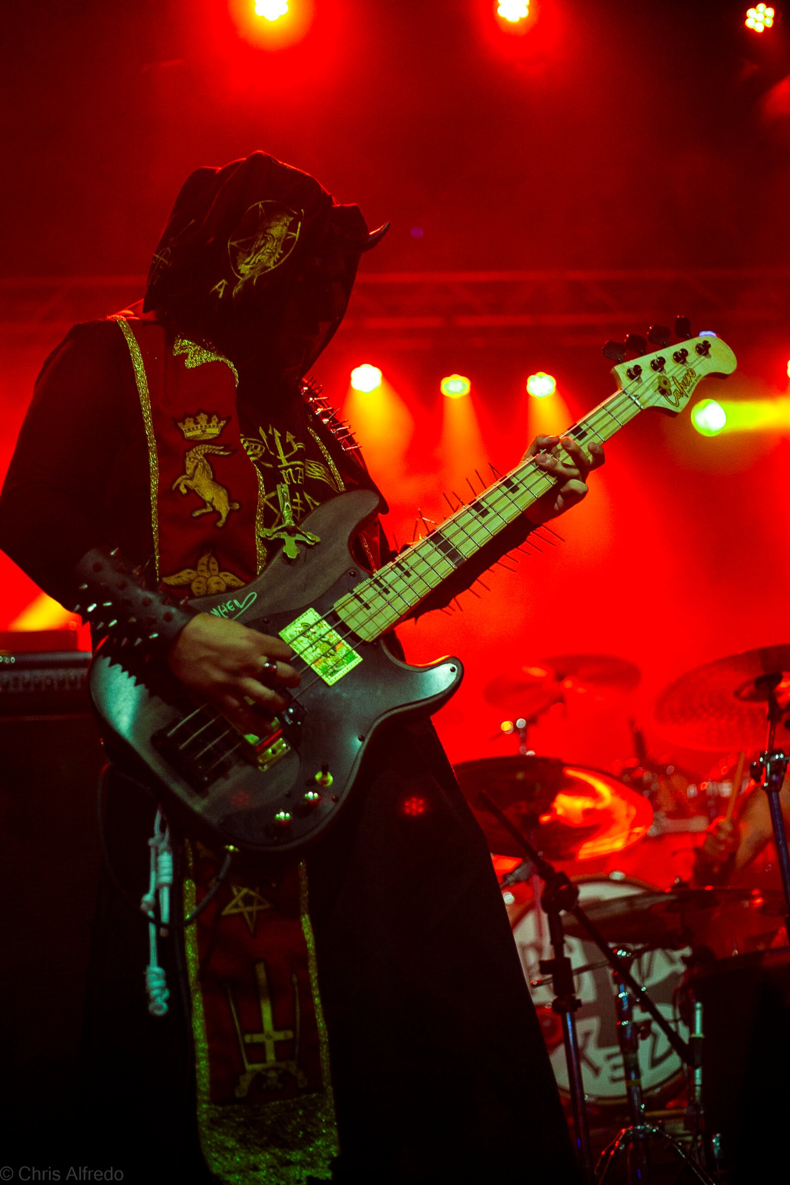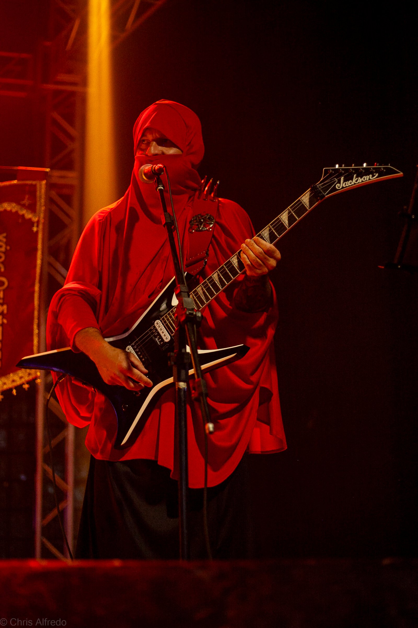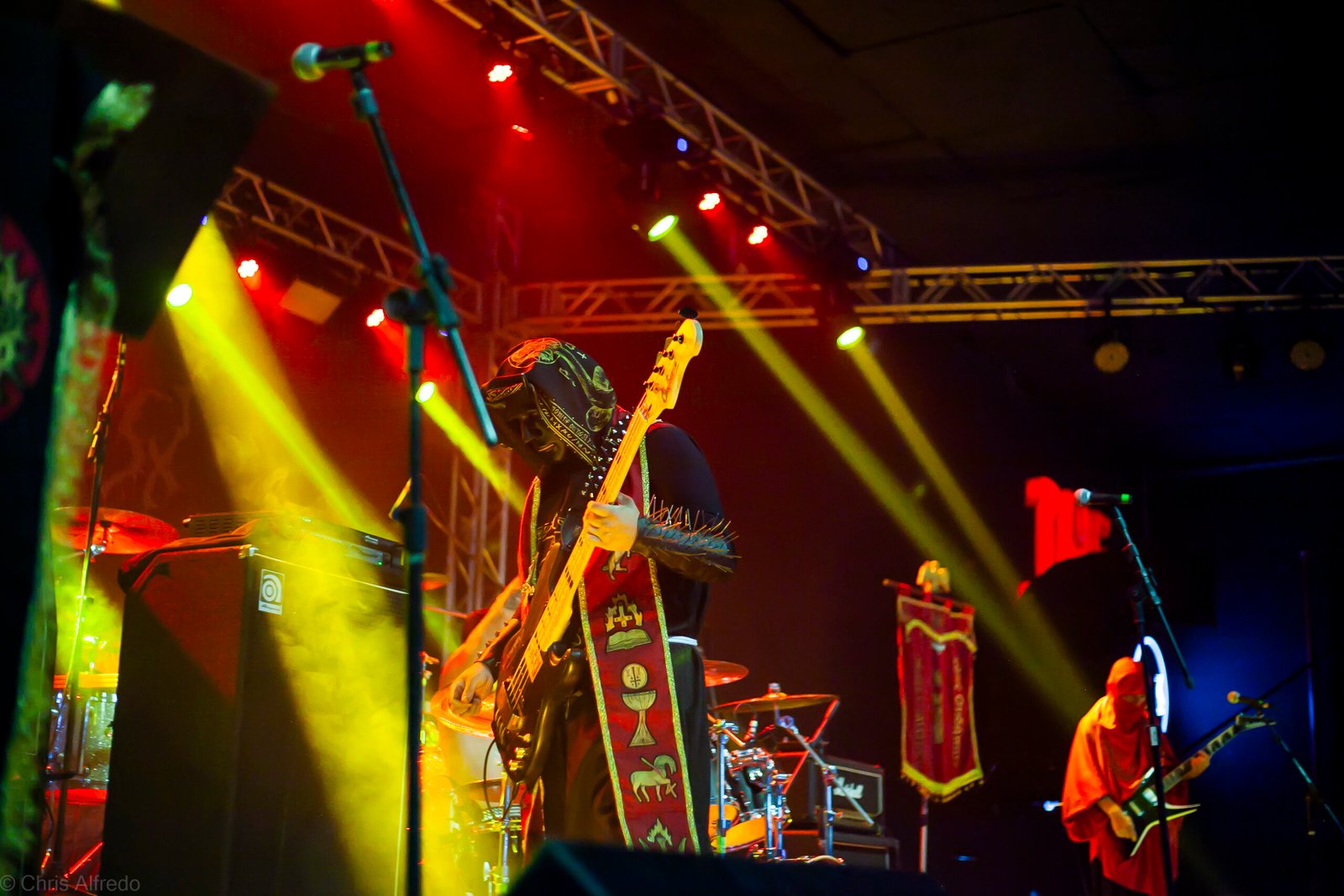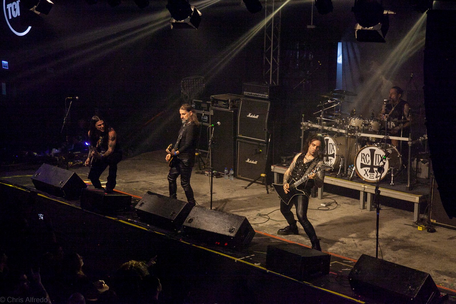 Pontualmente às 19h30, subiram ao palco três figuras peculiarmente caracterizadas, com vestes que lembram executores da Idade Média, ou ainda cultistas de missa obscura, seguindo a estética dos já citados adornos vistos no palco. Era a ótima banda Torchs of Nero, fundada no Rio Grande do Sul em 2021 e na ativa desde então com a mesma formação. Demonstraram logo nos primeiros acordes o porquê de terem sido escolhidos para abrir os trabalhos para a banda grega. Elogiada pelo próprio Sakis Tolis pelo EP intitulado MOKK de 2023, a banda que busca em sua essência honrar o Metal Extremo dos anos 80 e início dos 90, de mestres como Venom, Hellhammer e Celtic Frost, faz isso com louvor. Com um setlist curto, o trio executou algumas músicas que ainda não estão presentes na discografia da banda, destaque para a excelente Hosana Iscariot, tocada após a promessa de um álbum gravado ainda este ano.