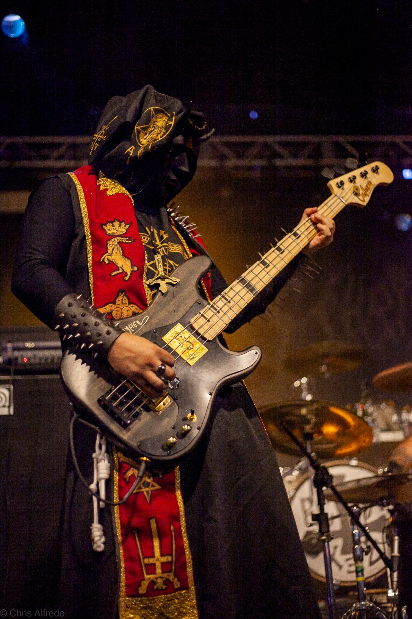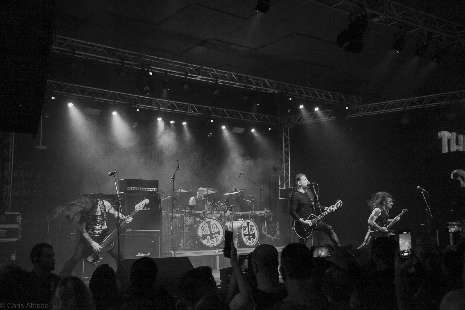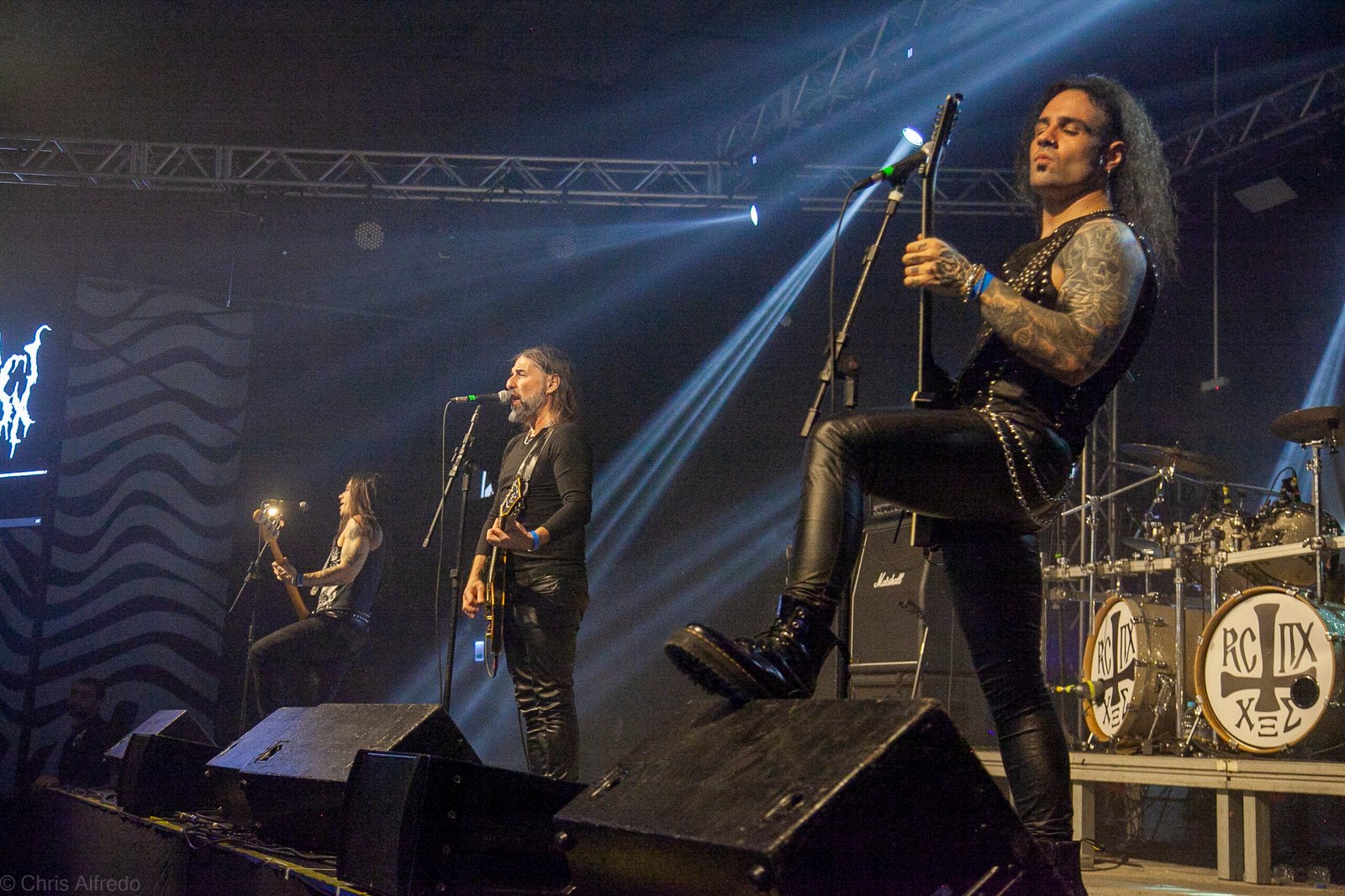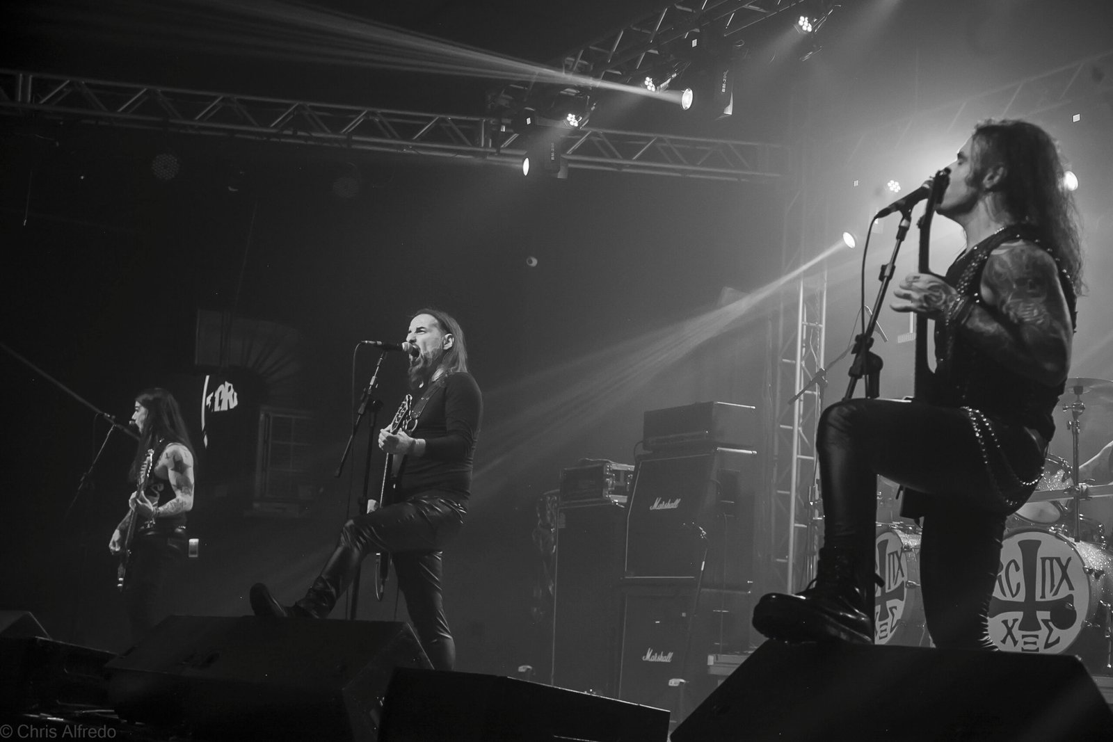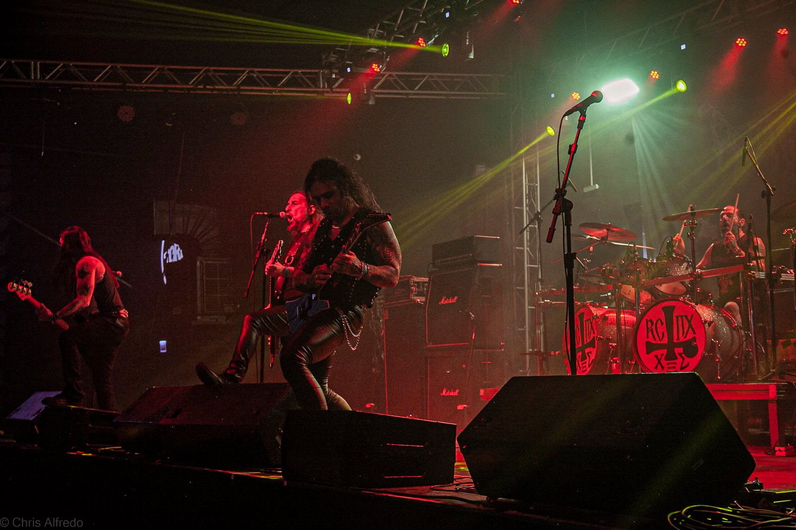 Pontualmente às 19h30, subiram ao palco três figuras peculiarmente caracterizadas, com vestes que lembram executores da Idade Média, ou ainda cultistas de missa obscura, seguindo a estética dos já citados adornos vistos no palco. Era a ótima banda Torchs of Nero, fundada no Rio Grande do Sul em 2021 e na ativa desde então com a mesma formação. Demonstraram logo nos primeiros acordes o porquê de terem sido escolhidos para abrir os trabalhos para a banda grega. Elogiada pelo próprio Sakis Tolis pelo EP intitulado MOKK de 2023, a banda que busca em sua essência honrar o Metal Extremo dos anos 80 e início dos 90, de mestres como Venom, Hellhammer e Celtic Frost, faz isso com louvor. Com um setlist curto, o trio executou algumas músicas que ainda não estão presentes na discografia da banda, destaque para a excelente Hosana Iscariot, tocada após a promessa de um álbum gravado ainda este ano.
