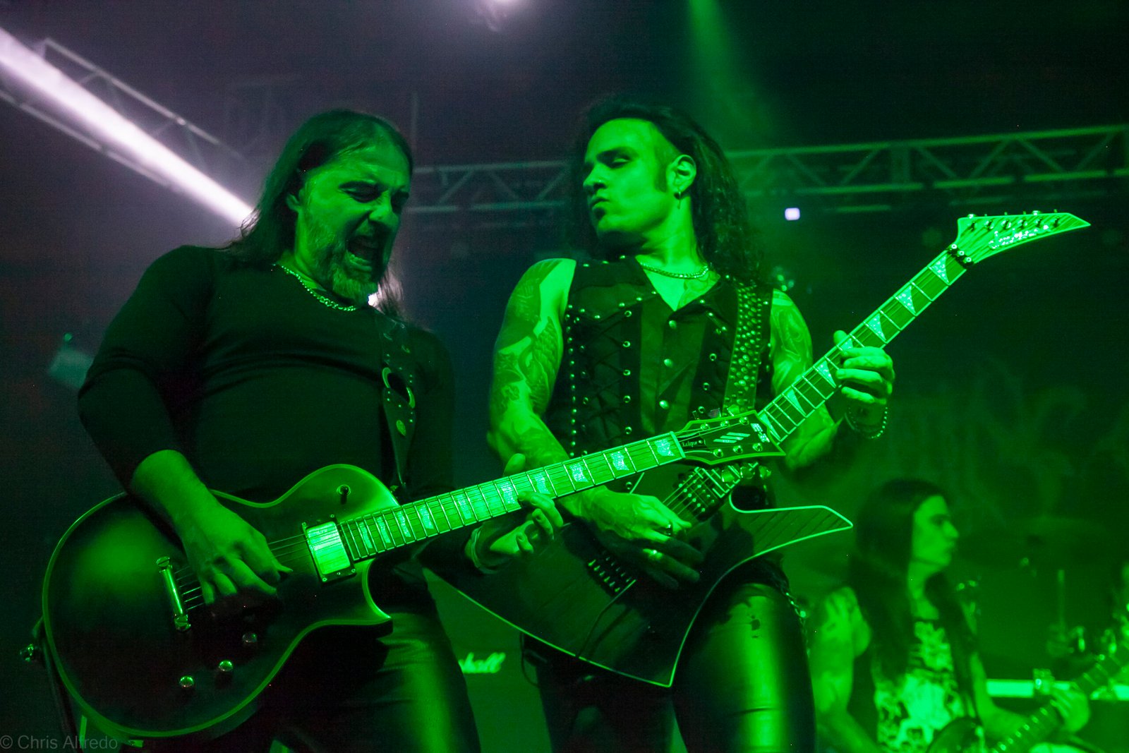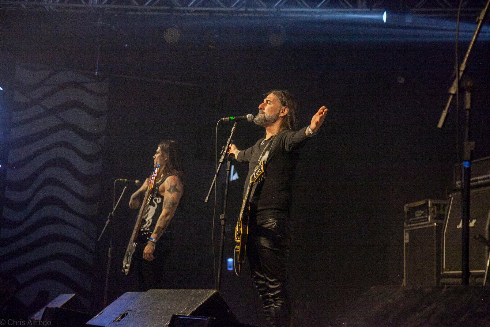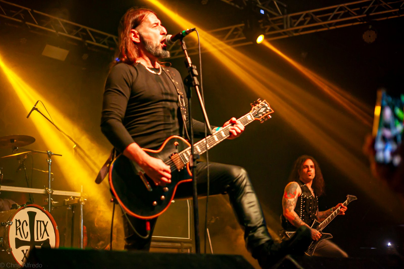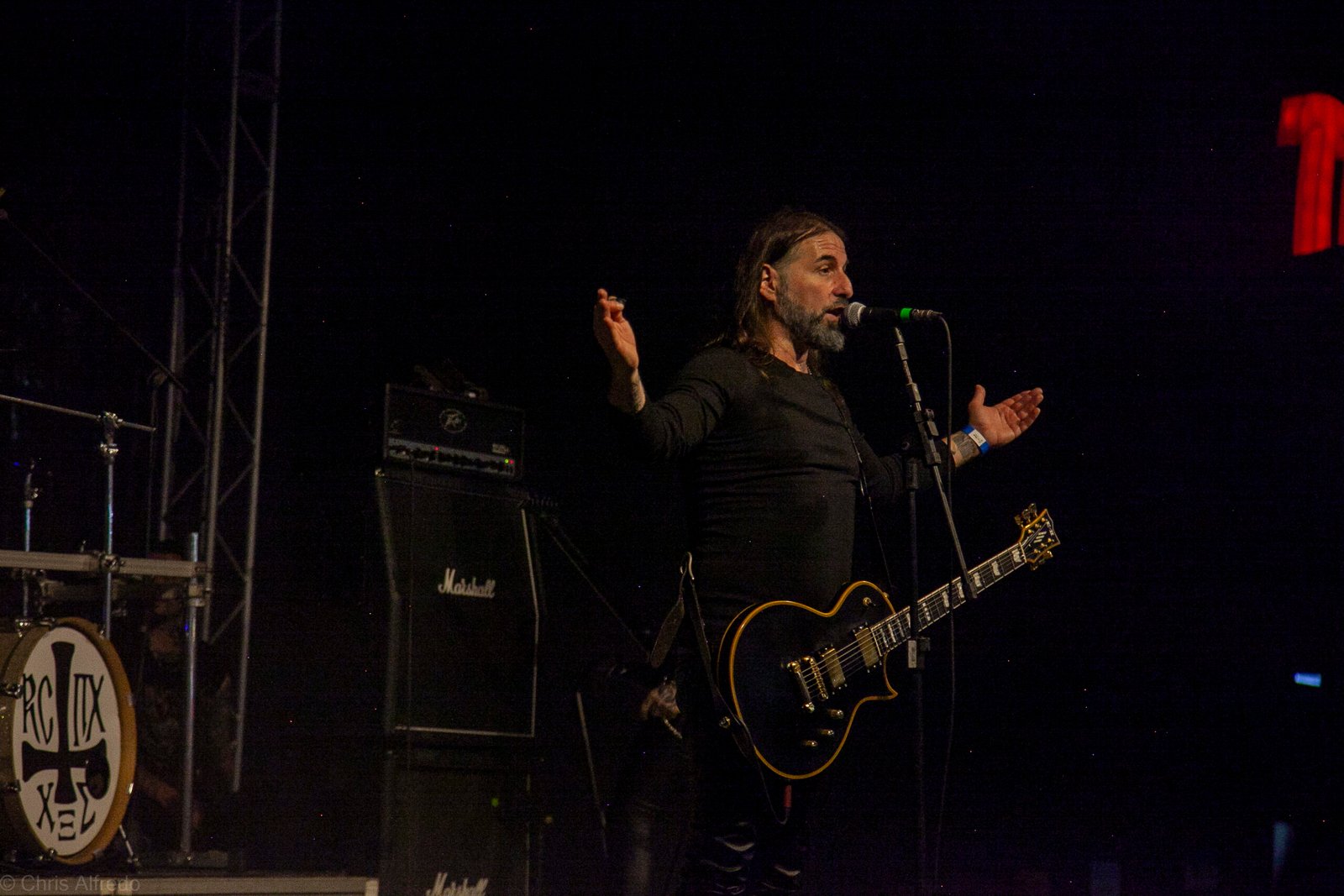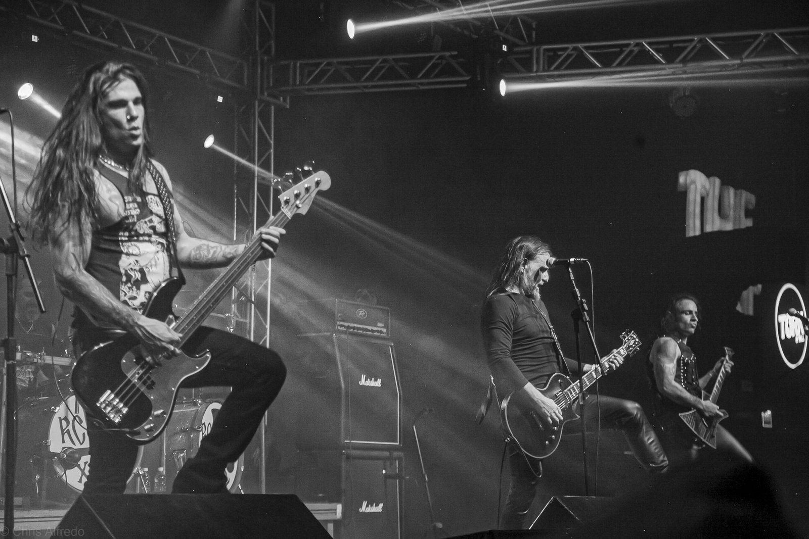 Pontualmente às 19h30, subiram ao palco três figuras peculiarmente caracterizadas, com vestes que lembram executores da Idade Média, ou ainda cultistas de missa obscura, seguindo a estética dos já citados adornos vistos no palco. Era a ótima banda Torchs of Nero, fundada no Rio Grande do Sul em 2021 e na ativa desde então com a mesma formação. Demonstraram logo nos primeiros acordes o porquê de terem sido escolhidos para abrir os trabalhos para a banda grega. Elogiada pelo próprio Sakis Tolis pelo EP intitulado MOKK de 2023, a banda que busca em sua essência honrar o Metal Extremo dos anos 80 e início dos 90, de mestres como Venom, Hellhammer e Celtic Frost, faz isso com louvor. Com um setlist curto, o trio executou algumas músicas que ainda não estão presentes na discografia da banda, destaque para a excelente Hosana Iscariot, tocada após a promessa de um álbum gravado ainda este ano.