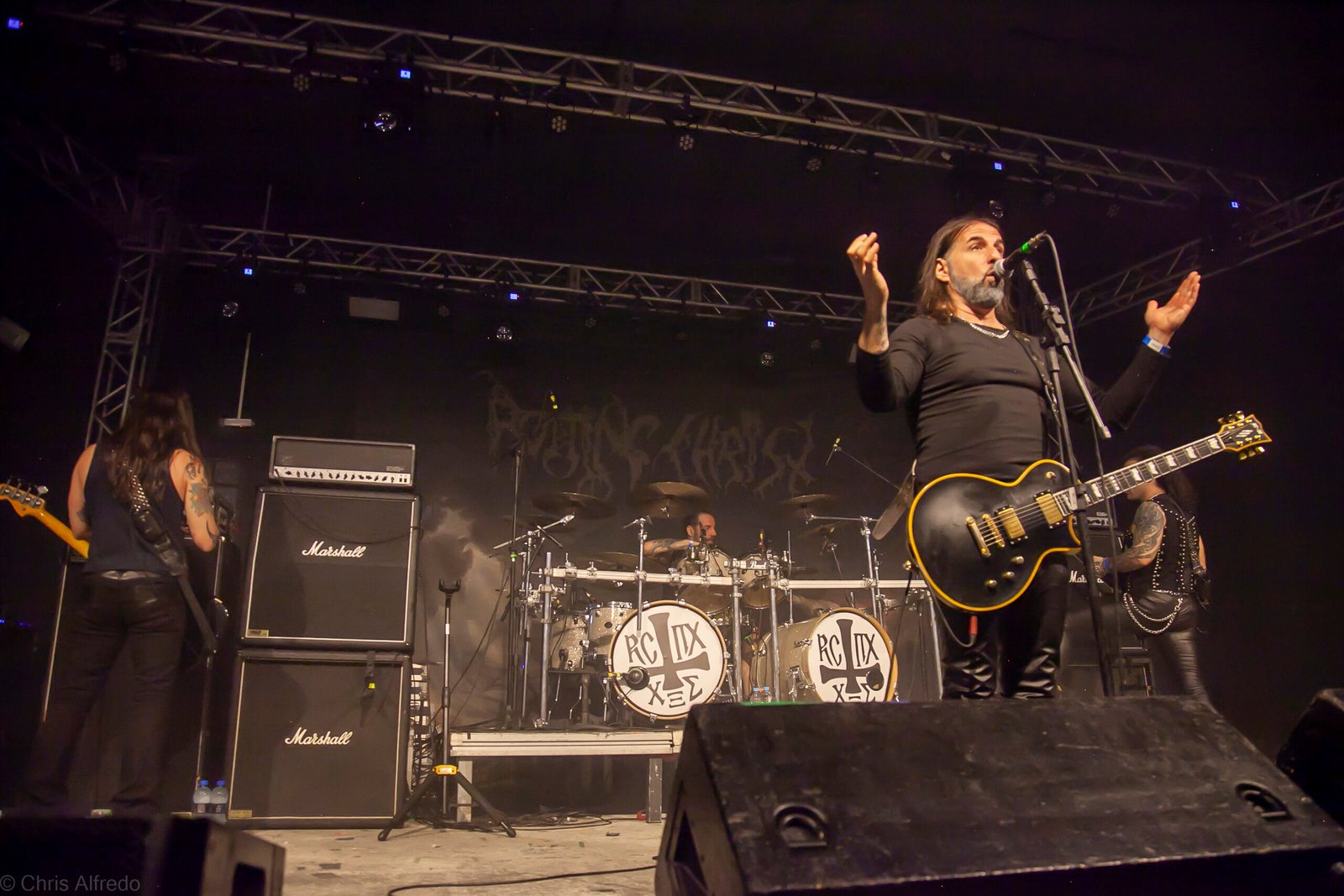 Após um rápido intervalo, e exatamente no horário marcado, subiu ao palco o Rotting Christ, liderado por Sakis Tolis (voz e guitarra) e seu irmão Themis Tolis (bateria). Atualmente contam com o apoio dos carismáticos Kostis Foukarakis (guitarra) e Kostas Heliotis (baixo). A música escolhida para abrir a apresentação foi Aealo, faixa que também abre o álbum de mesmo nome lançado em 2010. Apesar de a turnê se chamar Pro Xristou Over Brazil, em alusão ao último álbum lançado pelos gregos em 2024, o setlist foi extremamente variado, tendo apenas 2 músicas deste último trabalho, Pretty World, Pretty Dies e a empolgante Like Father Like Son, que foi cantada a plenos pulmões pelos fãs presentes em grande número, porém não o suficiente para encher a casa, de forma que estava razoavelmente fácil transitar entre as pessoas e até possível descolar um cantinho apertado na grade para os mais descarados.