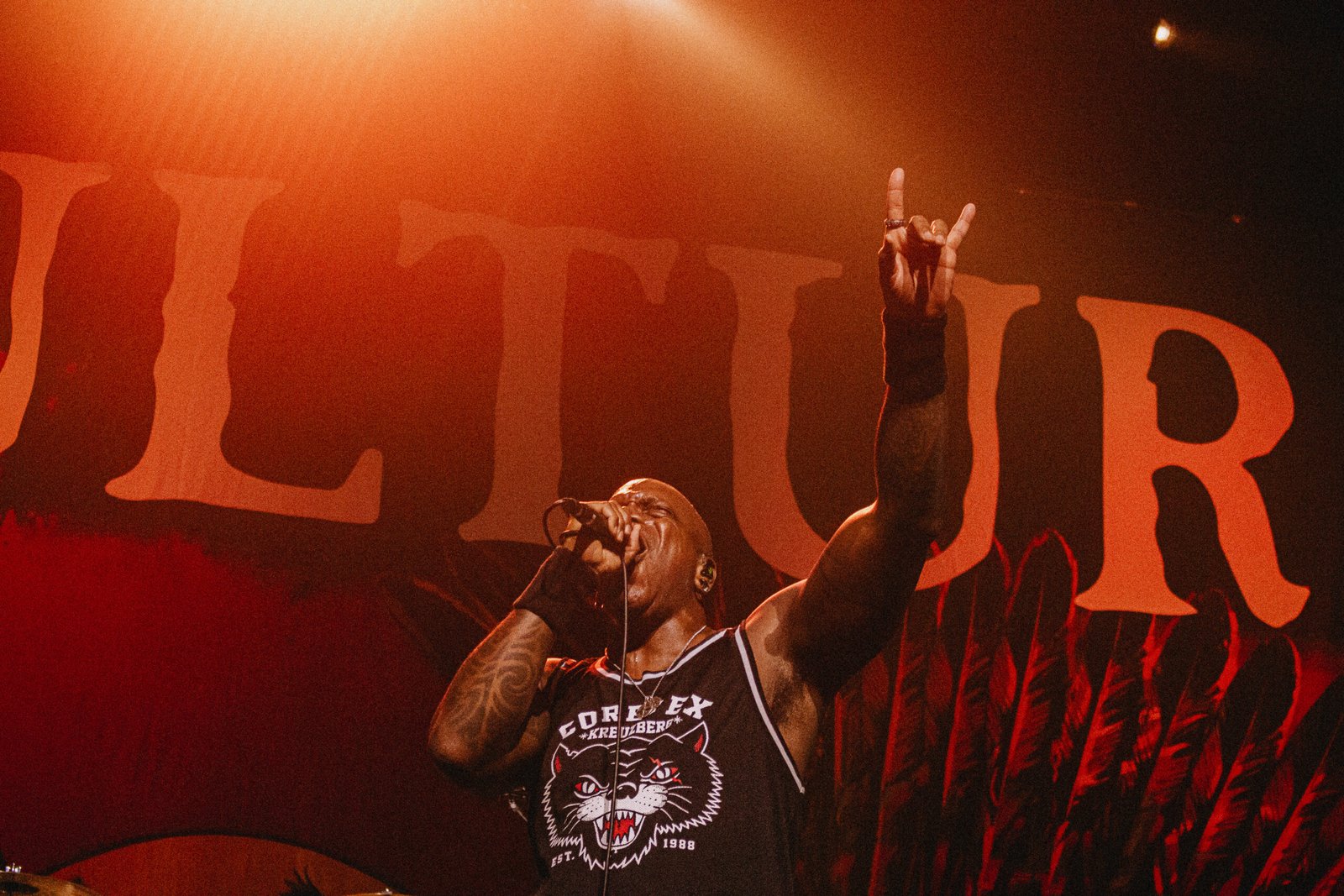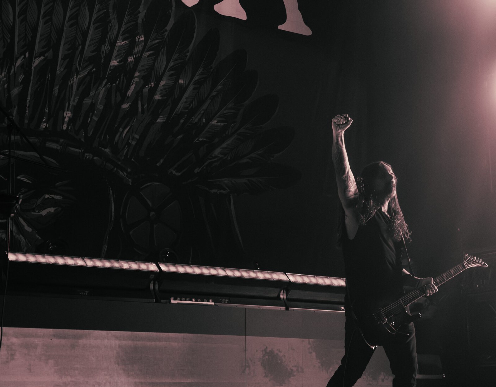 Aos poucos, víamos o quarteto composto por Andreas Kisser, Derrick Green, Greyson Nekrutman e Paulo Xisto emergirem, onde a inconfundível voz, carisma e energia de Derrick já se faziam presentes, anunciando o início da pedrada que seria aquele show, com Refuse/Resist inaugurando o setlist da noite. Em meio ao ensurdecedor e animado coro da plateia, Derrick e Andreas ainda brincaram ao longo da noite sobre contar com o público para se mostrar ainda mais animado que o da noite anterior, uma vez que era “sabadão”, questão levada muito a sério pelo público, que se mesclava entre pontos de rodas abertas, com o pau comendo solto e aqueles que faziam questão de vibrar e aplaudir sem desgrudar os olhos dos músicos.