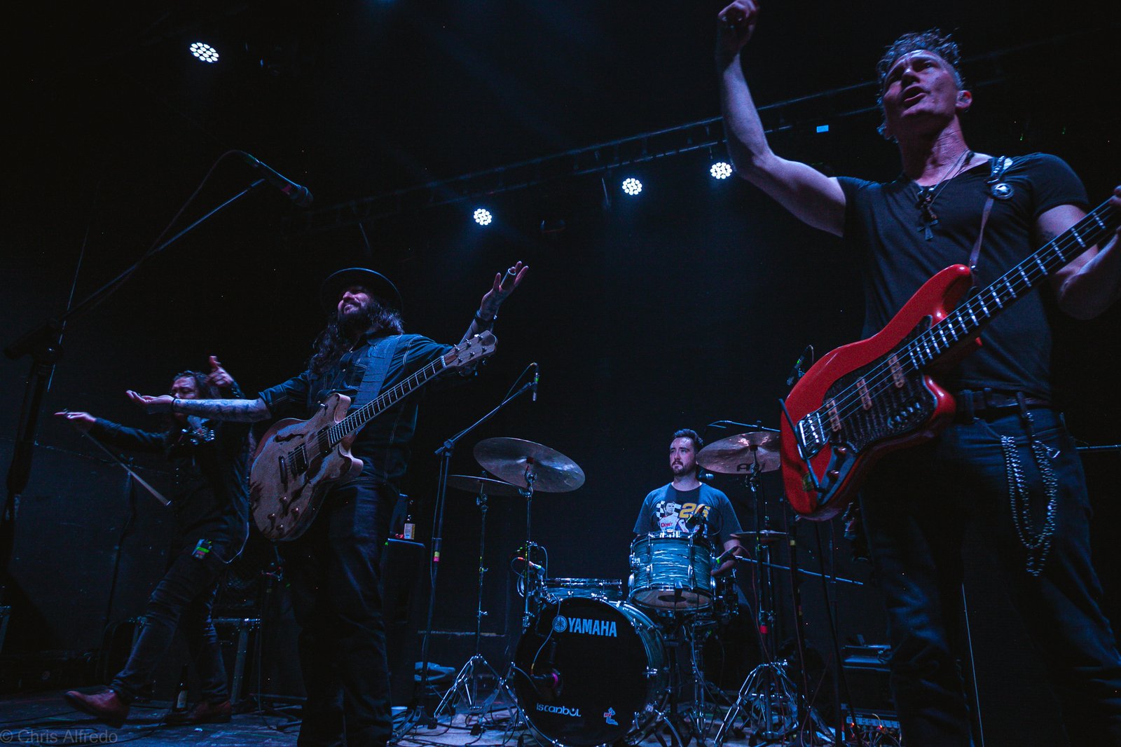 A banda se mostrou perfeitamente conectada com o baterista Rob Kennedy (@robkennedydrums) e o Violinista Sage (@ragewithsage) participando dos backing vocals, junto com o coro formado pela plateia que pareceu saber a letra de todo o repertorio, dando um clima gospel as músicas, o que casou muito bem com a voz do cantor que a cada final de frase arrancava gritos e palmas da plateia. O baixista Zack Sawyer pareceu o mais tímido do quarteto, sempre bem concentrado nas suas linhas que tiveram uma execução impecável. Vale comentar a performance do Violinista Sage, que por muitas vezes chegou a roubar a atenção com movimentos agressivos, que contrastavam com o som melancólico que saia do instrumento.