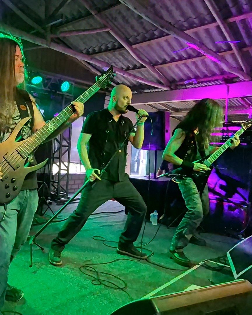 Com uma sonoridade que combina o peso do Death Metal Melódico a solos inspirados de guitarra e sintetizador, a banda mostrou que técnica e carisma podem caminhar lado a lado. A estreia no sul do estado veio acompanhada de uma preparação digna de quem leva o Metal a sério, e com bom humor. De casacos extras para enfrentar o frio característico do “absoluto nada” catarinense a doses de chopp de abóbora no esquenta, o quinteto chegou confiante, bem-humorado e pronto para entregar uma apresentação brutal. “A gente sabia que ia sair cansado e dolorido, mas viemos preparados, Dorflex incluso”, brincou um dos integrantes, reforçando o espírito leve e a camaradagem que marcam o grupo.