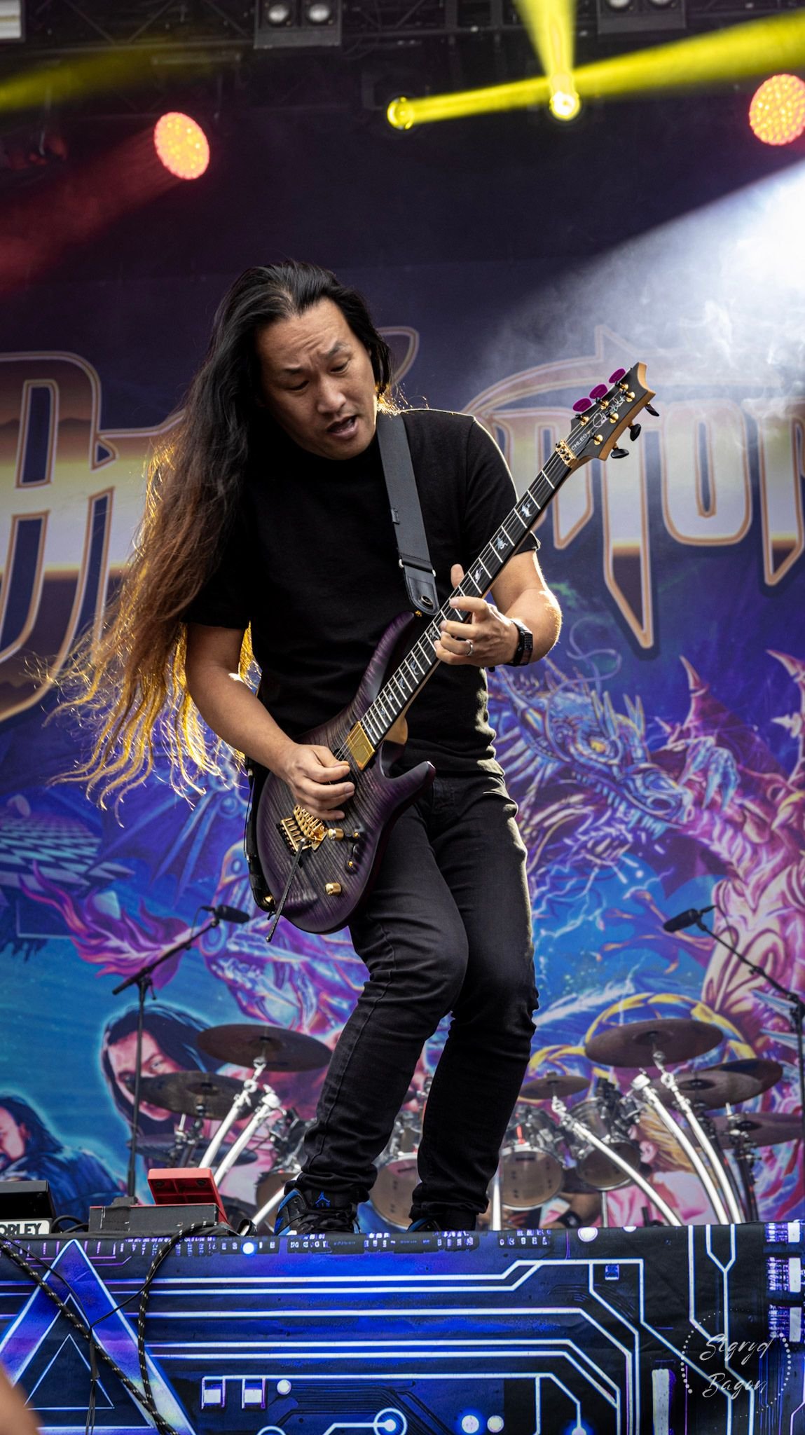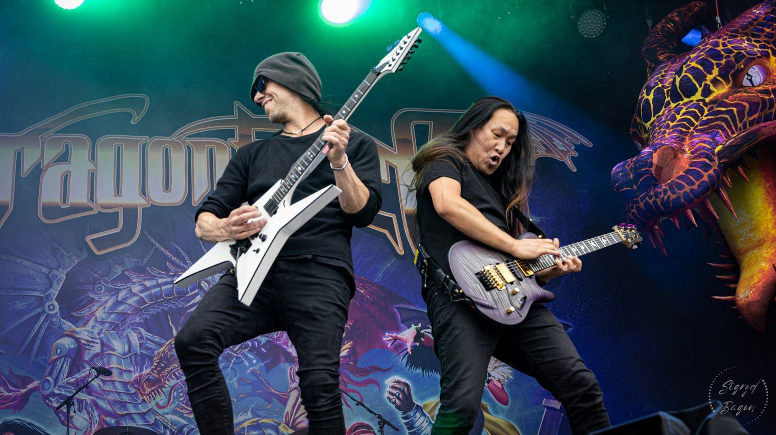 Em seguida fomos conferir a apresentação da banda inglesa de Power Metal Dragonforce no Nordic Energy Stage. Cry Thunder, Fury Of The Storm e Through The Fire And Flames fizeram parte do setlist. Um dos momentos mais esperados foi a faixa Power Of The Triforce, onde o vocalista Marc Hudson joga um frango enorme de pelúcia no meio do público e a diversão é garantida.