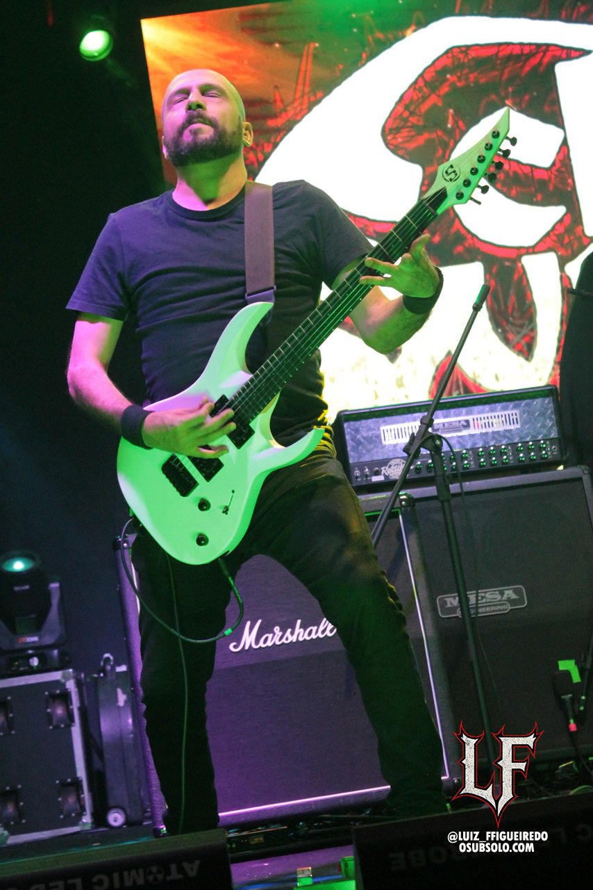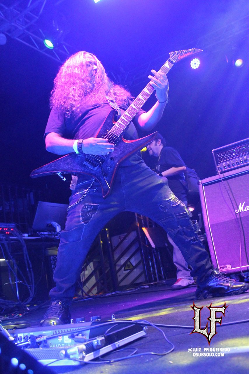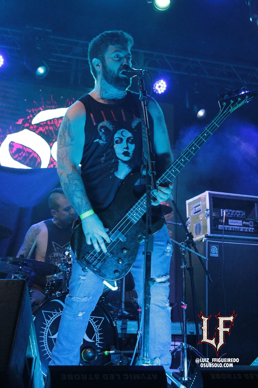 Apesar de ainda haver poucas pessoas no interior do Mister Rock, o Chaos Synopsis subiu ao palco quando faltavam 10 minutos para as 20h e entregou uma apresentação de alto nível. O vocalista Jairo expressou por várias vezes a alegria de estar de volta a Belo Horizonte. Ele citou quando tocaram no tradicional festival Bestial Devastation há mais de 15 anos e elogiou a culinária mineira. Em especial o fígado com jiló, prato que representa tão bem o Mercado Central de BH; estamos falando de uma banda com 20 anos de estrada e que faz um som rápido e agressivo. A classificação Thrash/Death é perfeita, e a bateria tocada por Friggi Mad Beats mostra exatamente isso. Ele aplica uma velocidade frenética nas batidas e quebras de ritmo bem marcante. Um show f#da! Se eles forem na sua cidade, não deixe a oportunidade passar.
