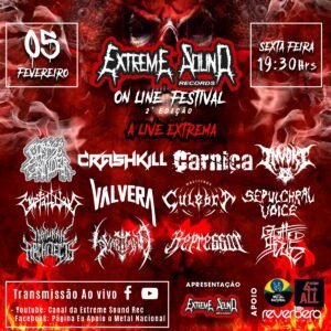 O selo e gravadora Extreme Sound Records, em parceria com a página Eu Apoio o Metal Nacional, Reverbera Music Media e Estúdio 4ALL, apresentam na sexta-feira 05 de Fevereiro, às 19h30, a segunda edição do “Extreme Sound Records – Online Festival“.