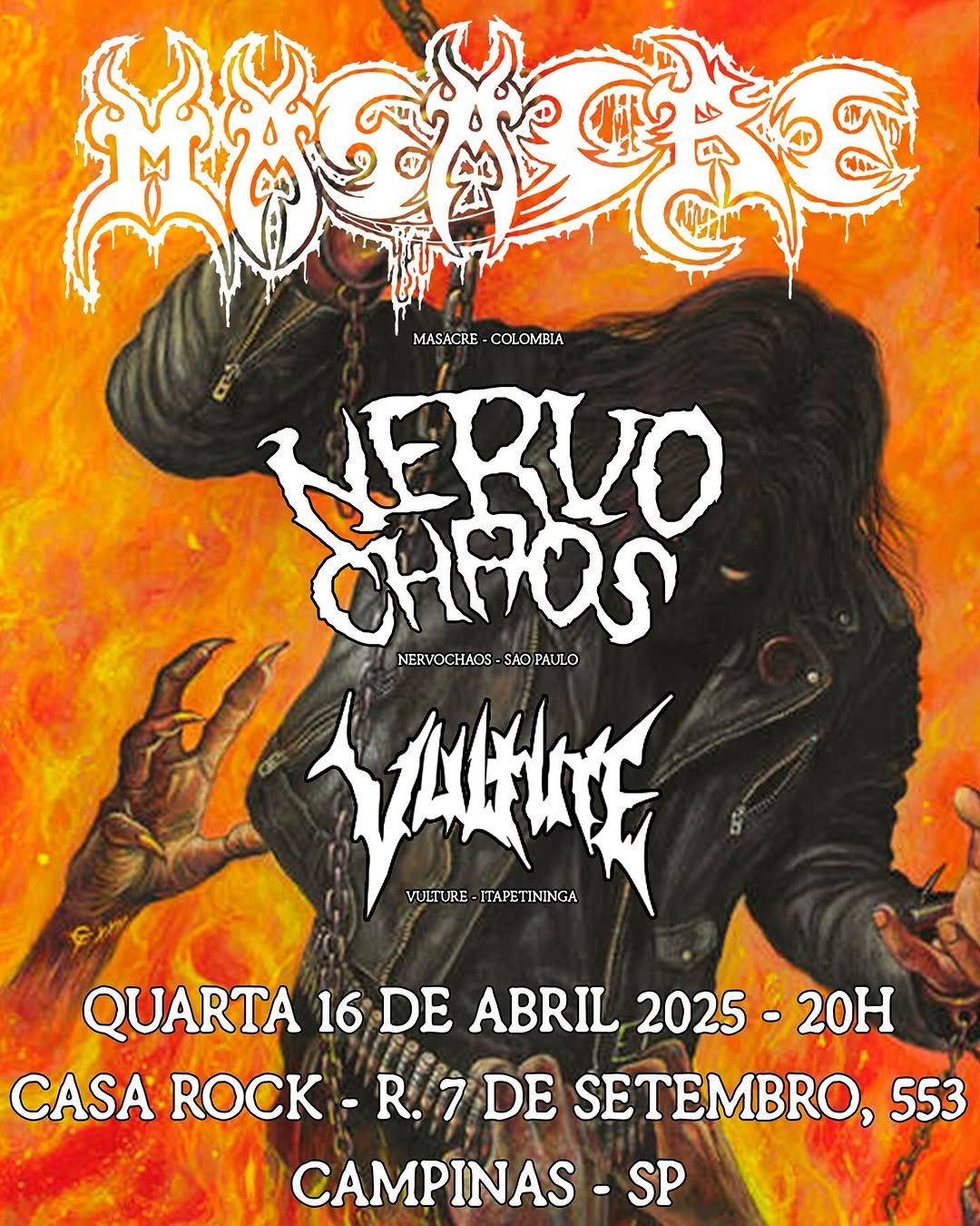 Ingressos: https://www.sympla.com.br/evento/masacre-nervochaos-vulture/2855575