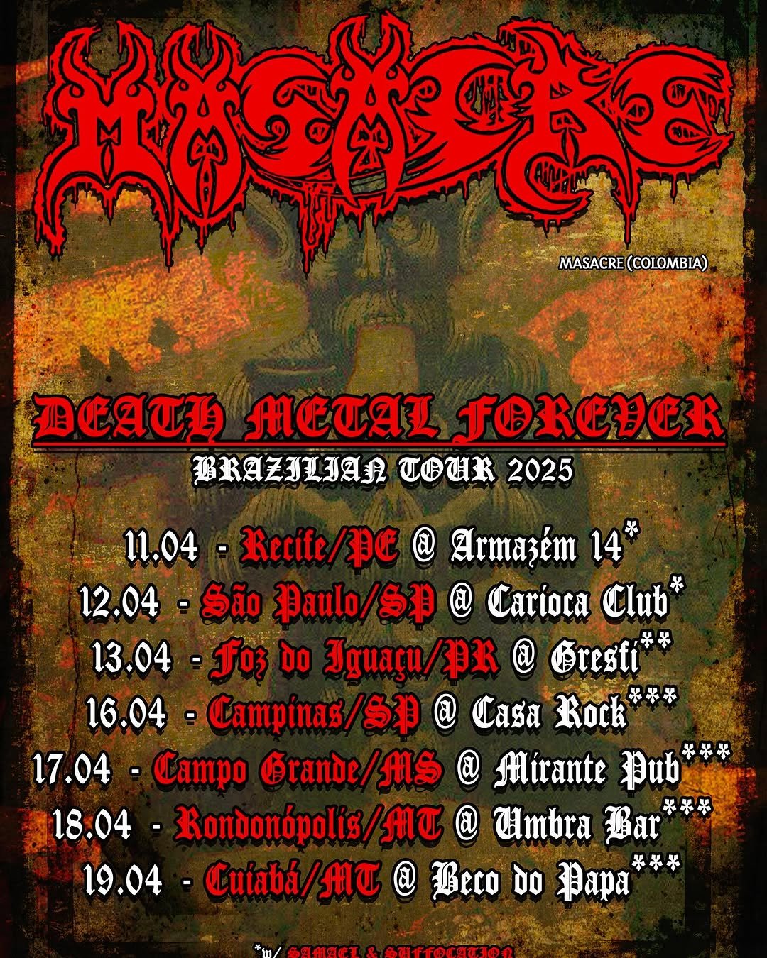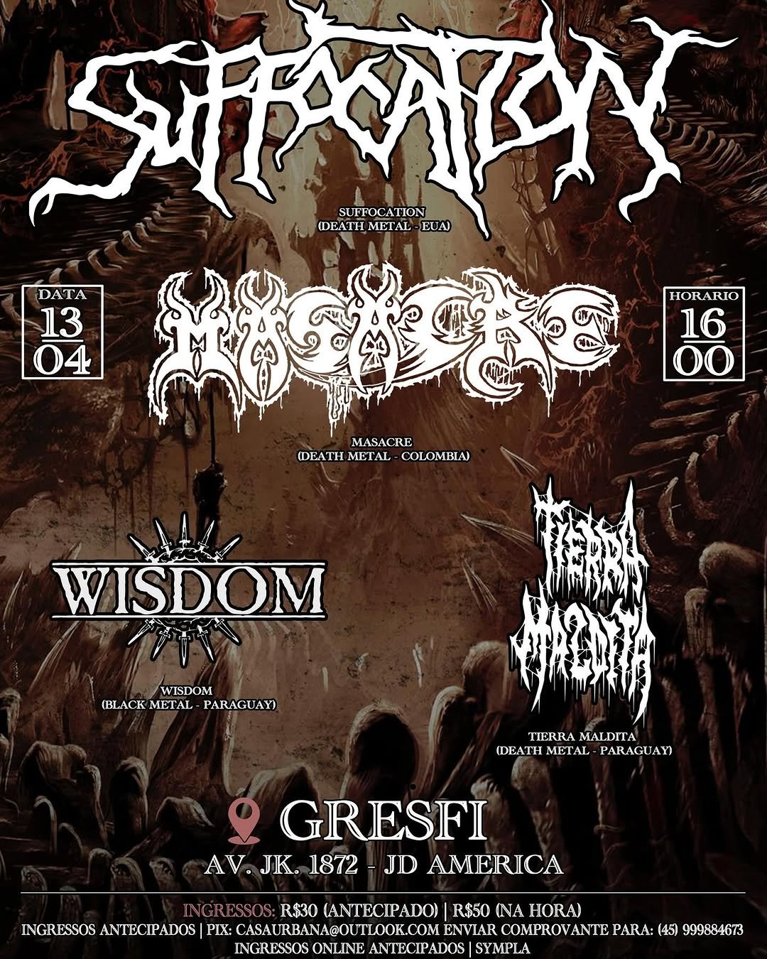 Bandas: Suffocation, Masacre, Wisdom (Paraguai) e Tierra Maldita (Paraguai)