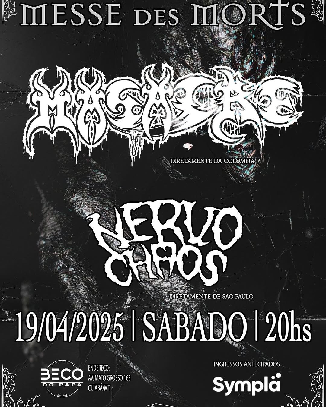 Ingressos: https://www.sympla.com.br/evento/masacre-nervochaos/2871824