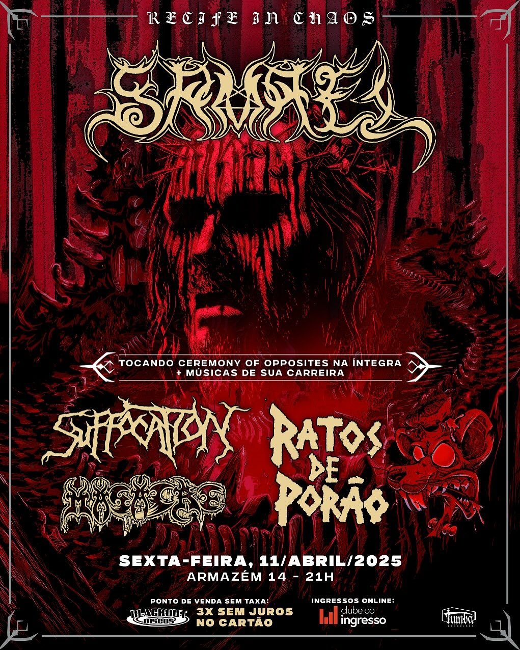 Ingressos: https://www.sympla.com.br/evento/suffocation-masacre-wisdom-tierra-maldita/2833643